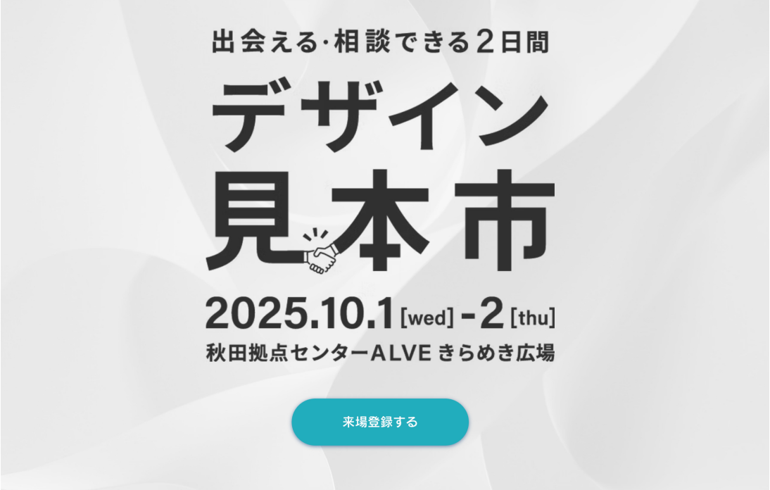 10月1日と2日に秋田拠点センターALIVE きらめき広場にて開催される「デザイン見本市」のセミナー講師として弊社代表の金谷が登壇します!