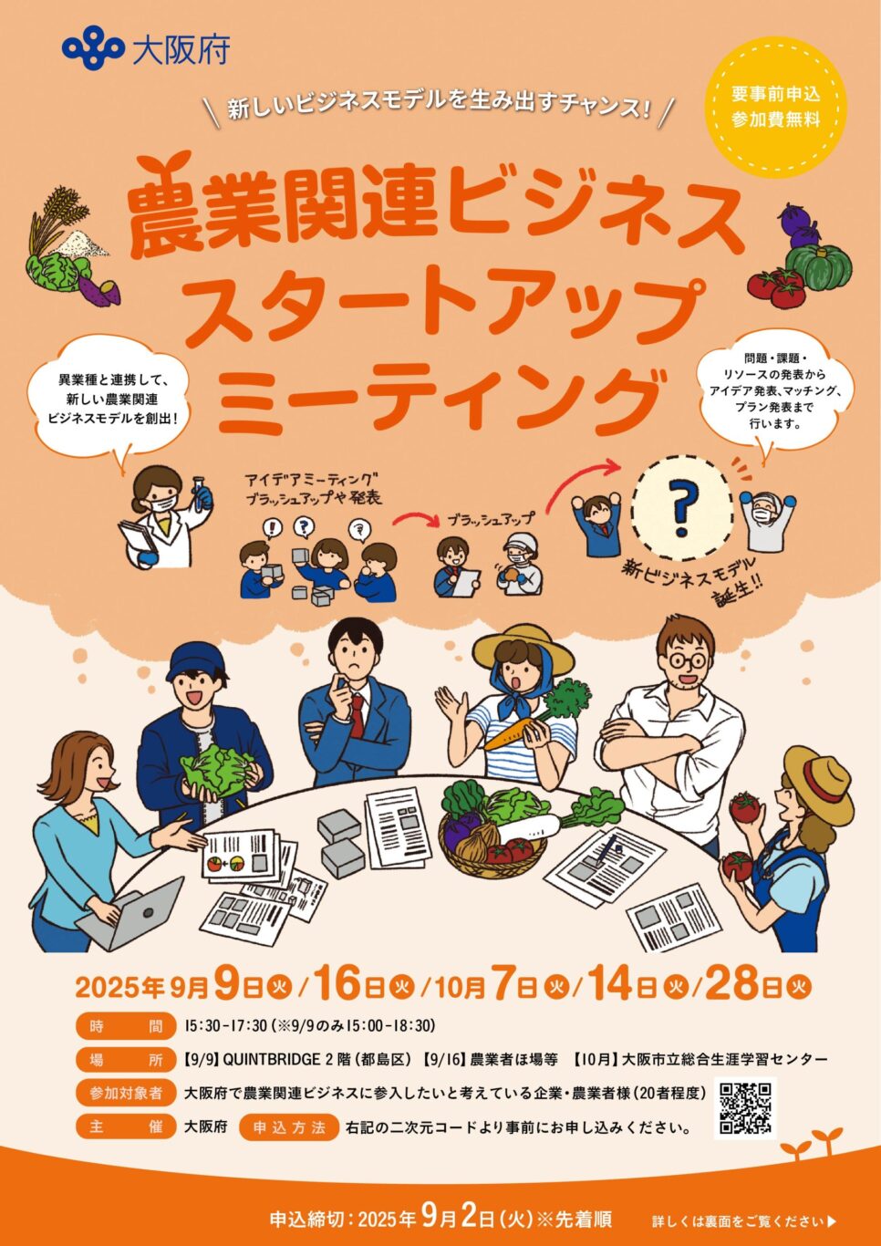 大阪府で農業関連ビジネスに参入したいと考えている企業・農業者様(20程度)