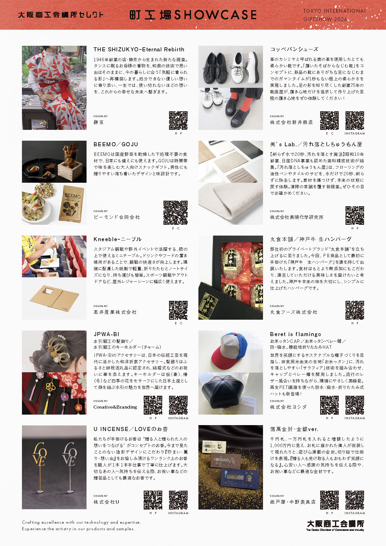 自社商品開発に挑戦した10社が、これまで培ってきた技術と職人技が詰まった商品やサンプルを展示します。