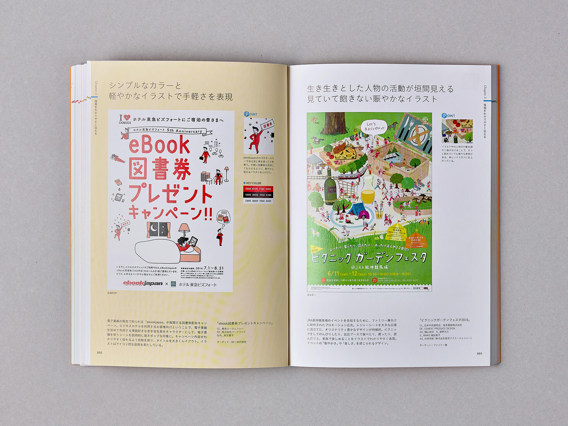 様々なアイデアでイラストレーションを活かしたポスターやカタログ、DM、パッケージなどの事例を多数収録している書籍です。