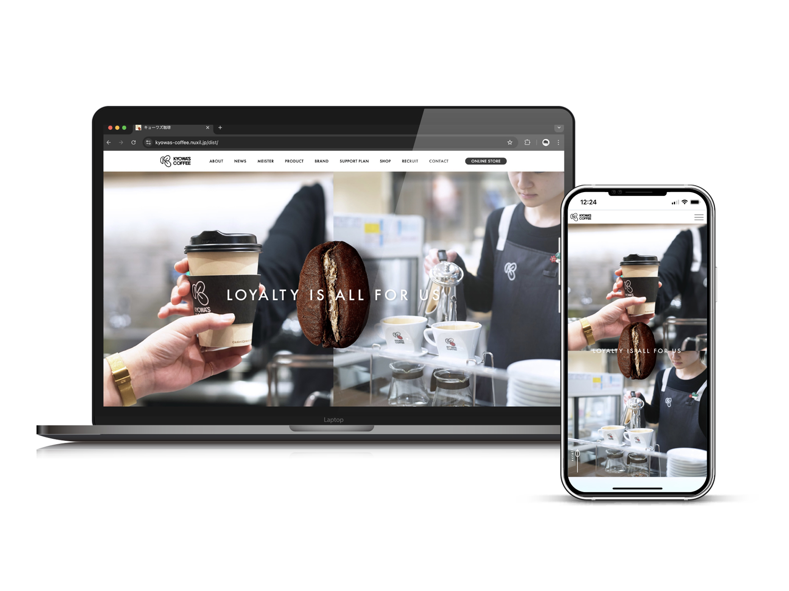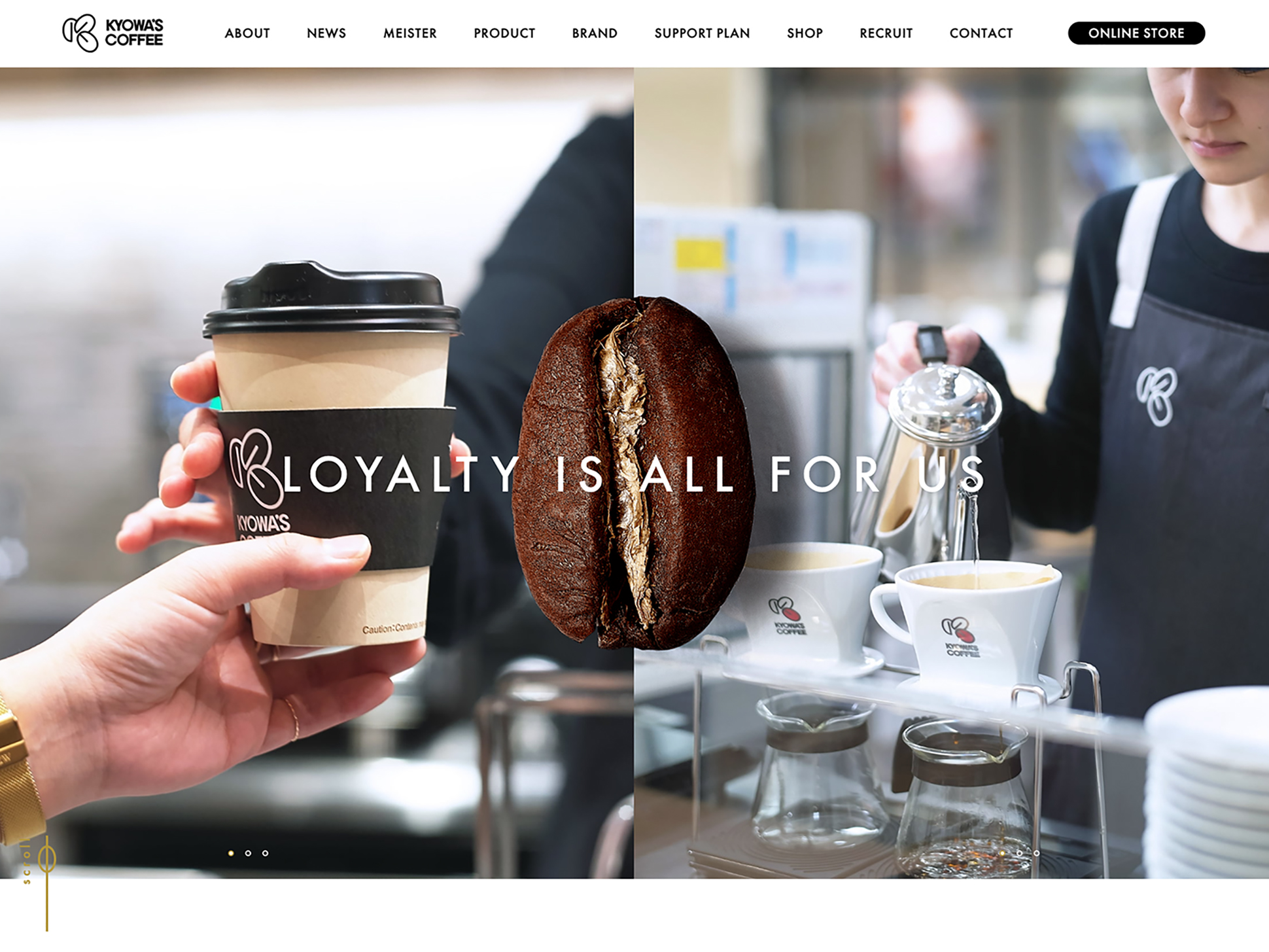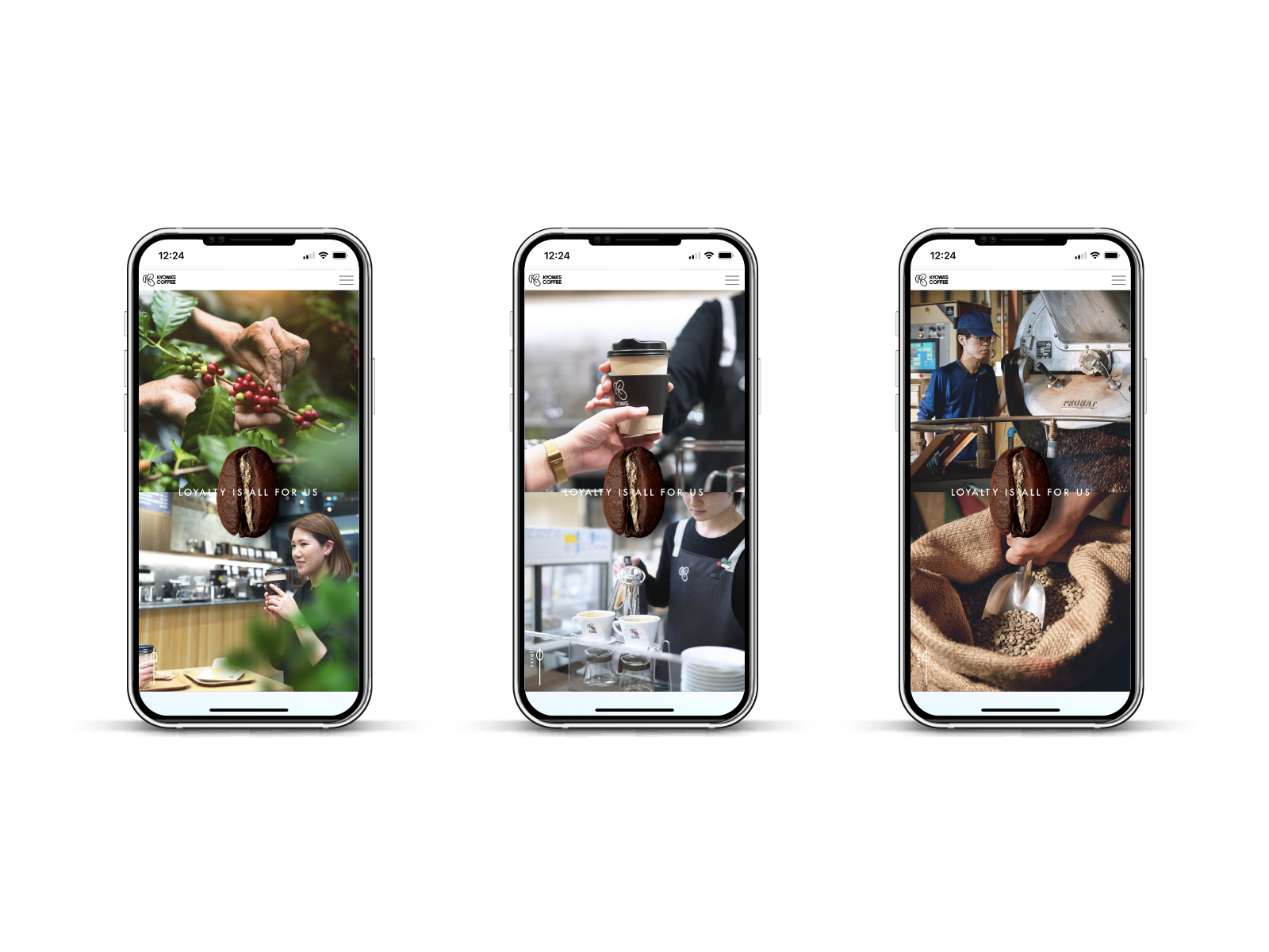 これを踏まえ、キョーワズ珈琲の持つ「人の温度」「信頼」「誠実さ」を差別化の軸とし、“企業の哲学と人柄が伝わるサイト”という方向性を定義。ビジュアルやコピーだけでなく、構成全体を通して「誠実さ=LOYALTY」を体現するデザインへと導きました。