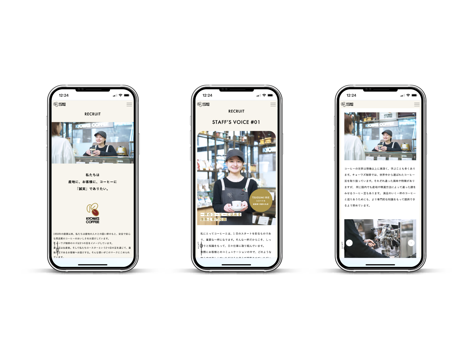 企業としての信頼感と人の温かみを両立させ、長年にわたり喫茶店やホテル、レストランなどプロの現場に珈琲を届けてきたキョーワズ珈琲さまの「誠実な姿勢」と「丁寧なものづくり」を伝えることを目的としました。また、採用希望者・取引先・消費者など、多様なステークホルダーに向けて、“人と人をつなぐ企業文化”を感じられる構成を意識しました。