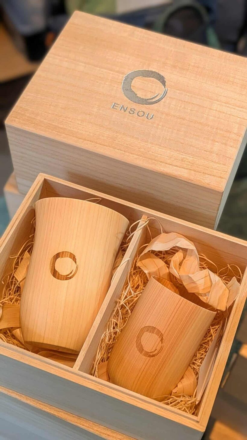それらの木製カップに今回は、「円相」をレーザー刻印しオリジナル商品を製作いたしました。