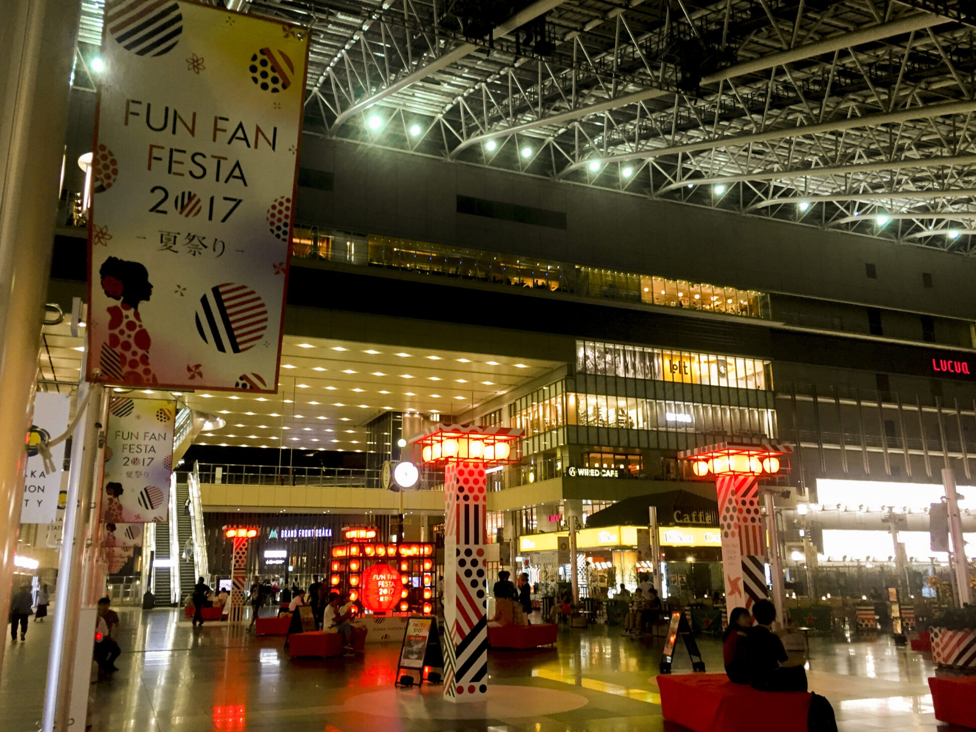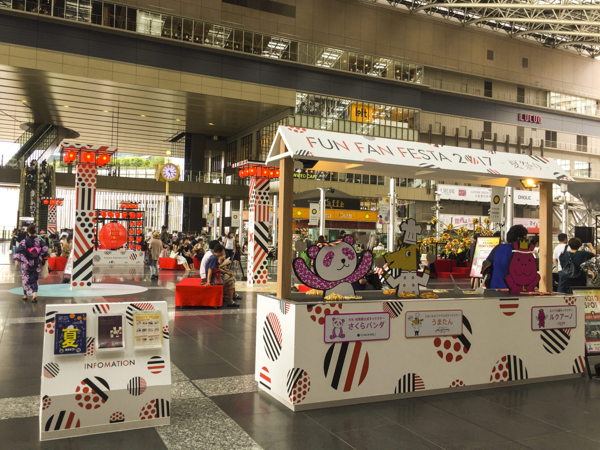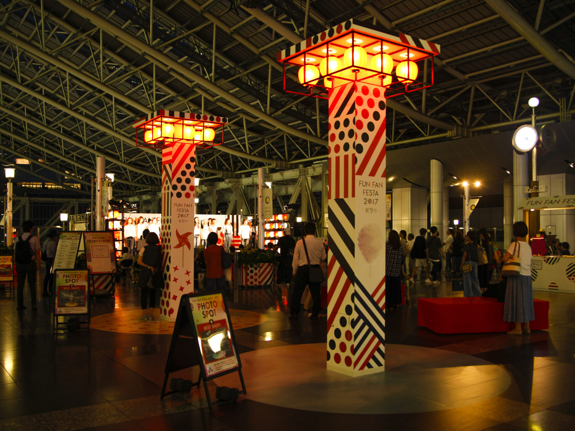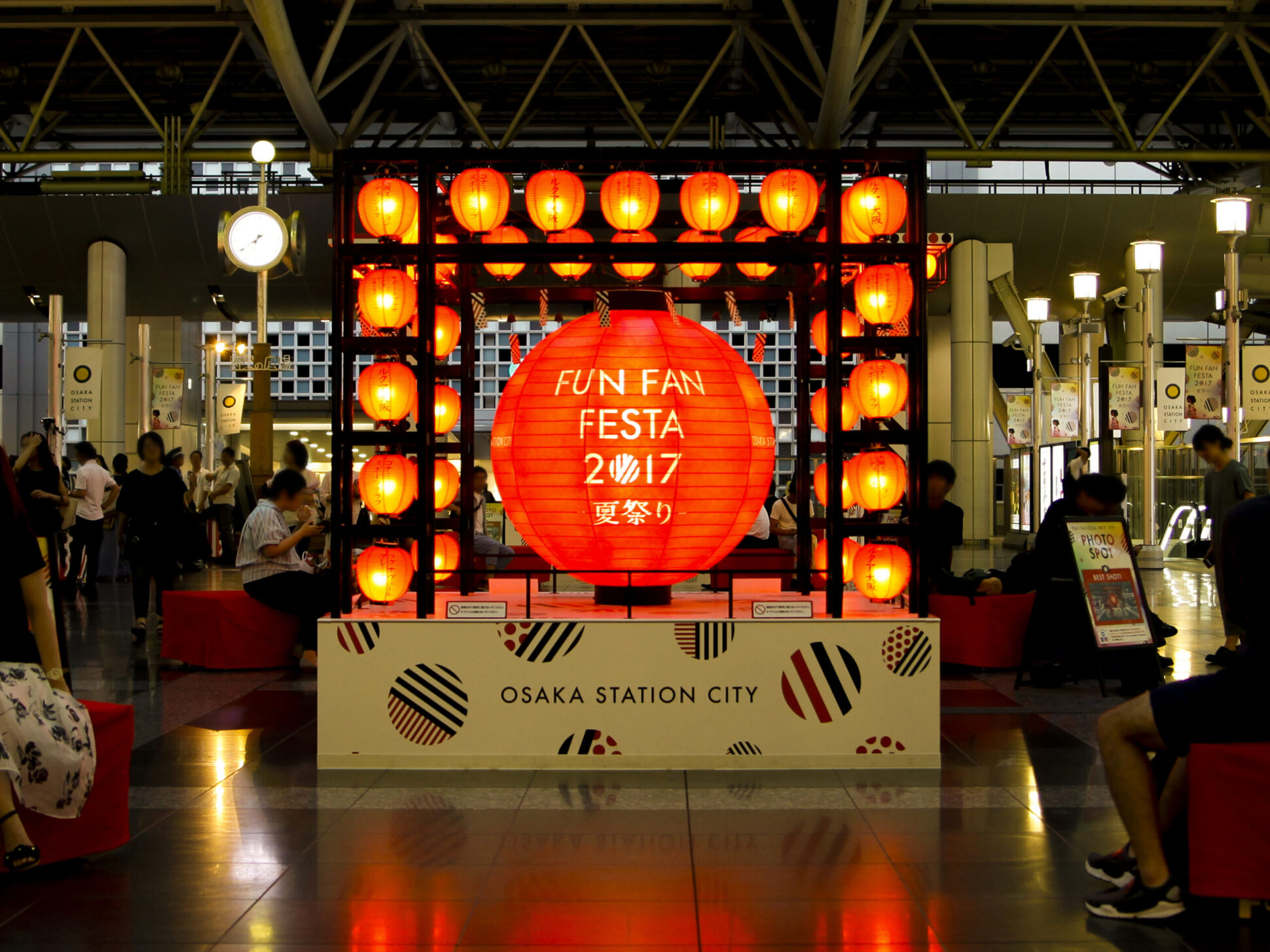 大阪ステーションシティの「5F 時空の広場」で開催された「FUN FAN FESTA 2017 -夏祭り-」の企画からメインビジュアル、空間演出までを担当。「ジャパンモダン」なお祭りをテーマに、大きな提灯や、赤と黒の和柄を会場全体の装飾に施し演出。夜には提灯が灯り、どこか懐かしくも幻想的な日本の夏を体感できる。また、人力車やお祭りの定番であるりんご飴、水ヨーヨーなどを用いて、フォトスポットをあらゆるところに設置し、会場全体を見て廻れるようにすると共に、SNSの口コミによる宣伝や集客を図った。