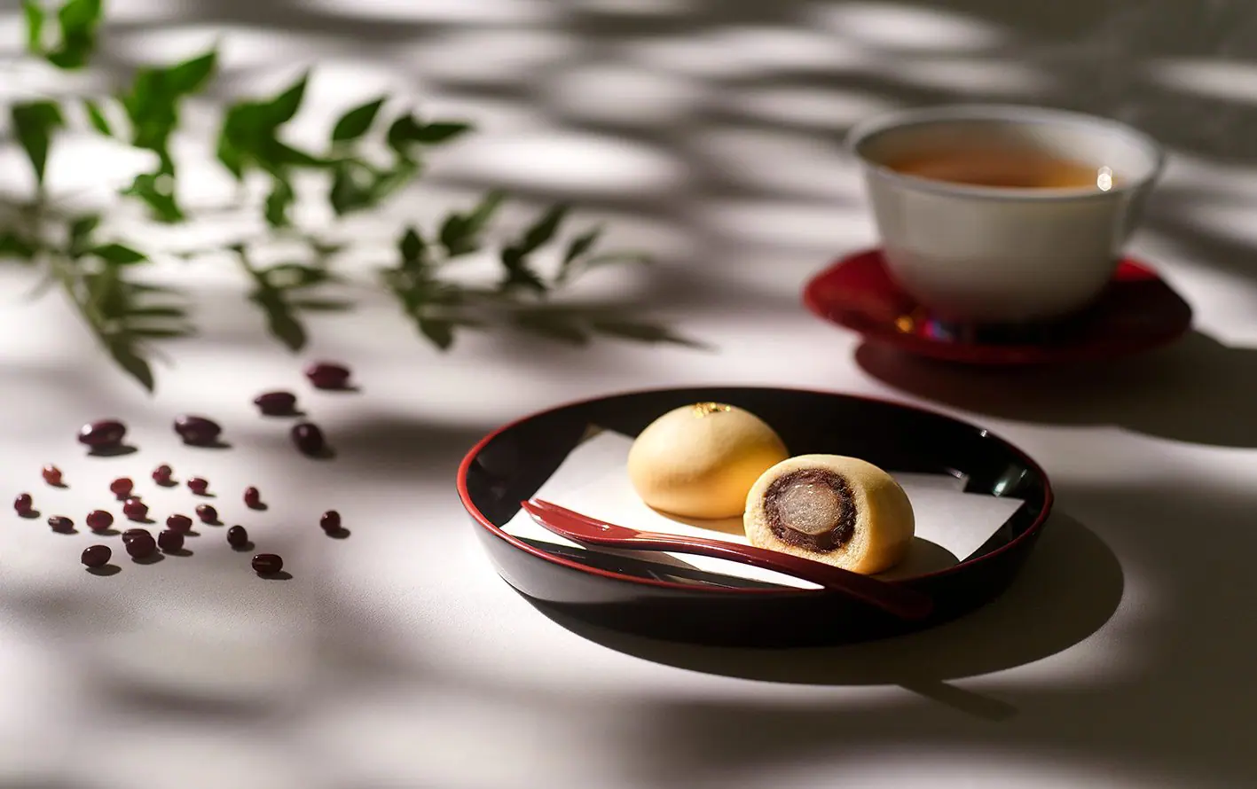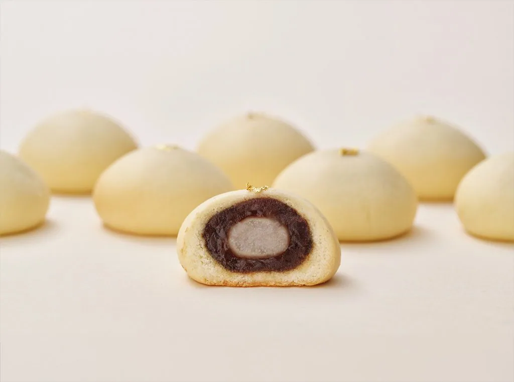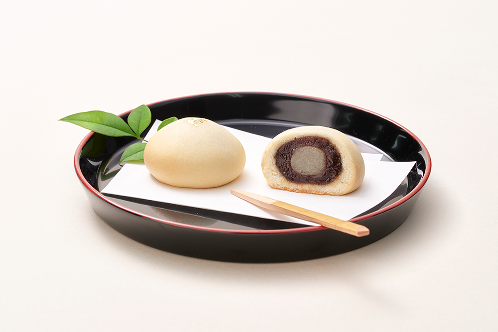 「光星」では、沖縄県産素材にこだわり、沖縄の希少な黒糖”尚和三盆”と金時豆を加えた黒糖あんこ、沖縄の餅屋、誠もちの柔らかいお餅をミルク風味のしっとりとした皮で包み、沖縄ぜんざいを表現しました。三重包あん製法を用いて優しく包み込むことで、とろける口当たりの饅頭が生まれました。