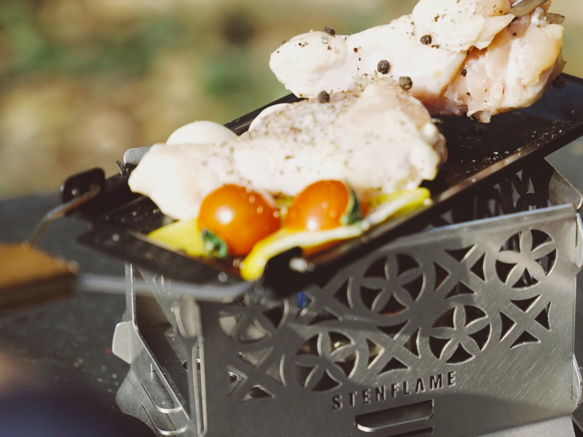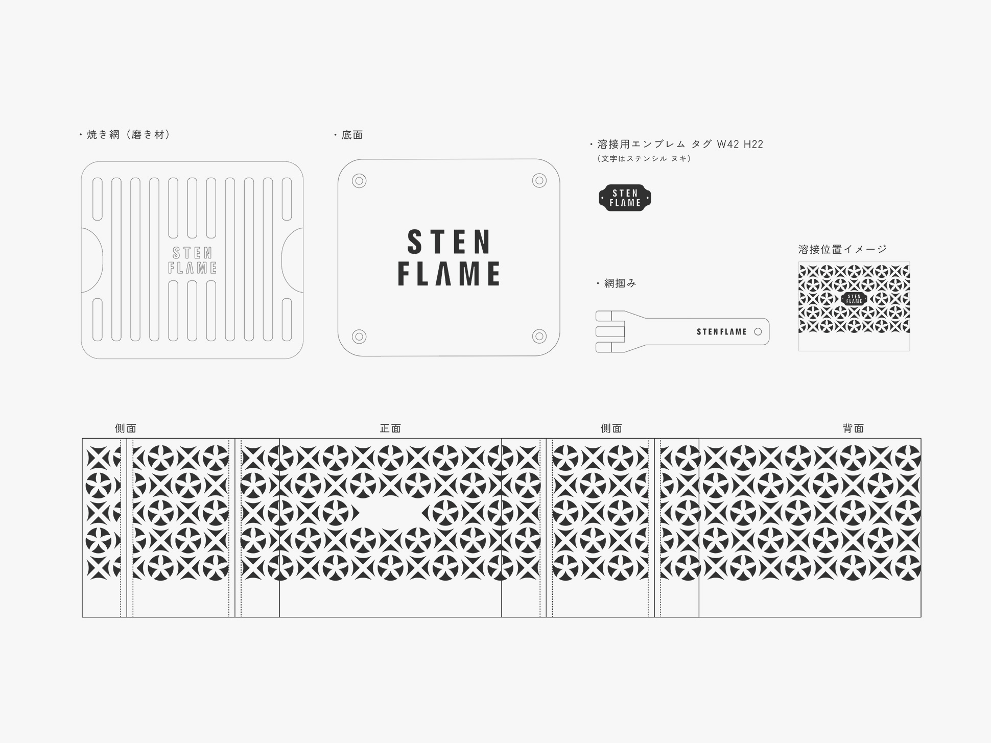 さらに天面には、グリルプレートと専用の網掴みを付属。焼く・煮込むといった調理にも対応し、焚き火台としてだけでなく、手軽にBBQを楽しめる多用途なアウトドアギアとして仕上がりました。このプロダクトは後にクラウドファウンディングで発表することになります。