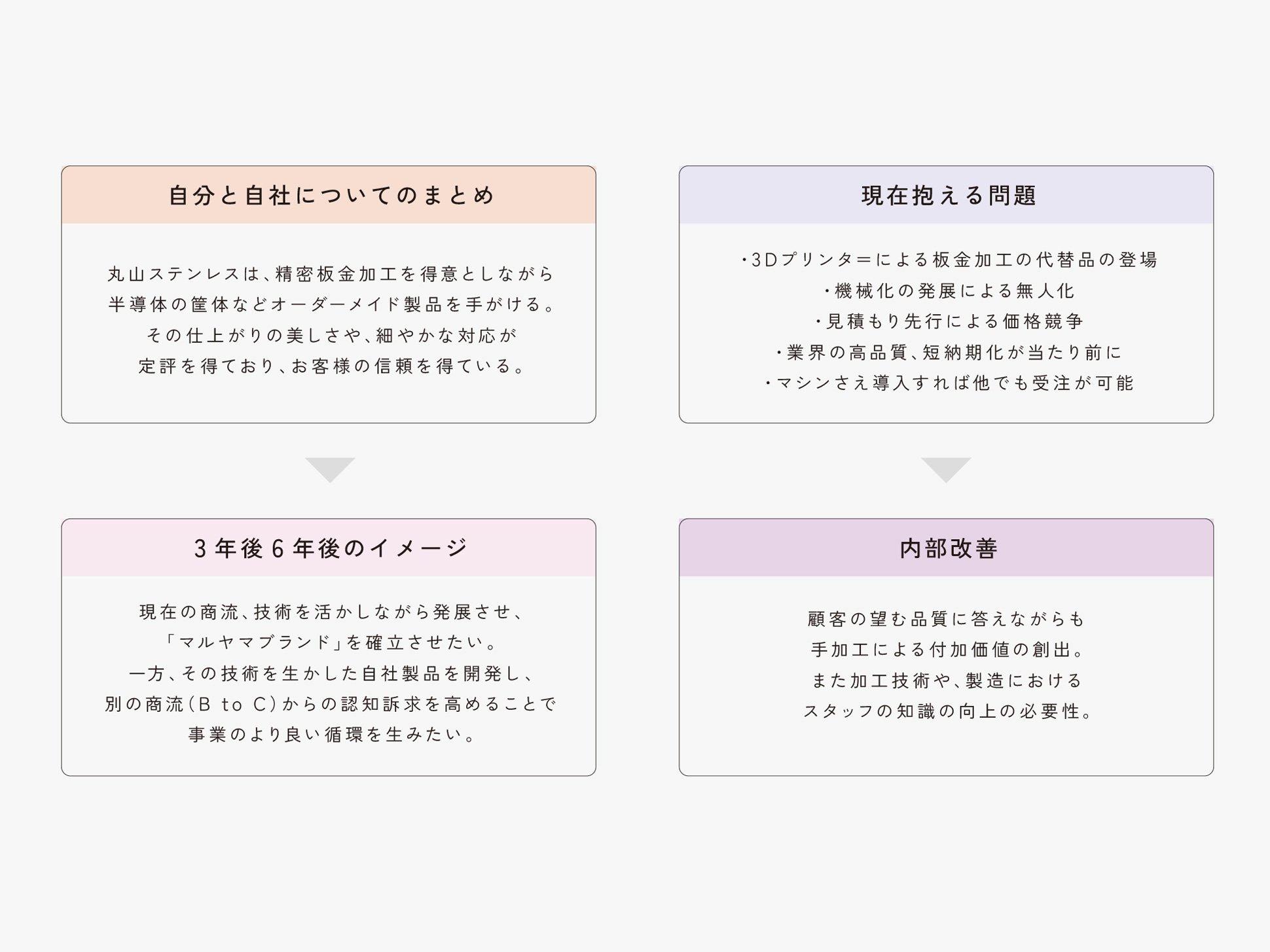 自社技術、業界競合などの動向について約半年をかけてヒアリング。導き出された精密板金や半導体を活かした技術をベースに、職人の一手間の価値を付加した自社商品開発を新規事業として目指すことに。