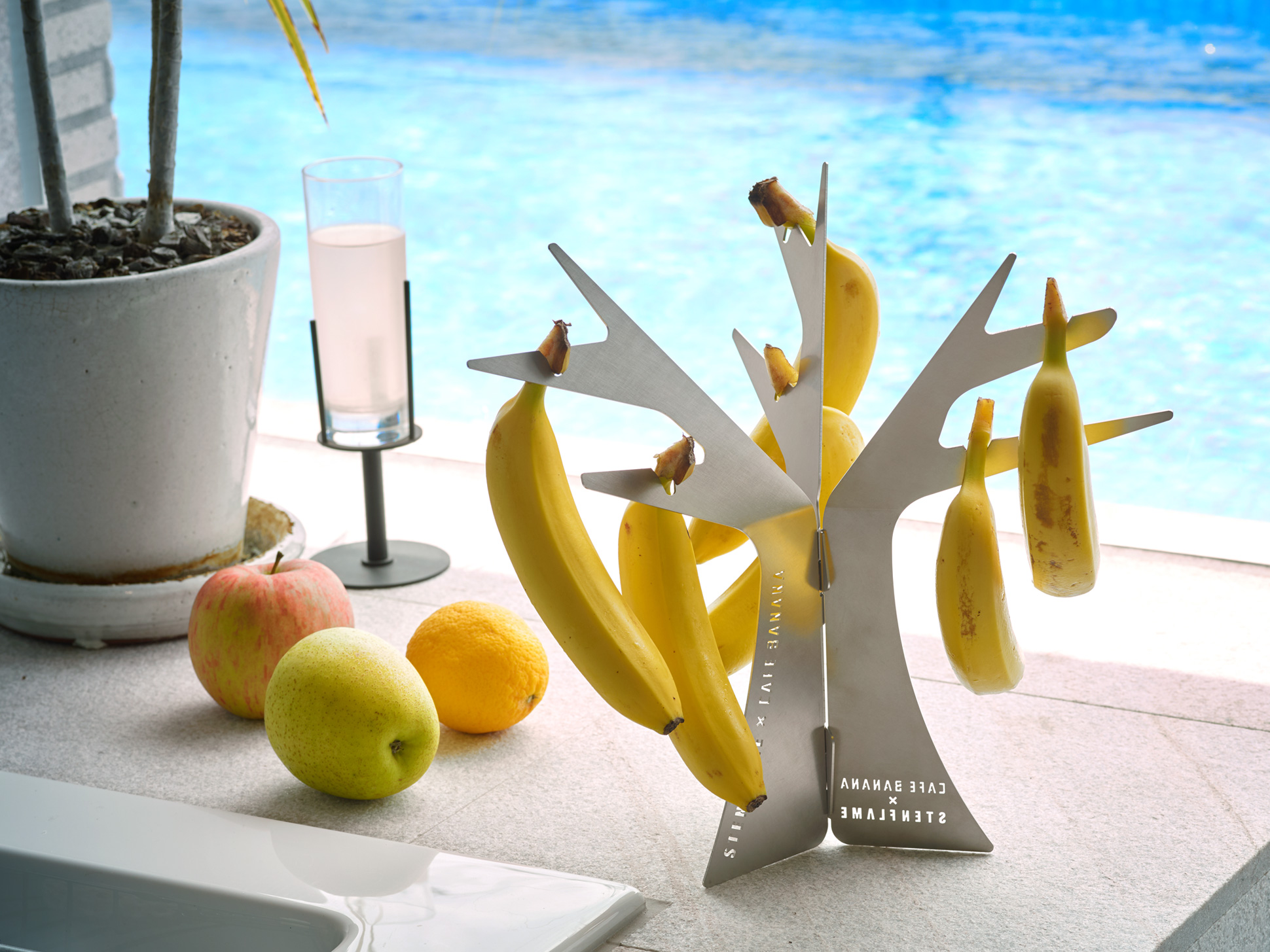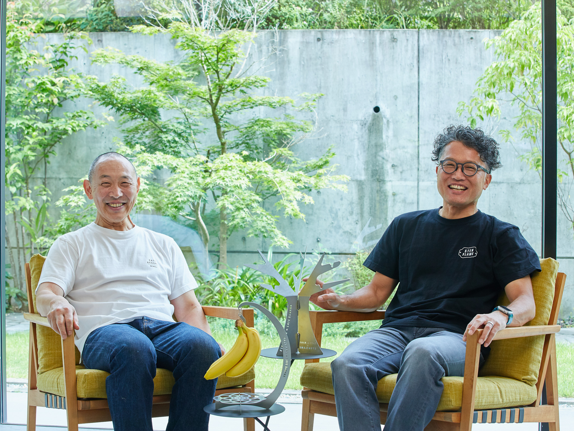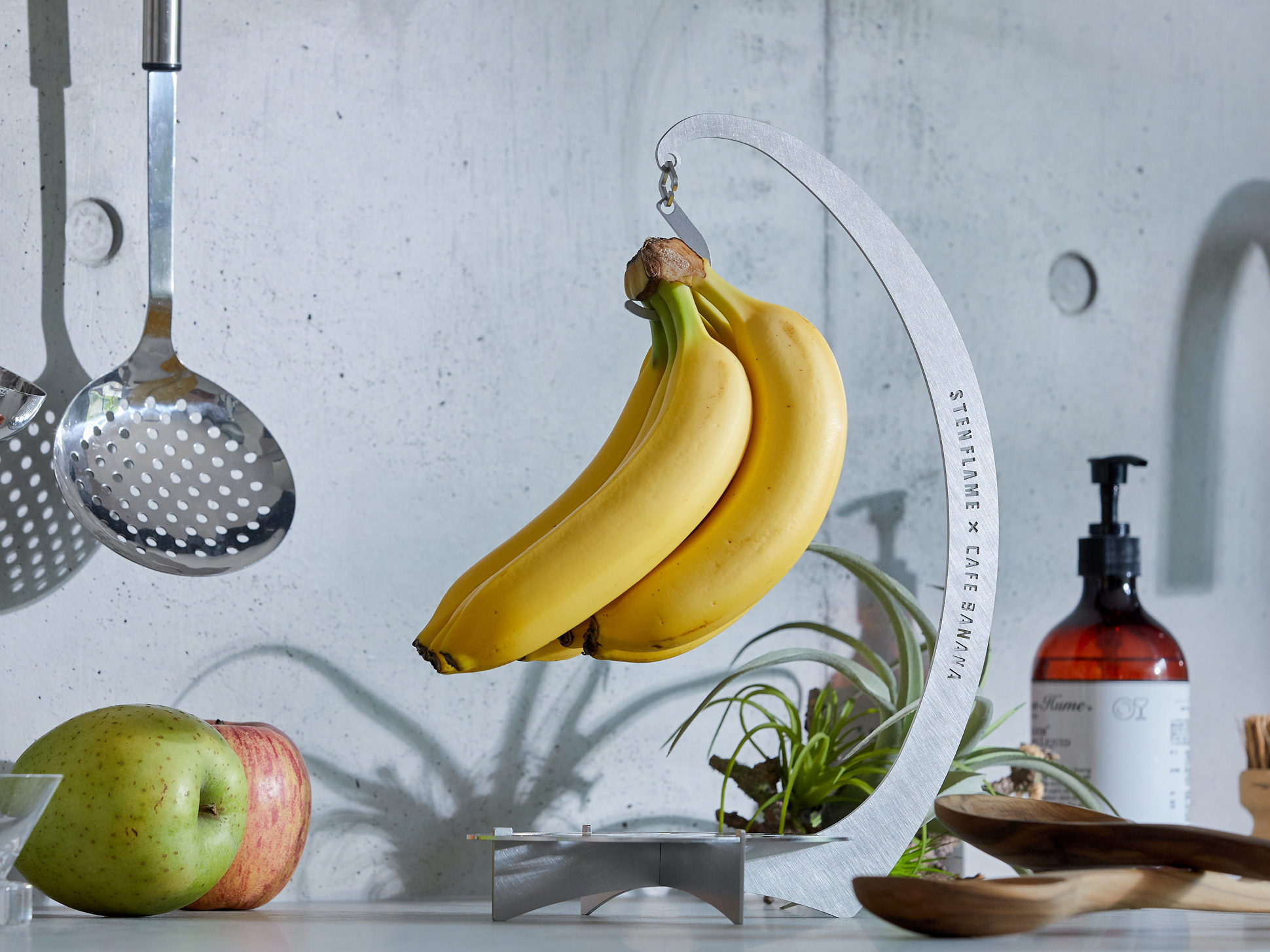 シリーズ第五弾は、これまでのアウトドアギアから一転、暮らしに寄り添うバナナスタンド。このプロダクトは、同社が所在する山鹿市の果物店との出会いがきっかけで誕生しました。創業から60年以上山鹿で愛されてきた「かきやま果実」を現オーナー : 柿山佳津樹さんが受け継ぎ、2022年リニューアルオープンした「CAFE BANANA」。この店の常連だった株式会社丸山ステンレス工業代表取締役社長 : 丸山 良博さんとの出逢いをきっかけに、“地元山鹿の魅力を多くの人に知ってもらいたい”と地域性を活かした商品開発がはじまりました。
