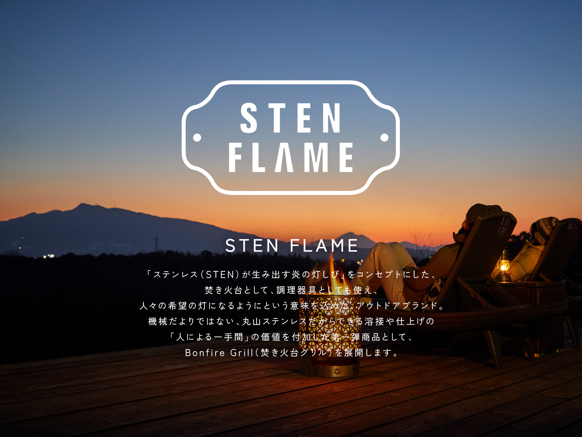 熊本県にて半導体や有機ELなどのステンレス部品精密板金加工の下請けを行なっている株式会社丸山ステンレス工業様のコーポレートブランディング、自社アウトドアブランド“STEN FLAME”の企画、商品開発からEC設計、プロモーションまで多岐にわたるプロジェクトをご紹介します。