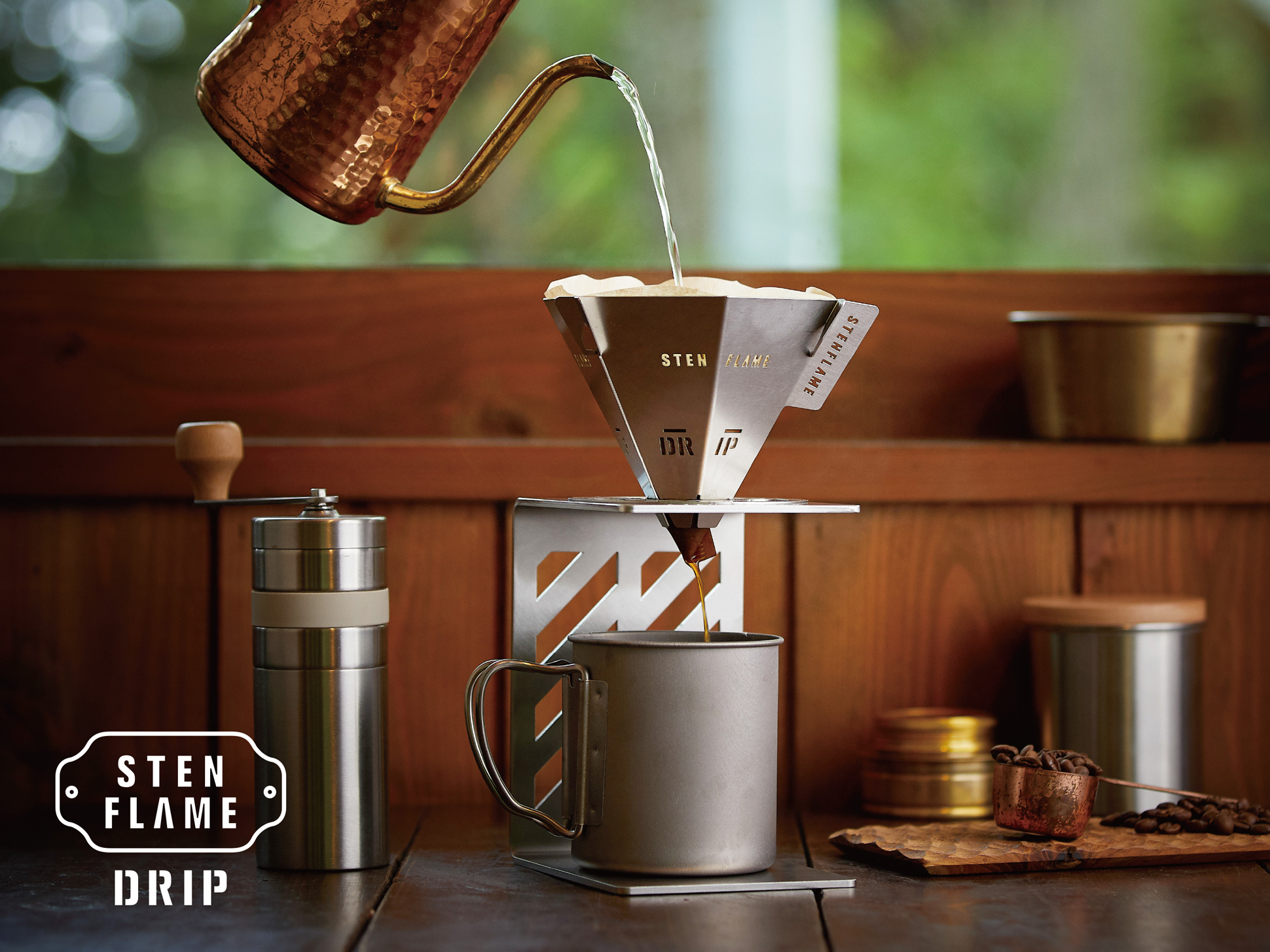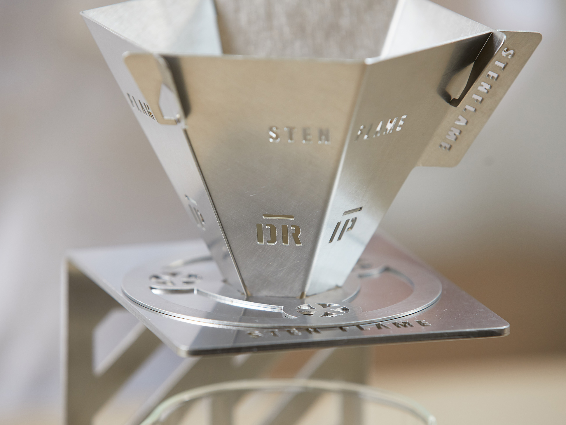 シリーズ第四弾は、アウトドアでの一杯を特別な時間に変えるコーヒードリッパー。STEN FLAME LIGHT で好評だった組み立て式構造を継承し、薄くフラットに収納できる携帯性を実現しました。キャンプではもちろん、自宅での日常使いにも馴染むよう、アウトドアでも、室内でも使いやすいデザインに仕上げています。
