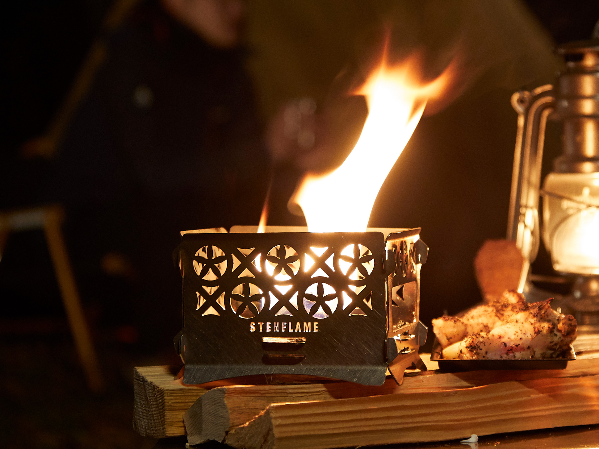 使用時には、焚き木を安定して入れられるよう側面にスリット状の開口を配置。さらに、本体内部にはアルコールストーブを収めて使用することも可能で、焚き火・ストーブの両方に対応する柔軟な設計になっています。コンパクトながら火力は十分で、焚き火台同様、簡単な調理にも対応。携帯性と実用性を両立させた、小さくても頼もしい焚き火台として仕上げました。