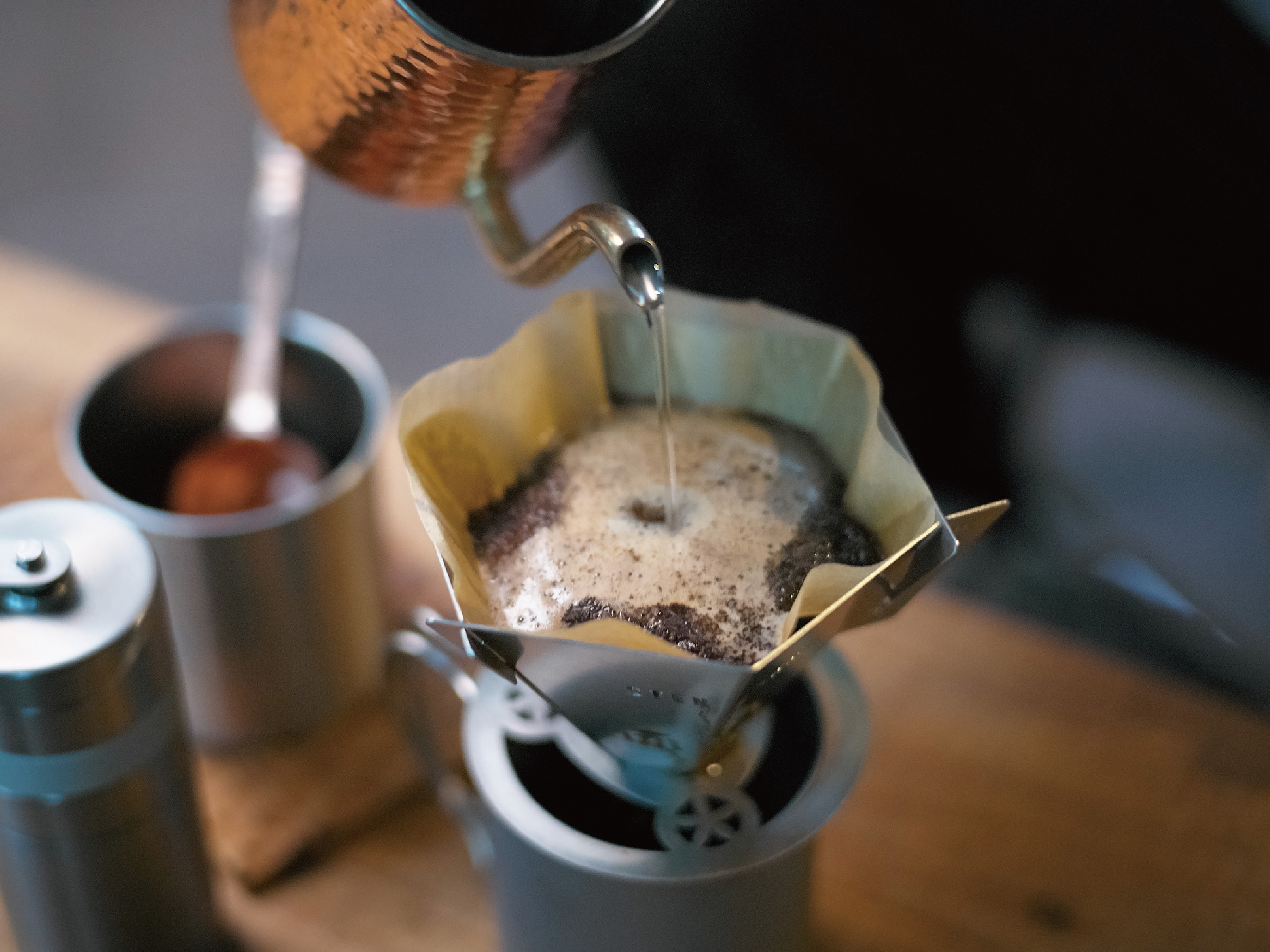 STENFLAME DRIPは、誰でも美味しく簡単にコーヒーを淹れることができるよう設計するため、 Un Cafe Sucre(株)楡井様と共同開発した製品です。抽出スピードや湯の落ち方、味わいのバランスまで丁寧に検証し、板金加工ならではの精度で微細な調整を行いました。その結果、どこでも安定した抽出が楽しめる本格派のドリッパーが完成しました。