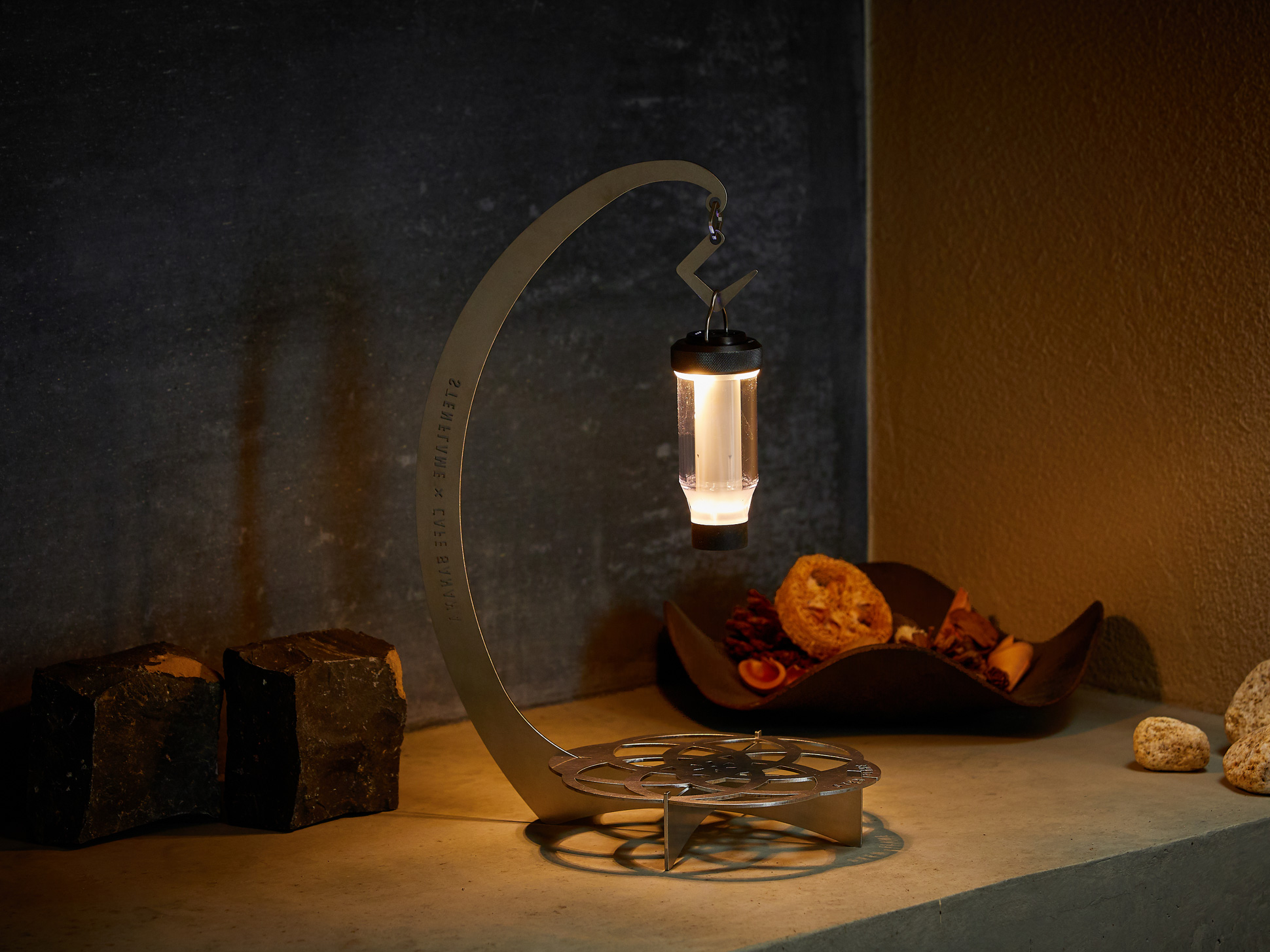 当時記憶にも新しかった、熊本の噴火などによる停電や自然災害時でも、誰でも簡単に扱えるアウトドアブランド「ステンレスが生み出す希望の灯」をコンセプトに設計。ドッグタグのように、ロゴがそのまま商品シリーズのエンブレムになるようにデザインしました。