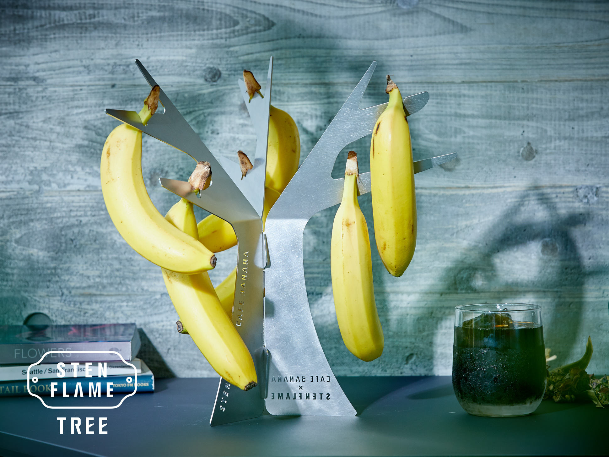 さらに今回は、ツリー型とフック型の2種類を展開。フック型は、先端のフックを付属のパーツに付け替えることで、ランタンフックとしてアウトドア仕様に早変わり。室内ではバナナスタンドとして、屋外ではギアとして機能する、汎用性の高い構造となっています。キッチン・ダイニングに馴染む柔らかな存在感と、アウトドアにも溶け込むミニマルなデザイン。機能性と造形美、そして地元愛が結びついた、新しい暮らしの道具です。二人の想いが詰まった“STENFLAME”バナナスタンドが熊本への架け橋となり、地域活性化に貢献することを私たちは目指しています。