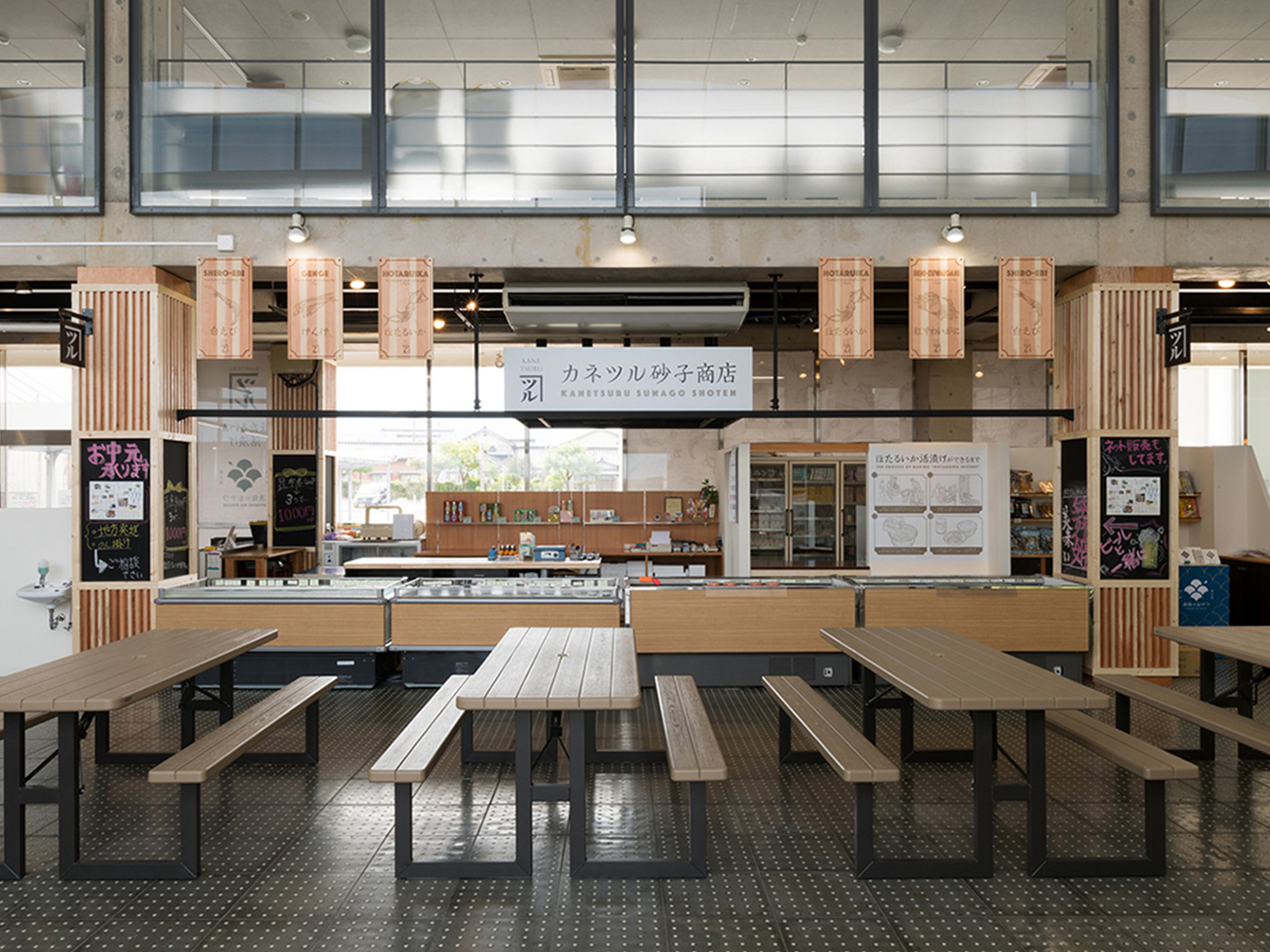 第一弾・第二弾の「漁師のおつまみ」シリーズは、富山県滑川市にあるほたるいかミュージアム内、カネツル砂子商店様の売り場にて展開されています。本プロジェクトでは、商品パッケージに加え、売り場全体の世界観づくりとして、看板およびPOPサインのデザインも担当させていただきました。売り場のメインサインには木製看板を採用し、レーザー加工によって海産物やホタルイカのモチーフを表現。商品パッケージと共通するデザイン言語を用いることで、ブランドとしての統一感を持たせ、富山湾の海の恵みを感じられる佇まいに仕上げています。またPOPサインでは、ホタルイカ漁の方法や、なぜ富山の海産物が美味しいのかといった背景を、イラストと図解を用いて分かりやすく可視化。観光施設という特性を活かし、商品を「買う」だけでなく、富山の海と食文化を知り、体験として記憶に残る売り場づくりを目指しました。