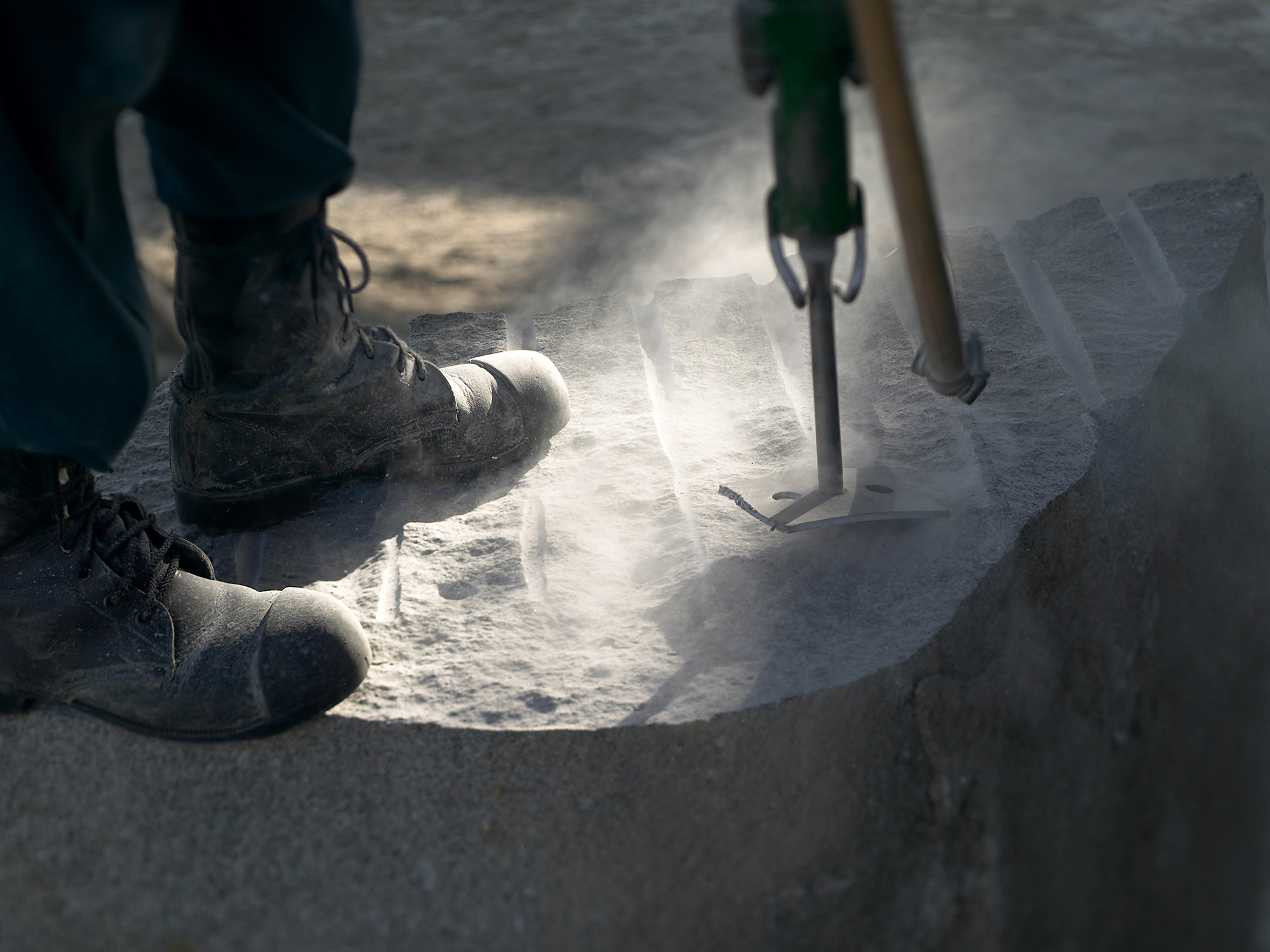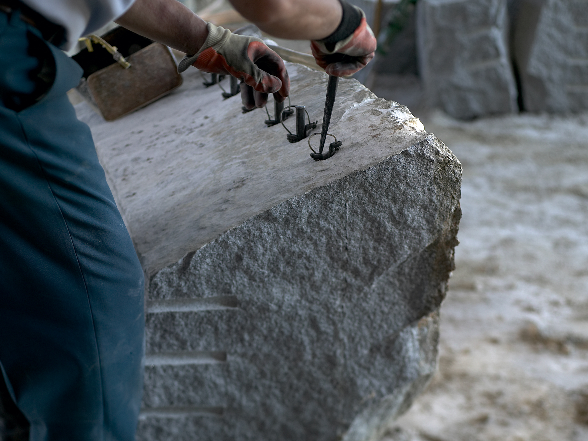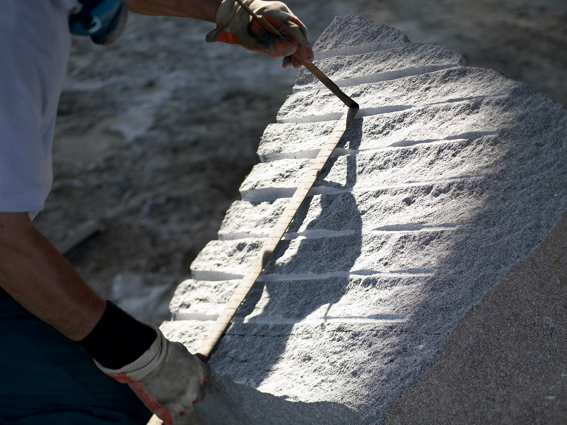 一方で、側面には庵治石のテクスチャーを取り入れることで、