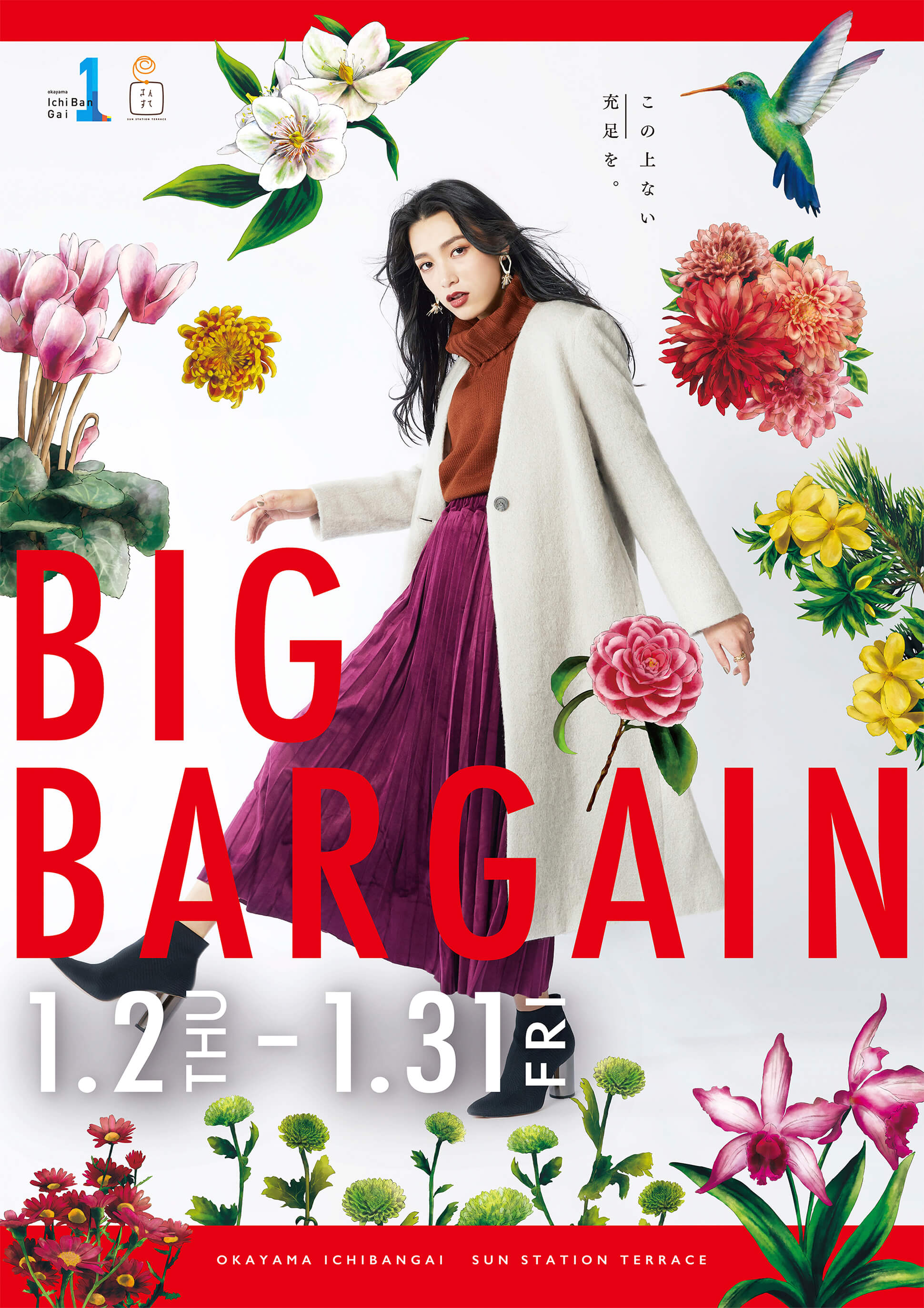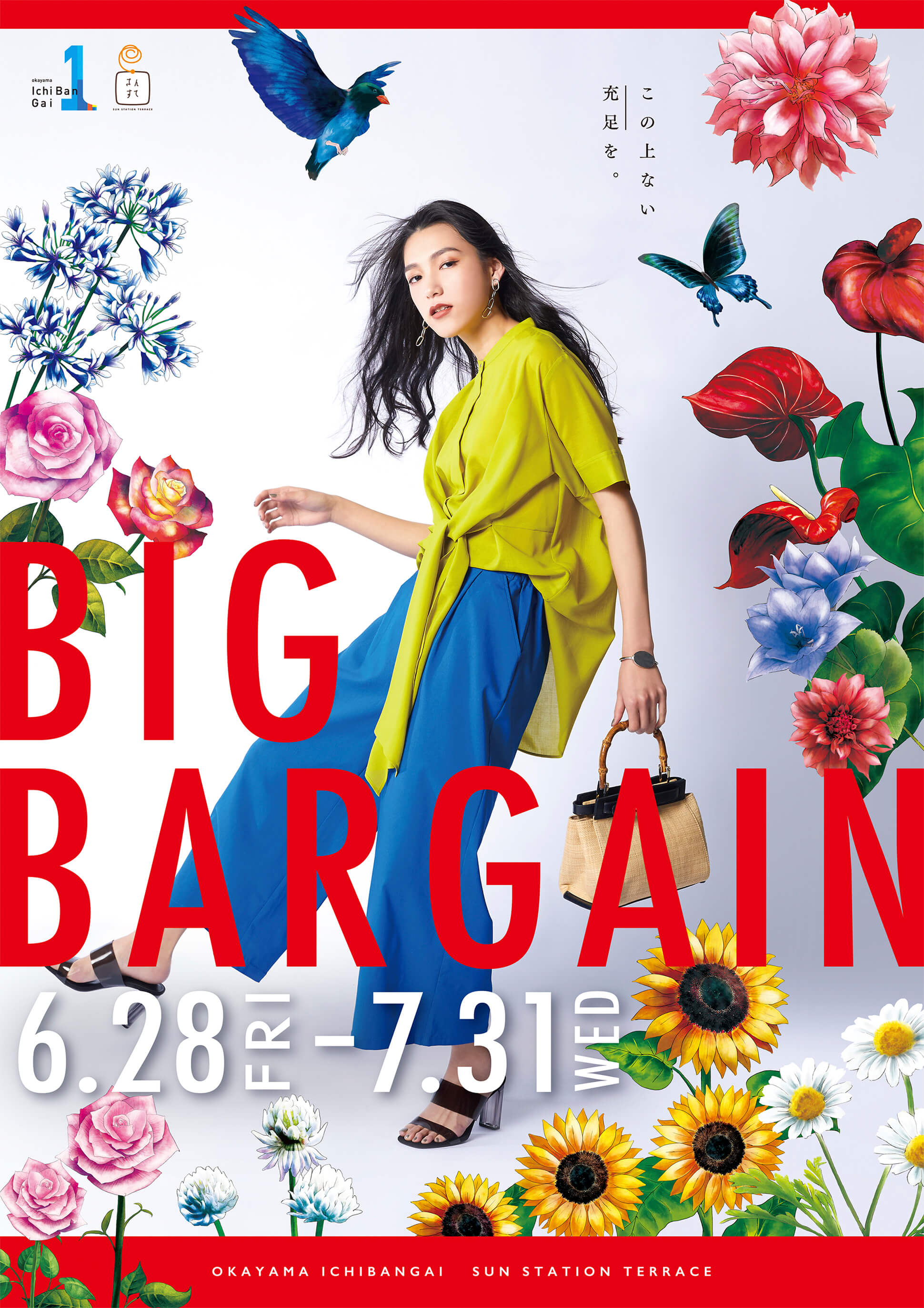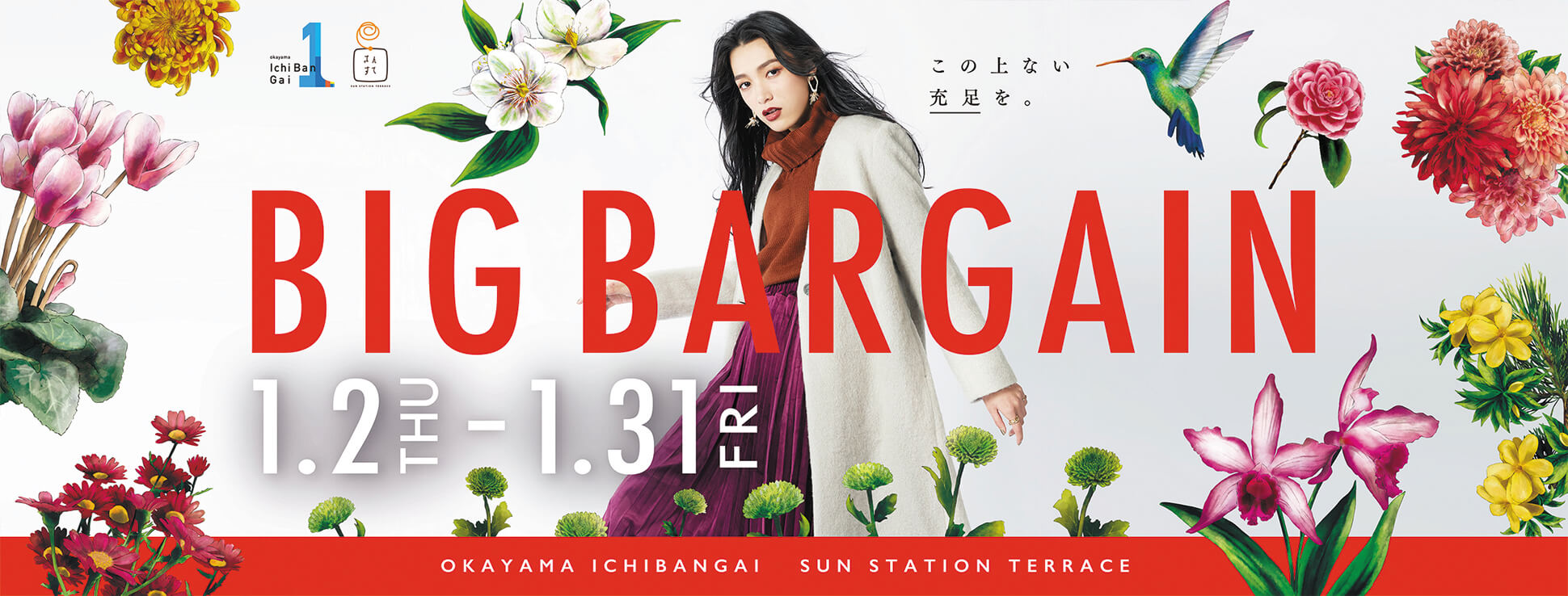 岡山一番街と並行して、商業施設「さんすて」の年間プロモーションも企画・制作。メインビジュアル、販促ツール、動画制作まで一貫して担当しました。