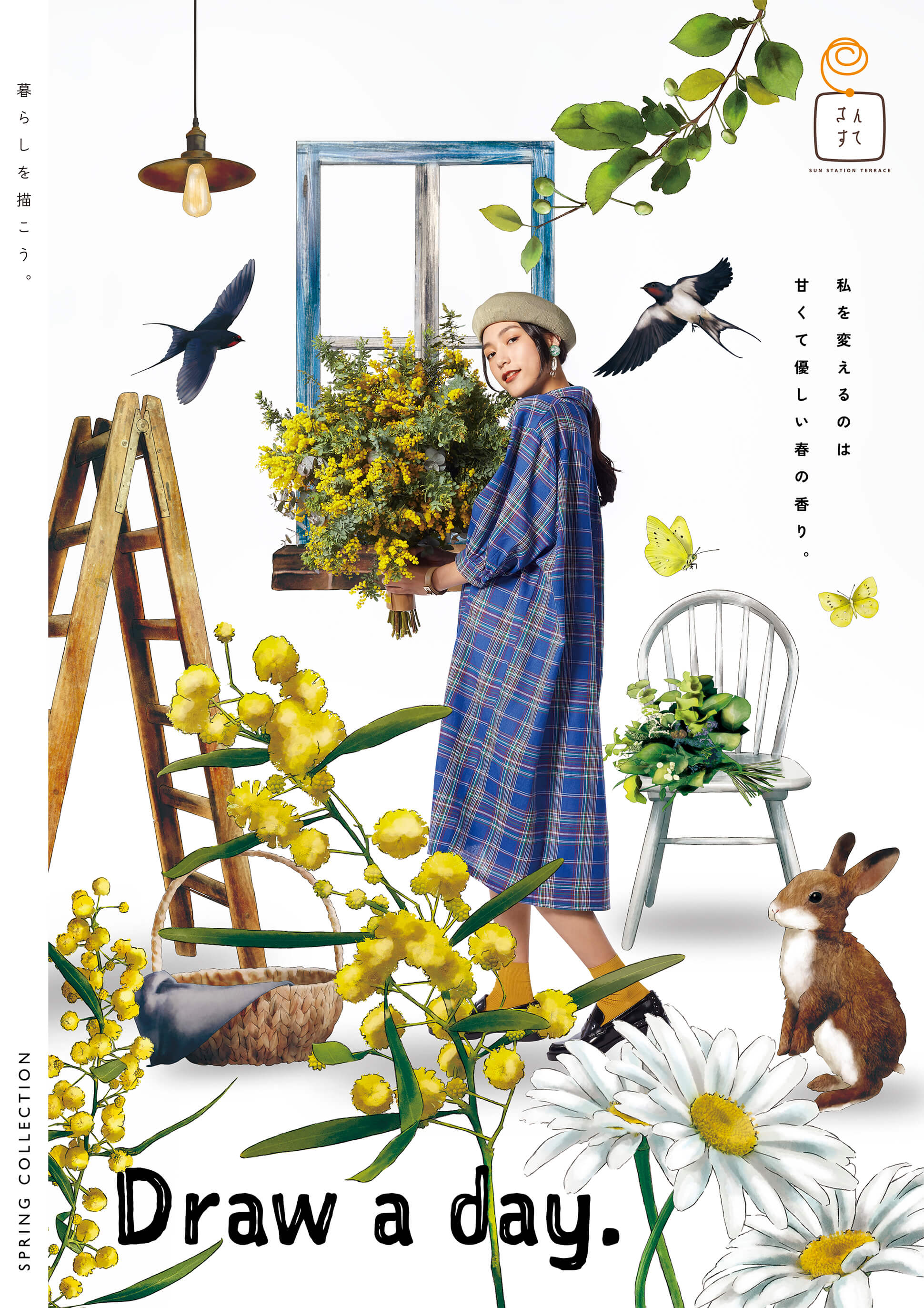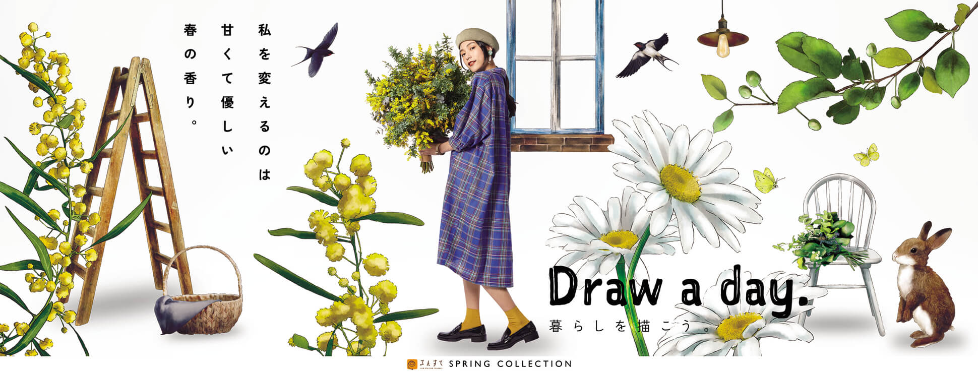 として象徴化。イラストで描かれた世界の中にモデルが存在する構図により、平凡な日常に楽しさや彩りが加わる様子を表現しています。