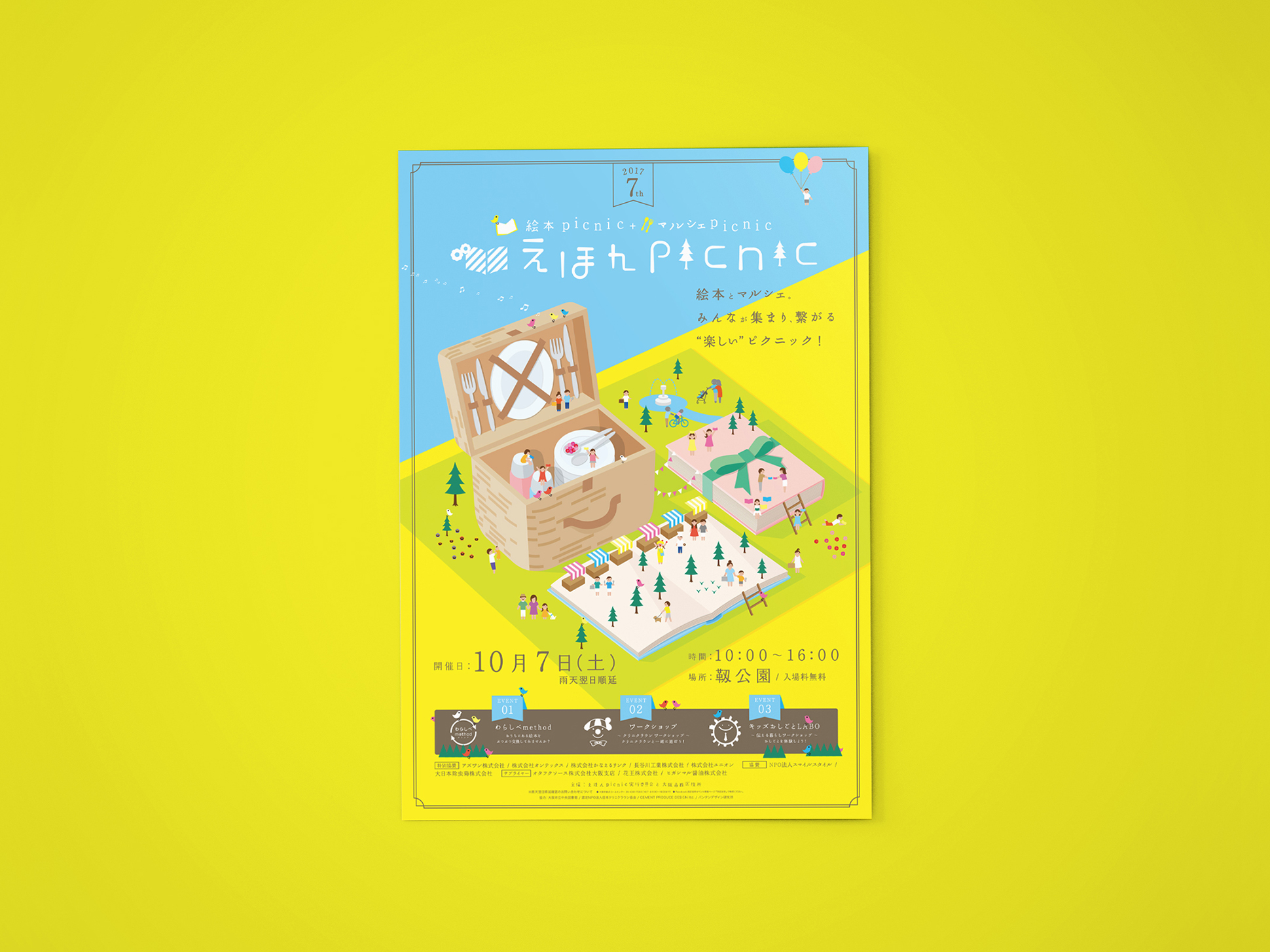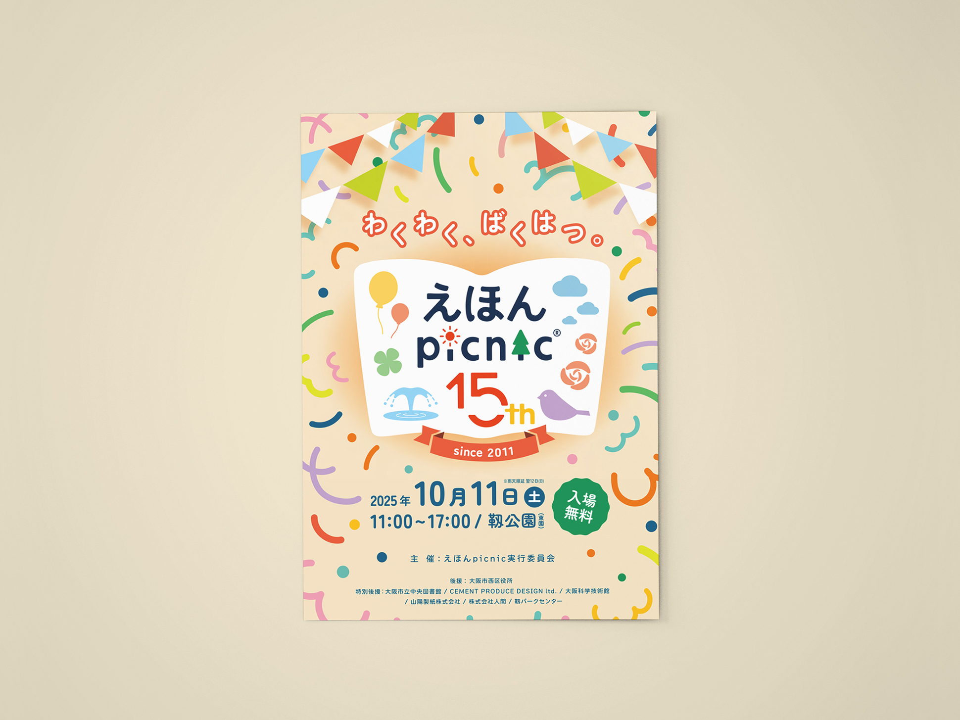 「えほんピクニック」は、単なるイベントの告知や装飾ではなく、人が集い、物語の中に入り込むような体験を生み出す場です。セメントはその思想に寄り添いながら、ビジュアルを通して体験の質を高める役割を担っています。。