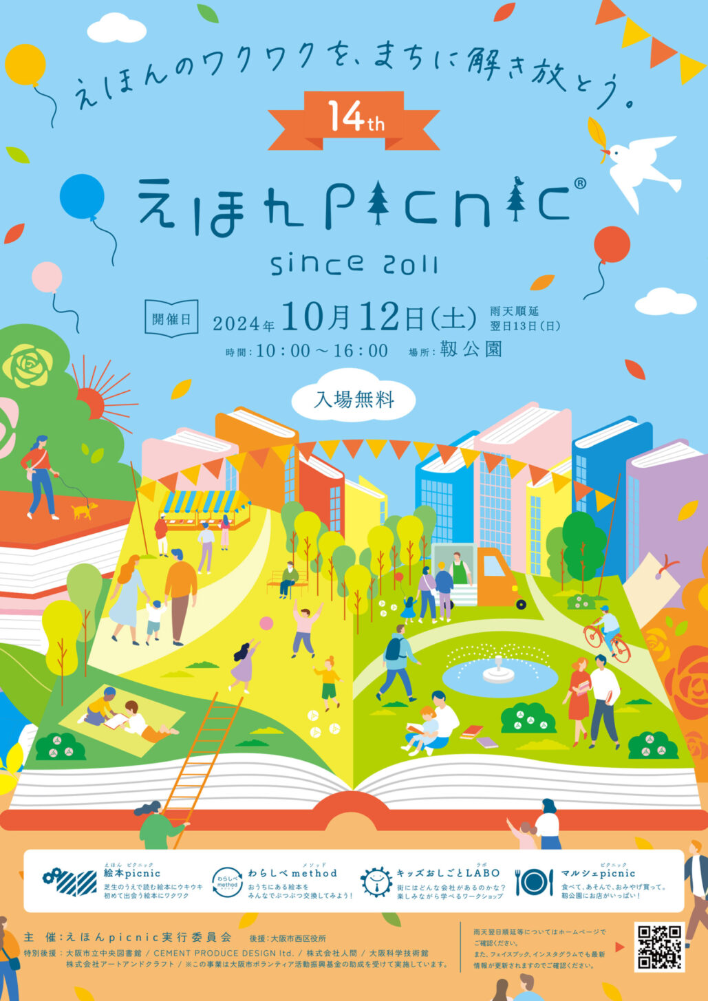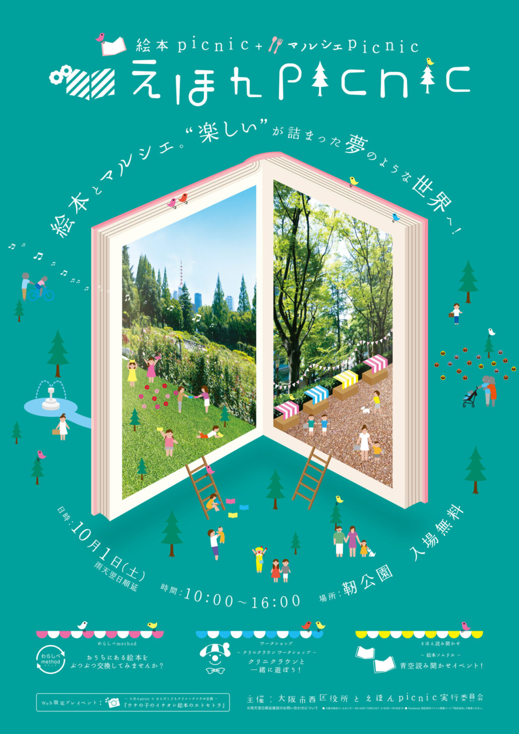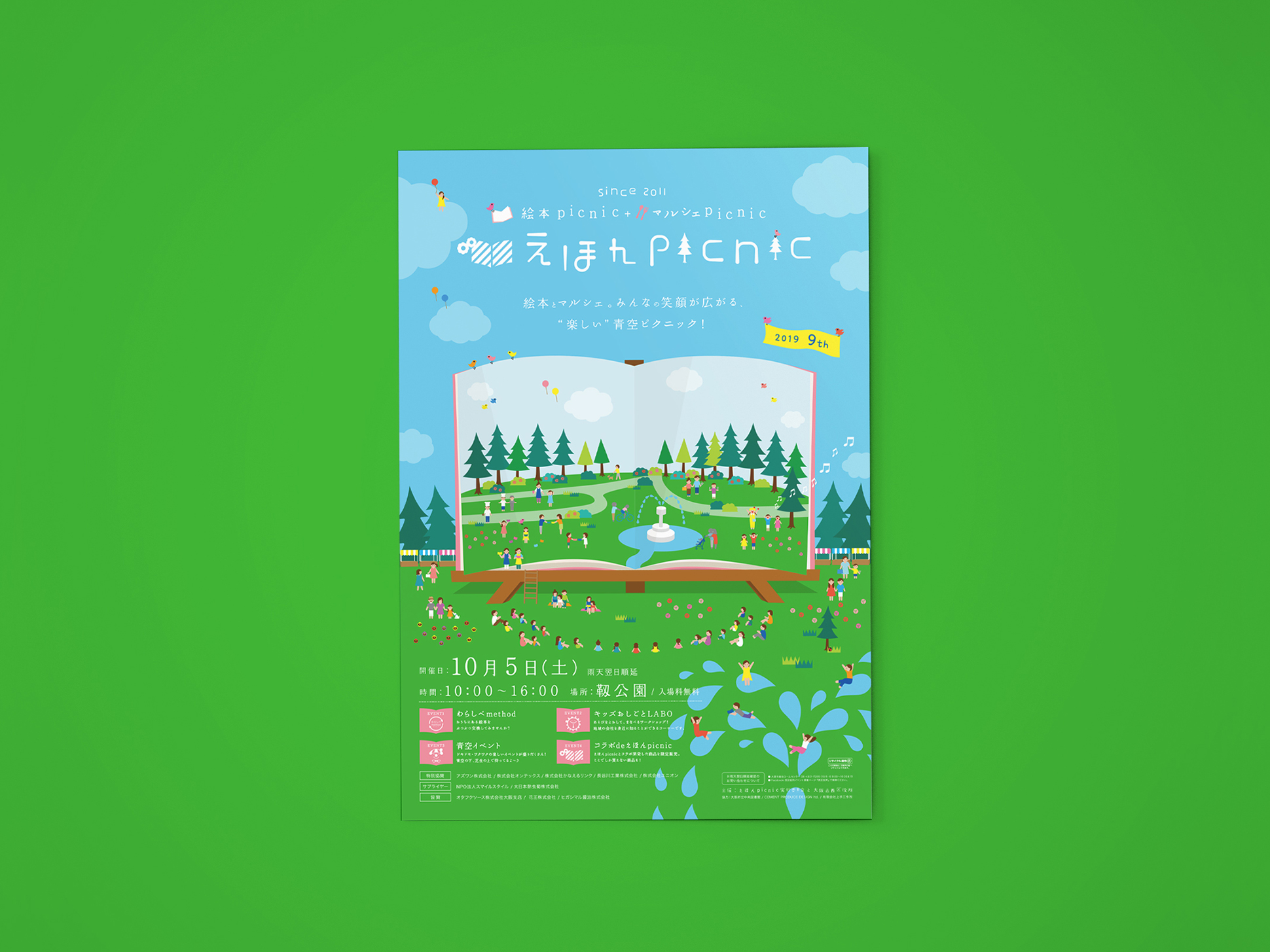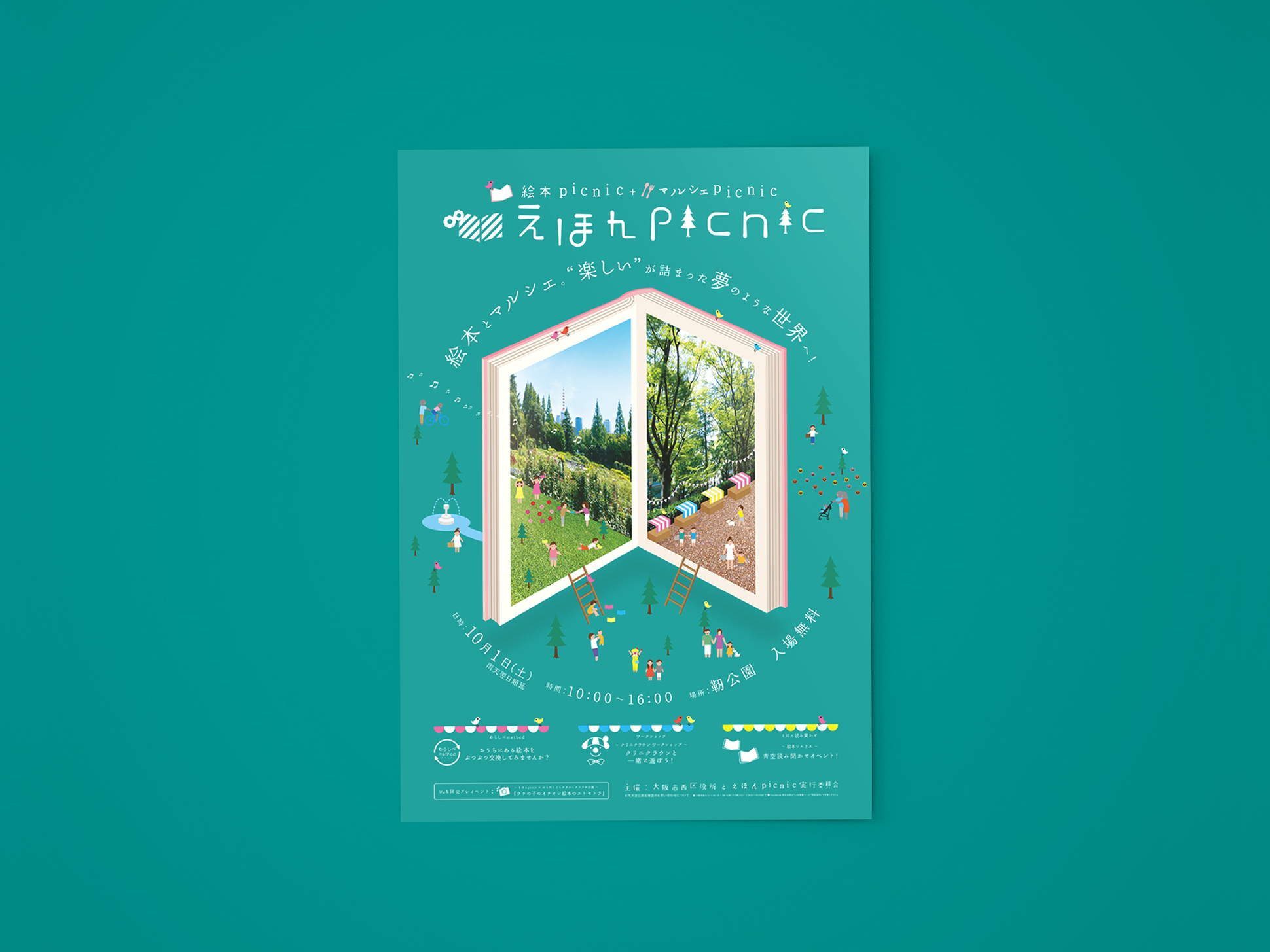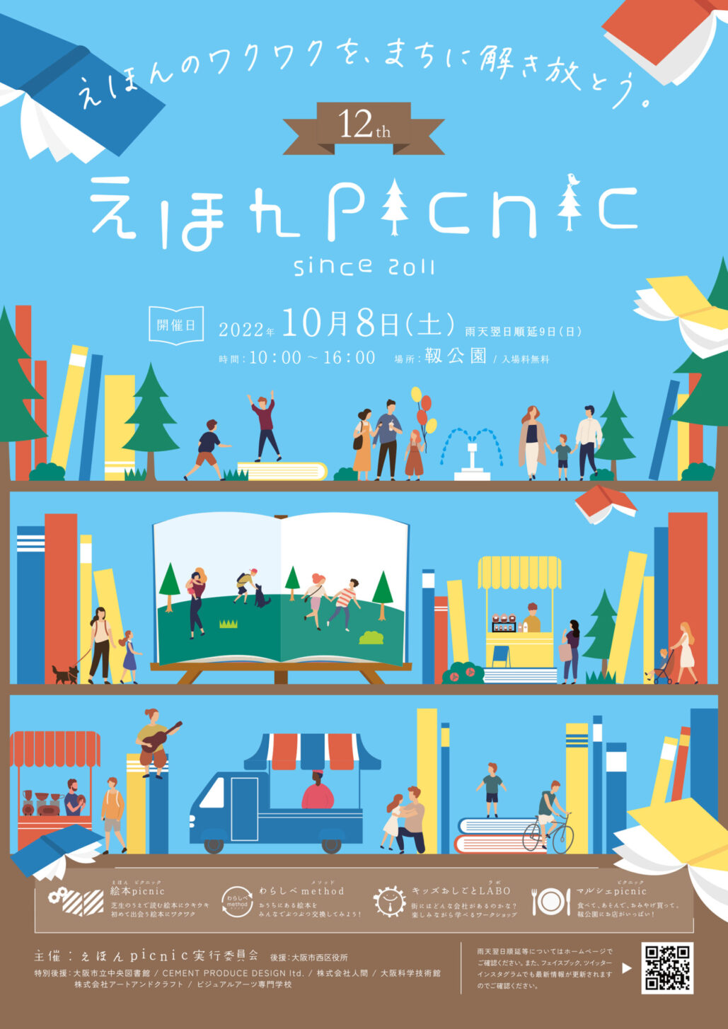 大阪本社のある京町堀・靱公園で開催される「えほんピクニック」において、セメントはデザイン面でのサポートを行っています。
