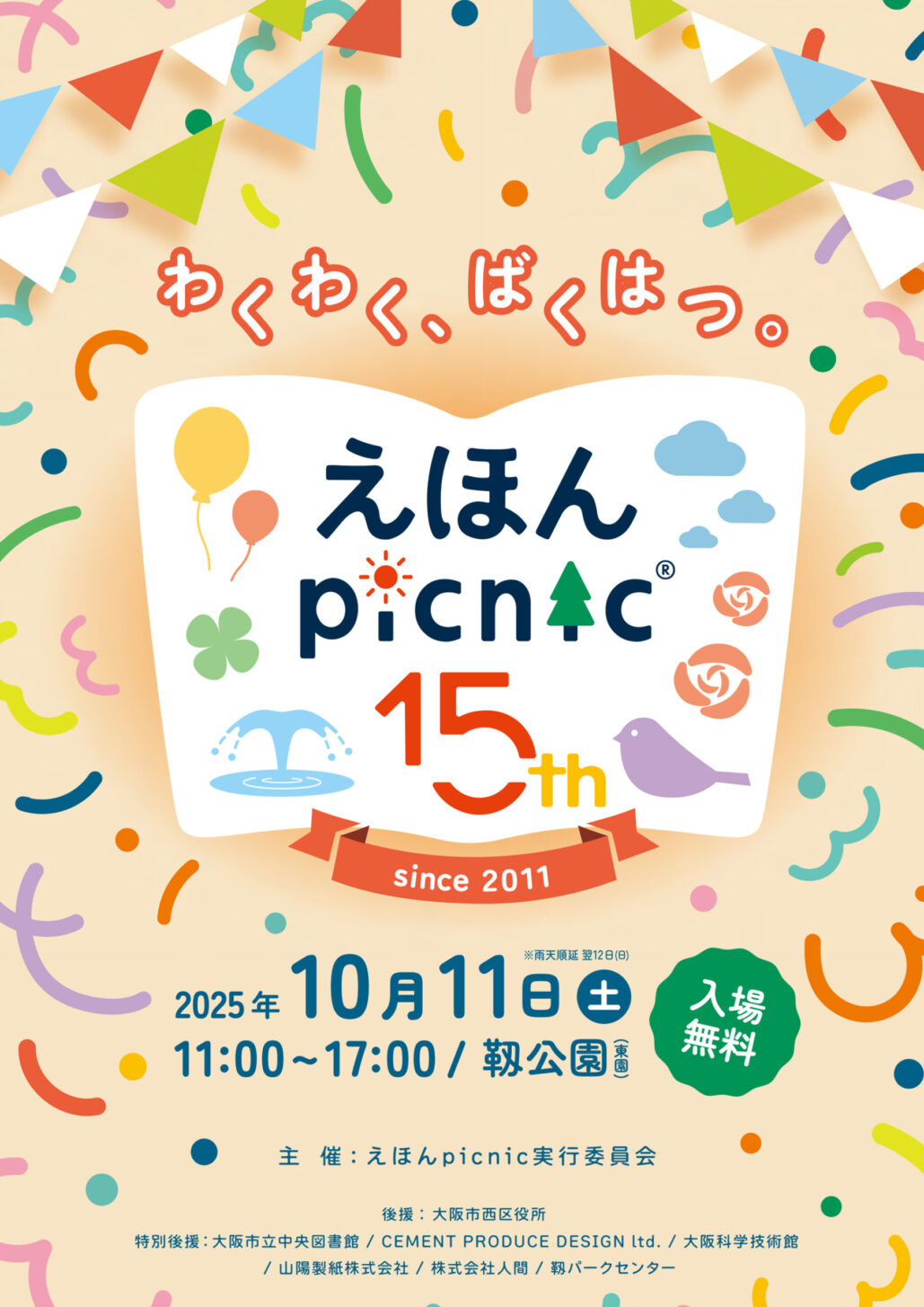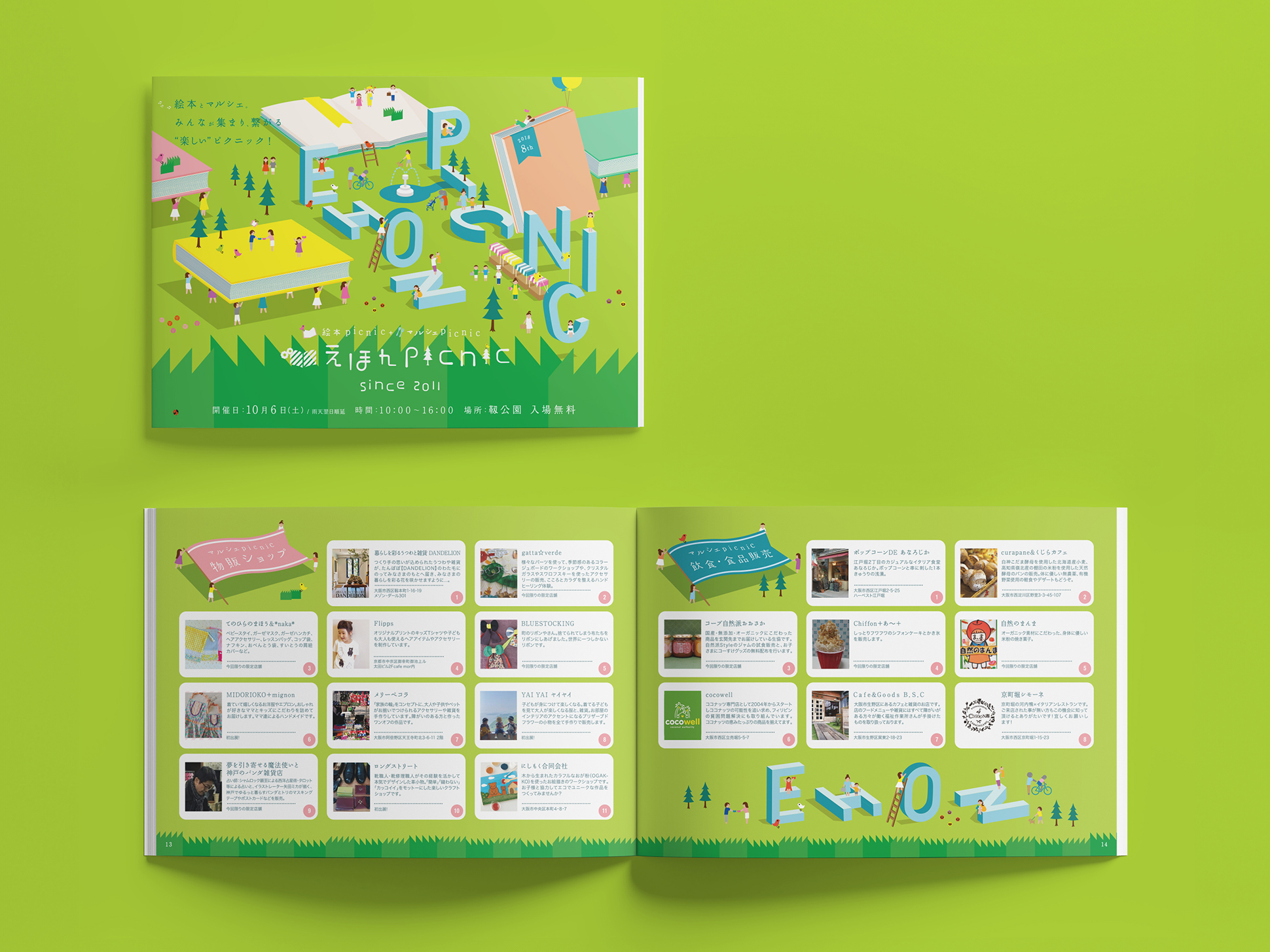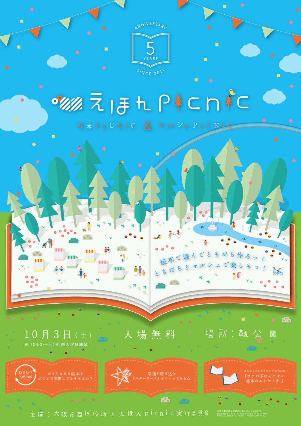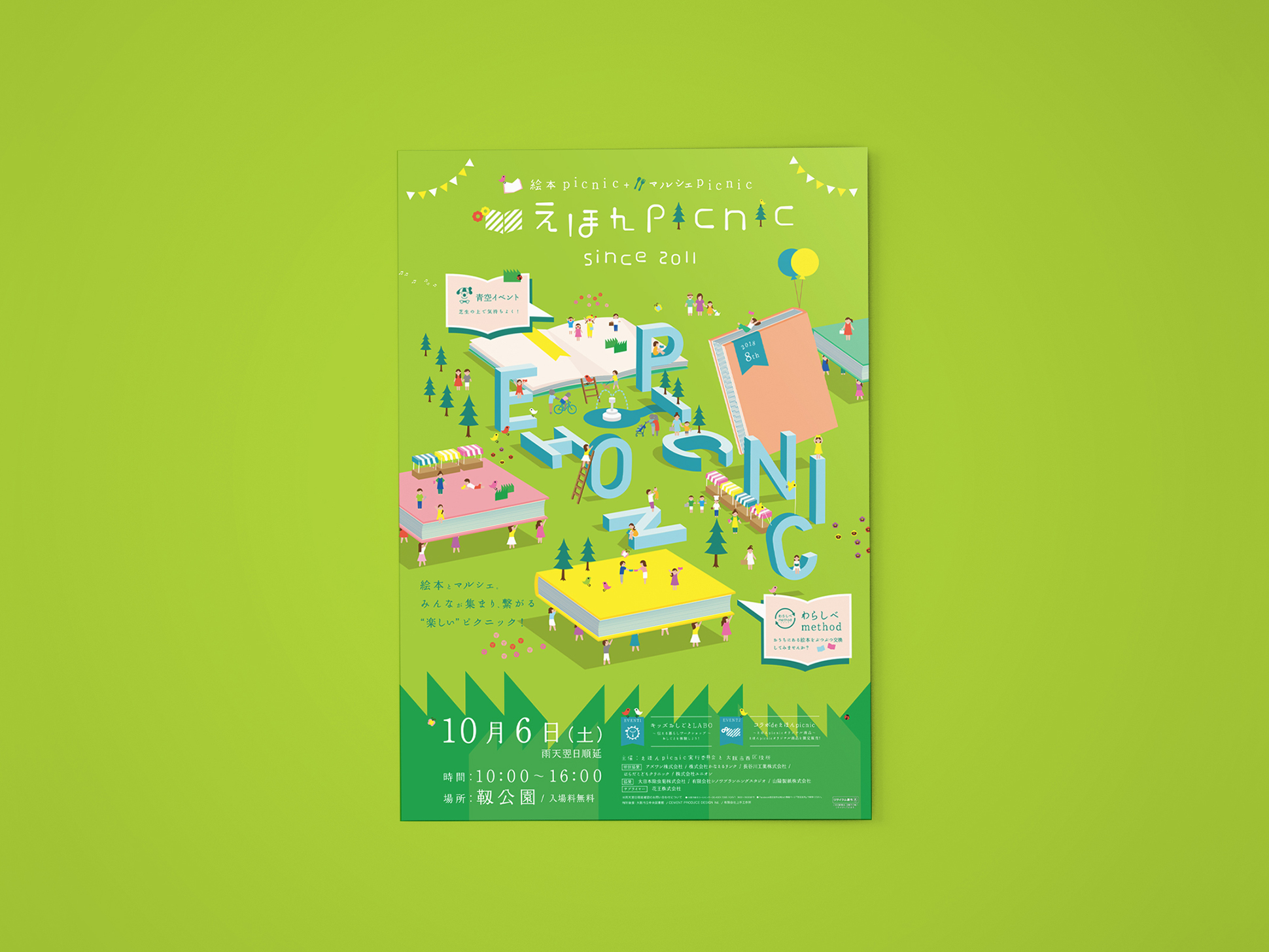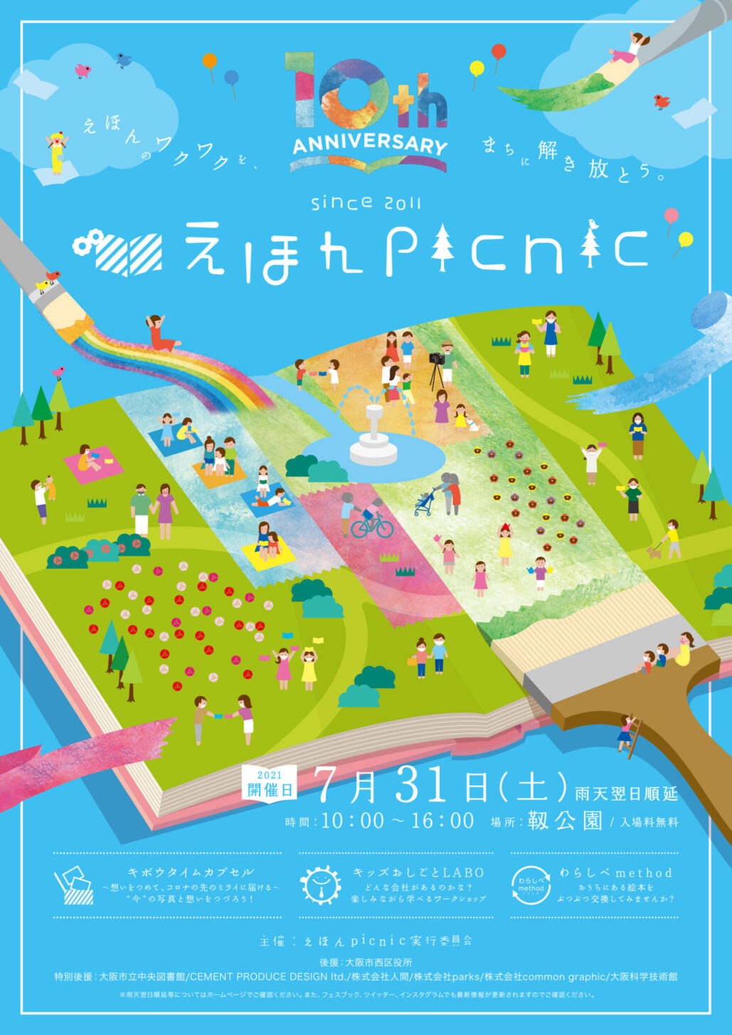 大阪本社のある京町堀・靱公園で開催される「えほんピクニック」において、セメントはデザイン面でのサポートを行っています。