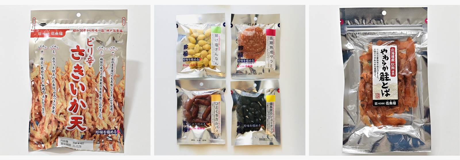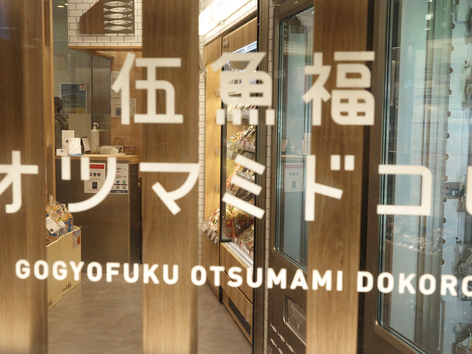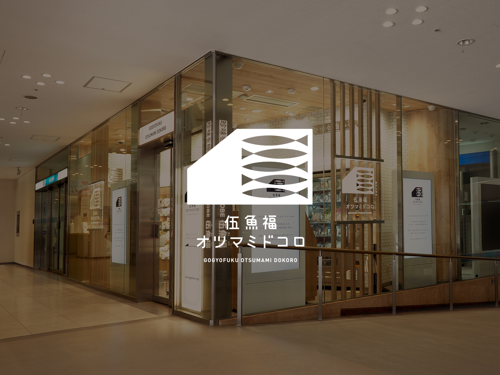 晩酌に最適な人気商品「ピリ辛さきいか天」や、ワインとの時間を彩る「クリームチーズ生ハム包み」など、約400種類もの商品を全国に展開する神戸発のおつまみ専門食品メーカー、株式会社伍魚福さま。その伍魚福さまが新たに取り組まれた「直営店舗プロジェクト」に、CEMENT PRODUCE DESIGNも参画させていただきました。本プロジェクトにおいてセメントが担当したのは、店舗コンセプト設計、ファサードデザイン、そしてロゴデザインです。