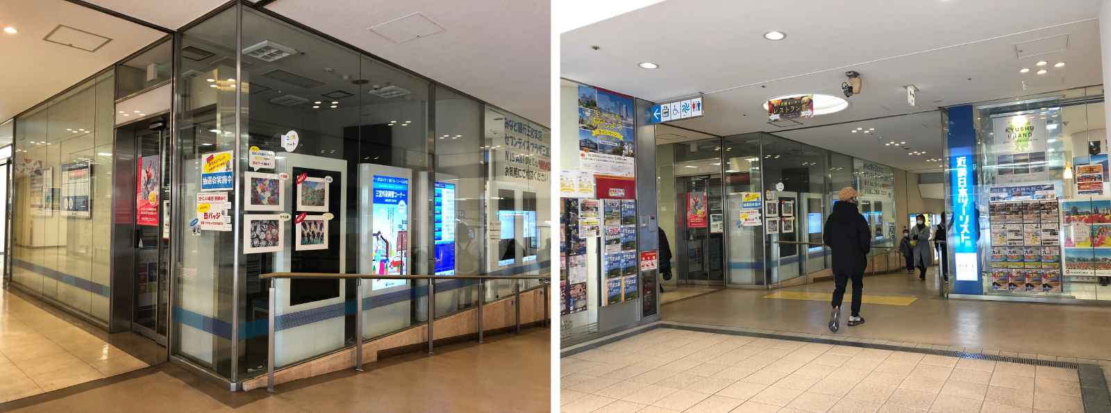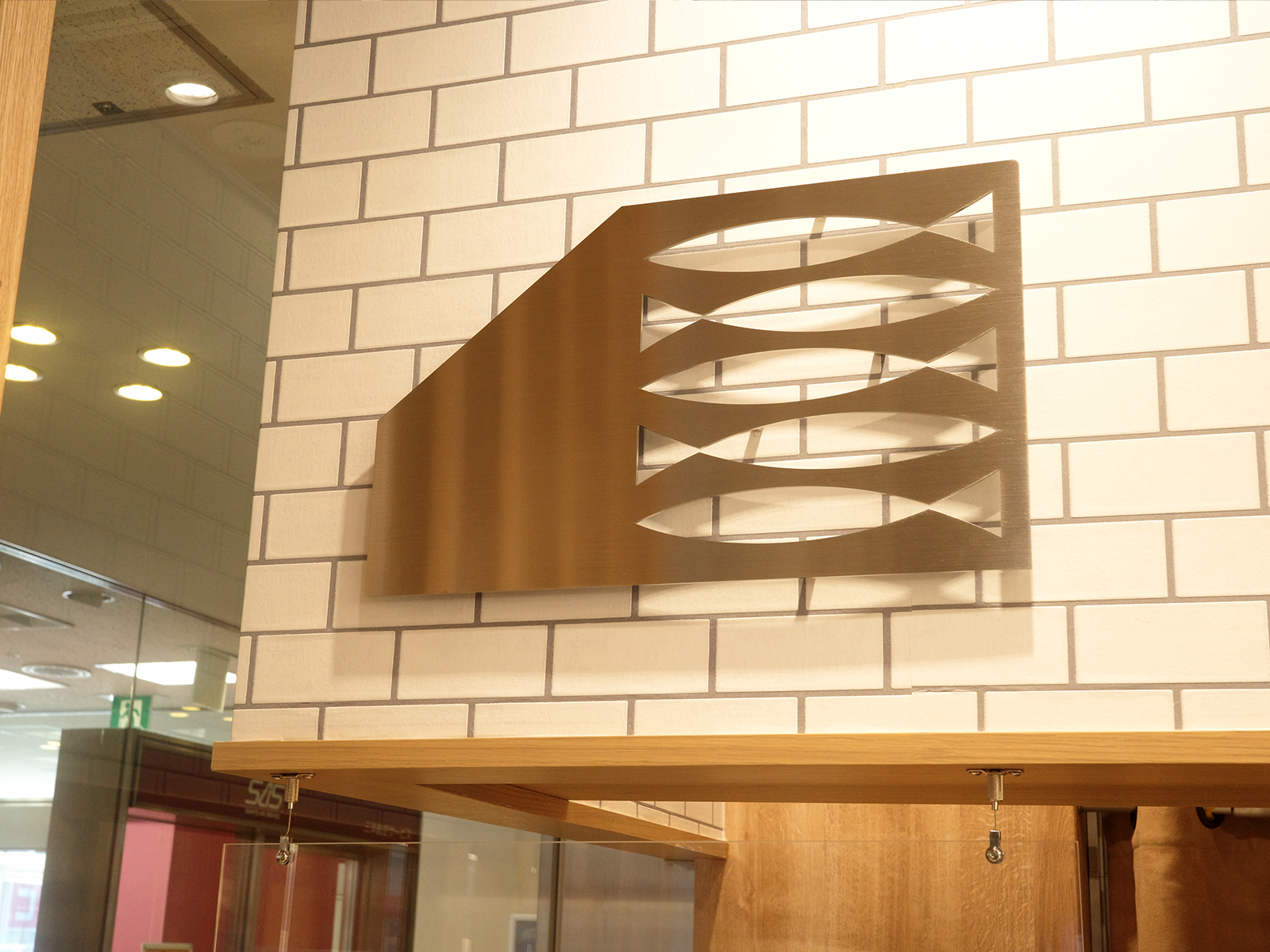 出店場所は三宮駅直結、三宮交通センタービル2F。銀行の旧両替コーナーという、ステンレスを基調とした空間でした。既存の建具や電飾サイネージはそのまま活用すること、そして現状復帰が可能であることが条件として提示される中、銀行ならではの“ステンレス感”をいかに活かすかが大きなテーマとなりました。
