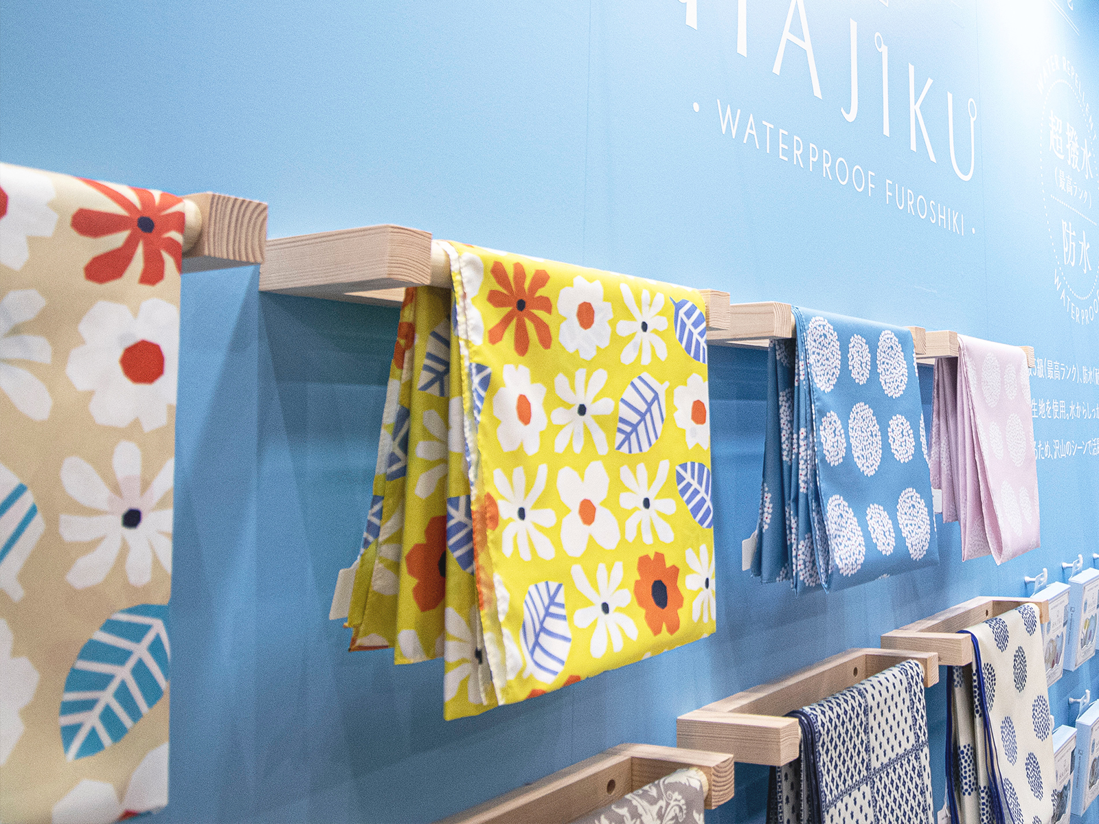 超撥水・防水という機能を持ちながら、日常に自然と溶け込む佇まいを持つ風呂敷「HAJIKU」。