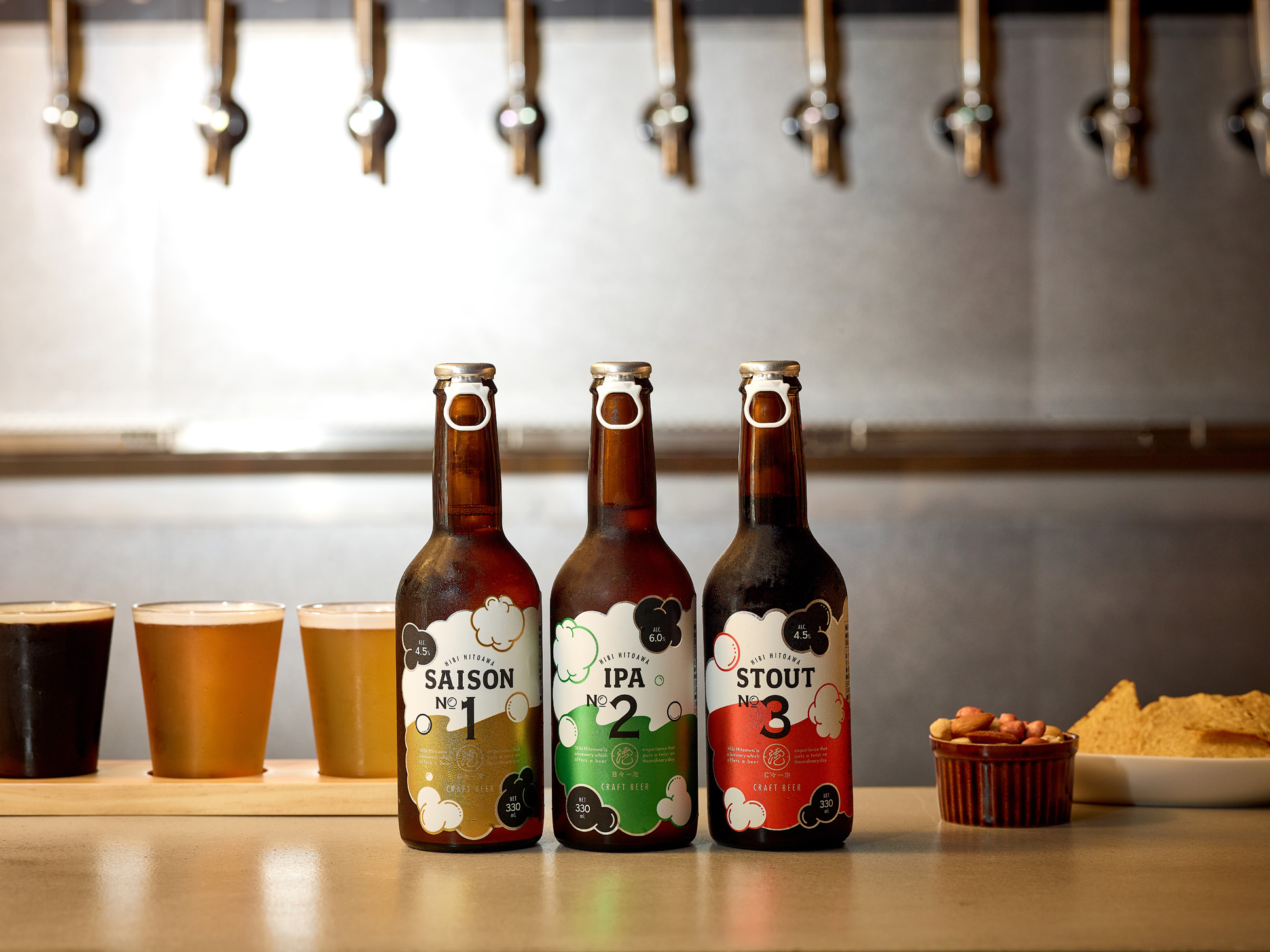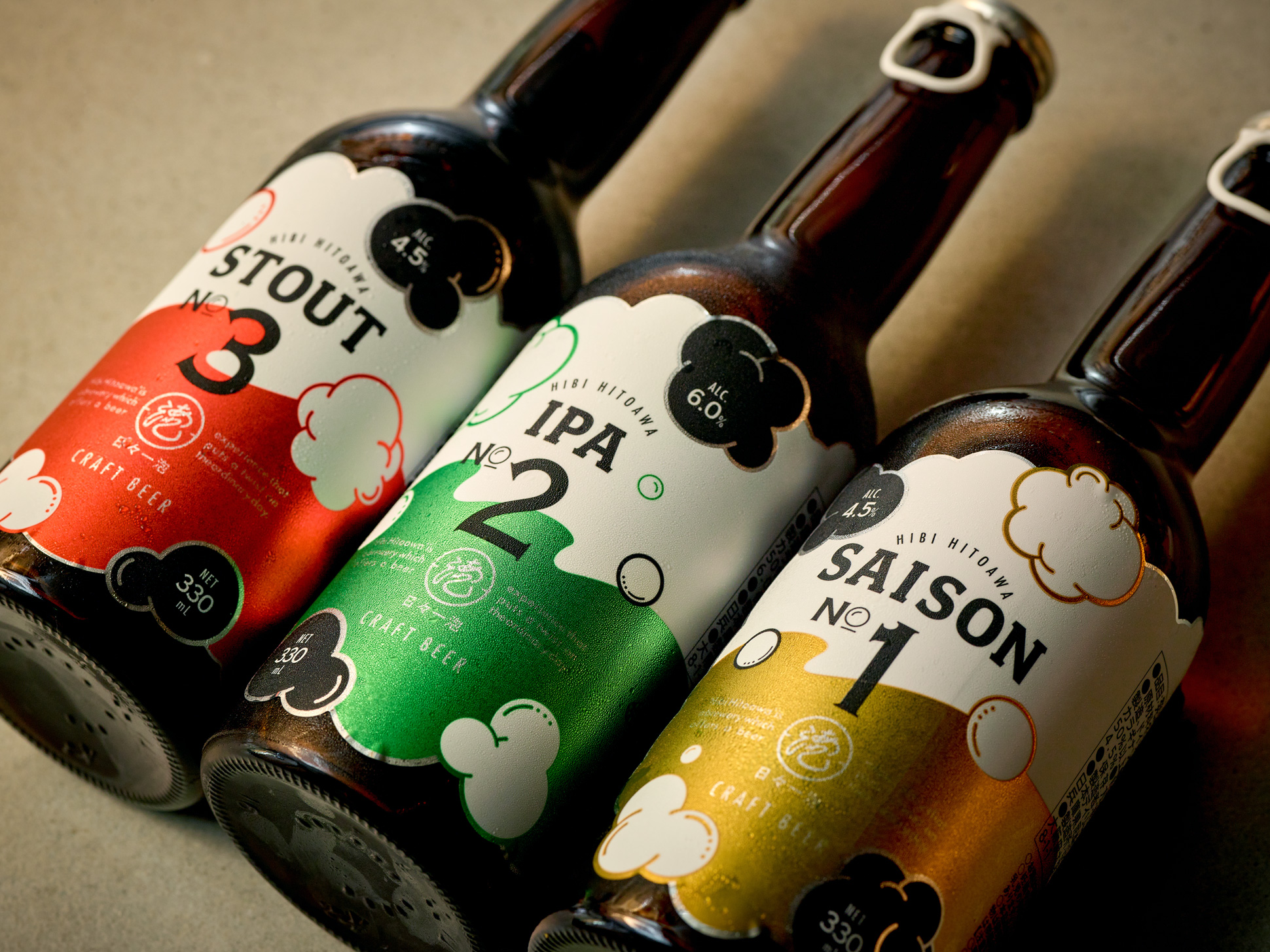 ブランド名は「日々一泡ブルワリー(Hibi Hitoawa Brewery)」「日々(ひび)」と「一泡(ひとあわ)」を掛け合わせ、日常(=日々)そこに起こる変化(=一泡)を言葉の中に内包しました。“ひとあわ吹かせる”という日本語特有のニュアンスを活かし、軽やかさと挑戦心を同時に表現しています。