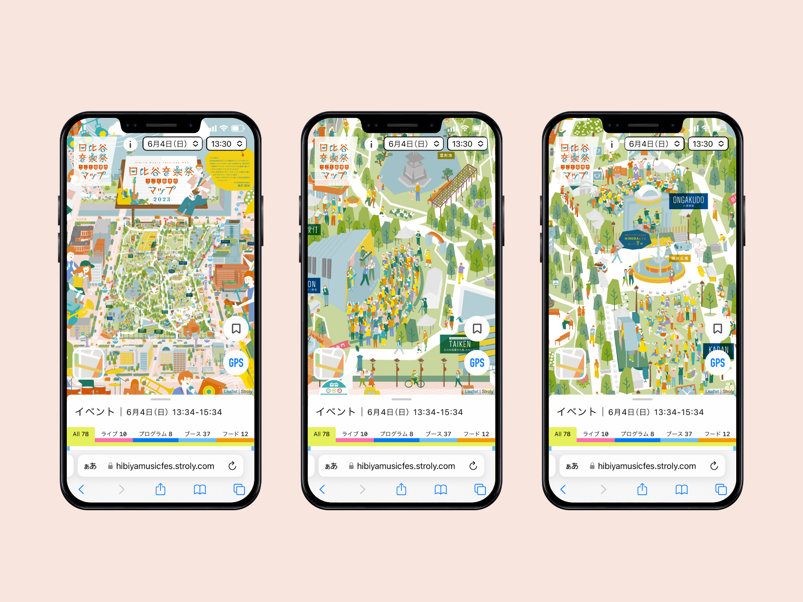 他にも様々な“超便利”機能があるので、会場に行かれた方々はもちろん、会場に行けずライブ配信で音楽祭を楽しまれる方々でも日比谷音楽祭をマップを通して実際に行った気分にさせてもらえる、“超ステキ”なマップになっています。