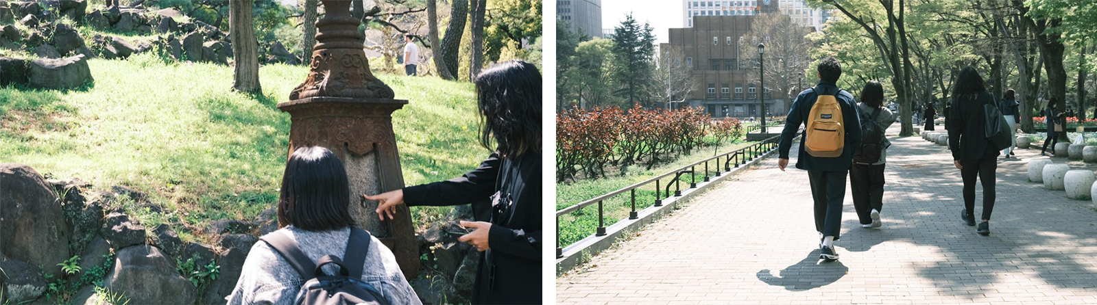 Strolyスタッフさまと音楽祭実行委員のスタッフさま、日比谷公園管理事務所のスタッフさまの案内のもと日比谷公園や周辺イベント会場の視察をさせていただきました。音楽的要素はもちろん、それだけでなく日比谷公園の歴史や展示物、植物などの由来を紐解き、音楽祭を通して日比谷公園のファンになっていただけるような仕掛けができないか、そして、音楽を身近に感じていただけるようになり、日比谷音楽祭を毎年継続して開催できるといった循環を作ることができないか、、、MAPを通して日比谷音楽祭の目的に少しでも貢献できる方法を考えました。