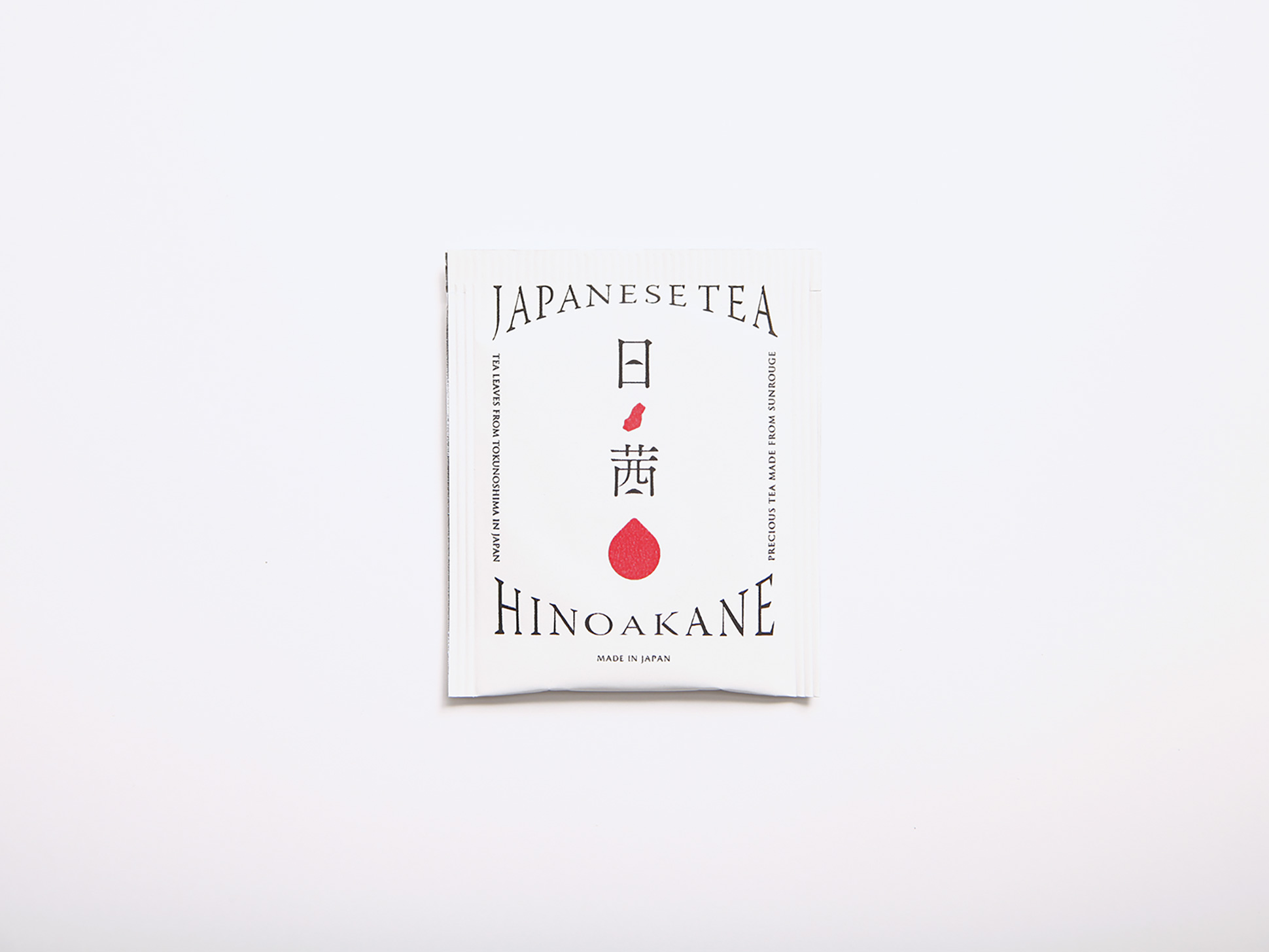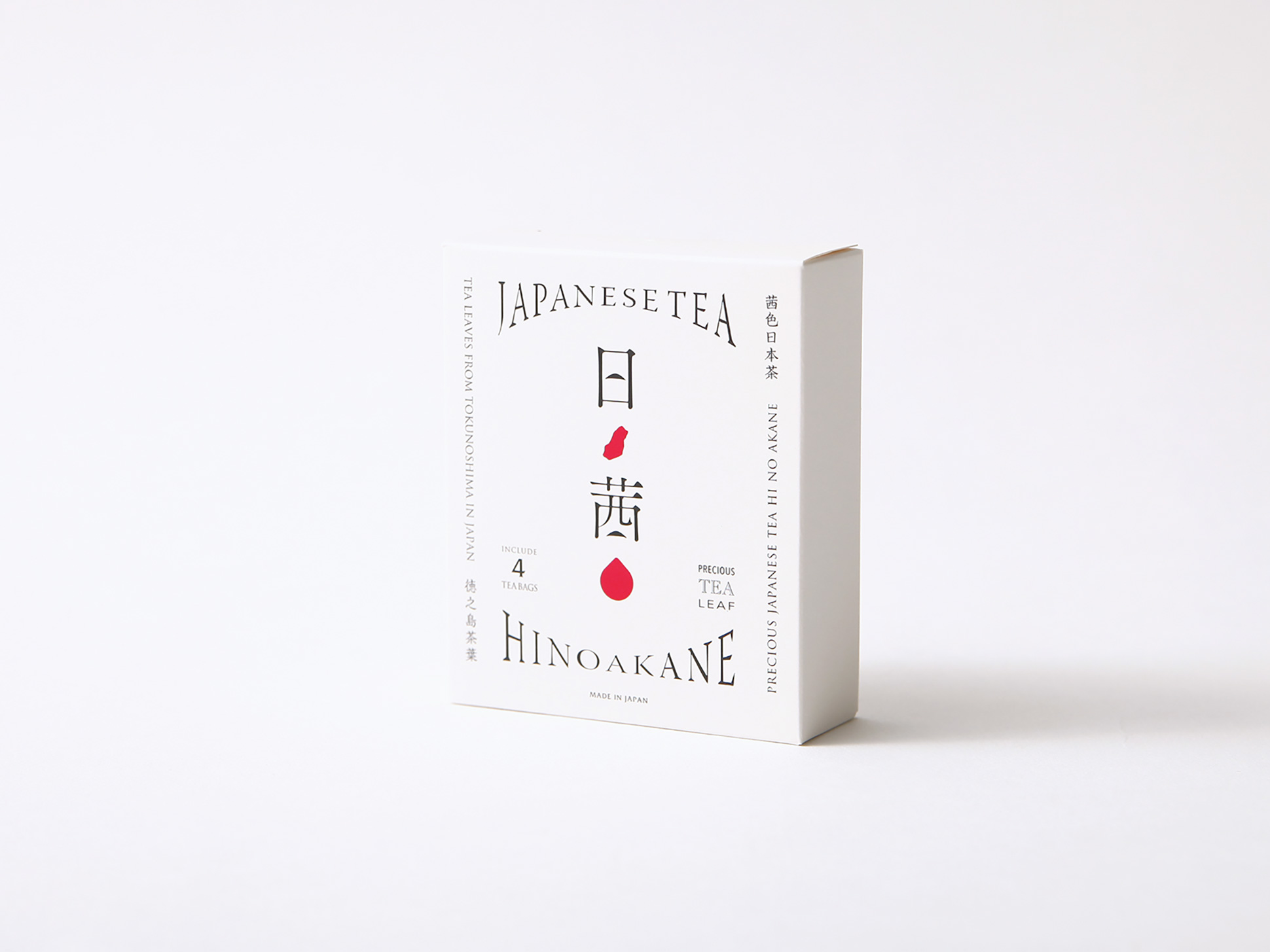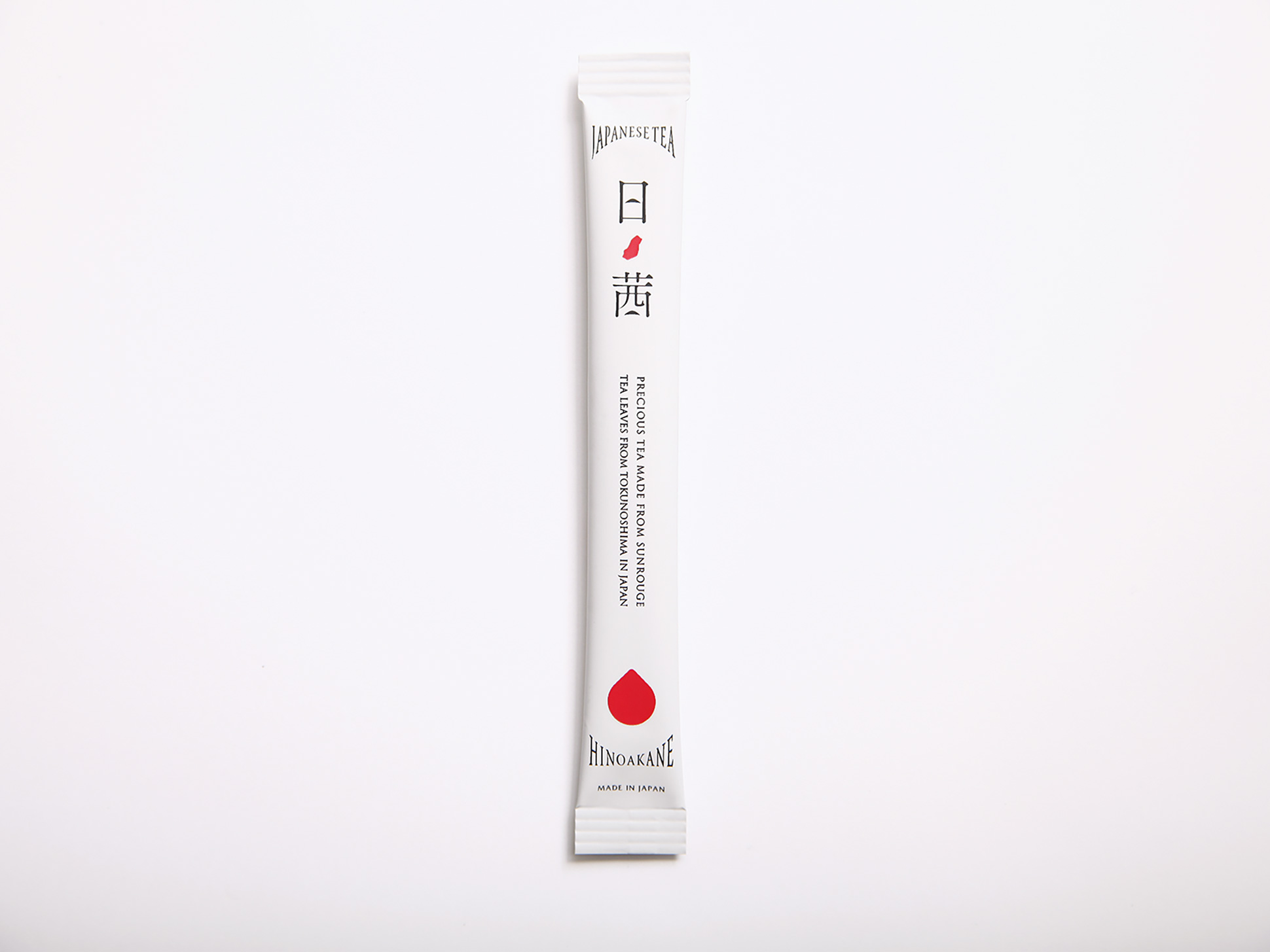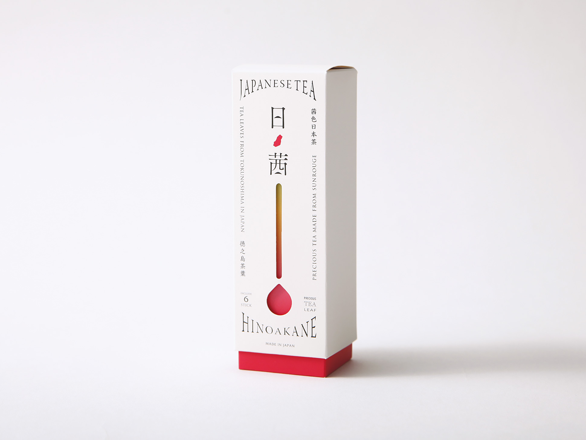 日本の赤いお茶の誕生を象徴する名前として、「日ノ茜(HINO AKANE)」と名付けました。サンルージュが持つ、緑から赤へと移ろう神秘的な色の変化。その美しさを、徳之島の夕焼けの海と島の緑に重ね、繊細なグラデーションで表現しました。 外箱には、お茶の雫と日の丸を掛け合わせたスリット形状を採用。箱を引き上げると景色がスライドし、夕景のように色が移ろいます。飲む前から体験が始まる構造設計です。 ブランド名に含まれる「ノ」の文字には、産地・徳之島の造形を重ねました。純日本産の希少な茶葉であることを、ネーミングとビジュアルの両面から訴求しています。 素材にはノーコート紙を使用し、過度な装飾を排した誠実な質感に仕上げました。日本の赤を世界へ届けるための、ストーリー性と体験価値を備えたパッケージデザインです。