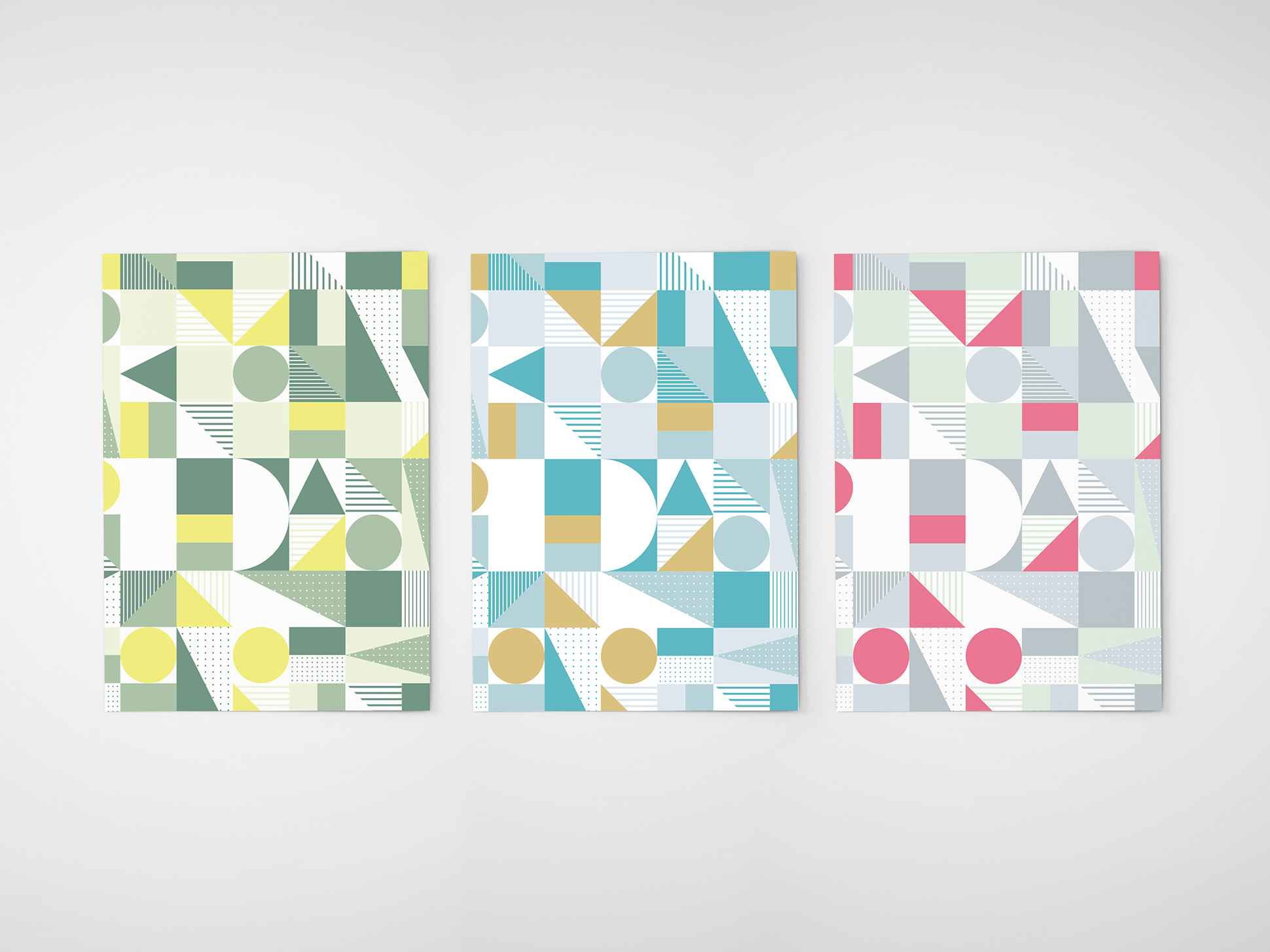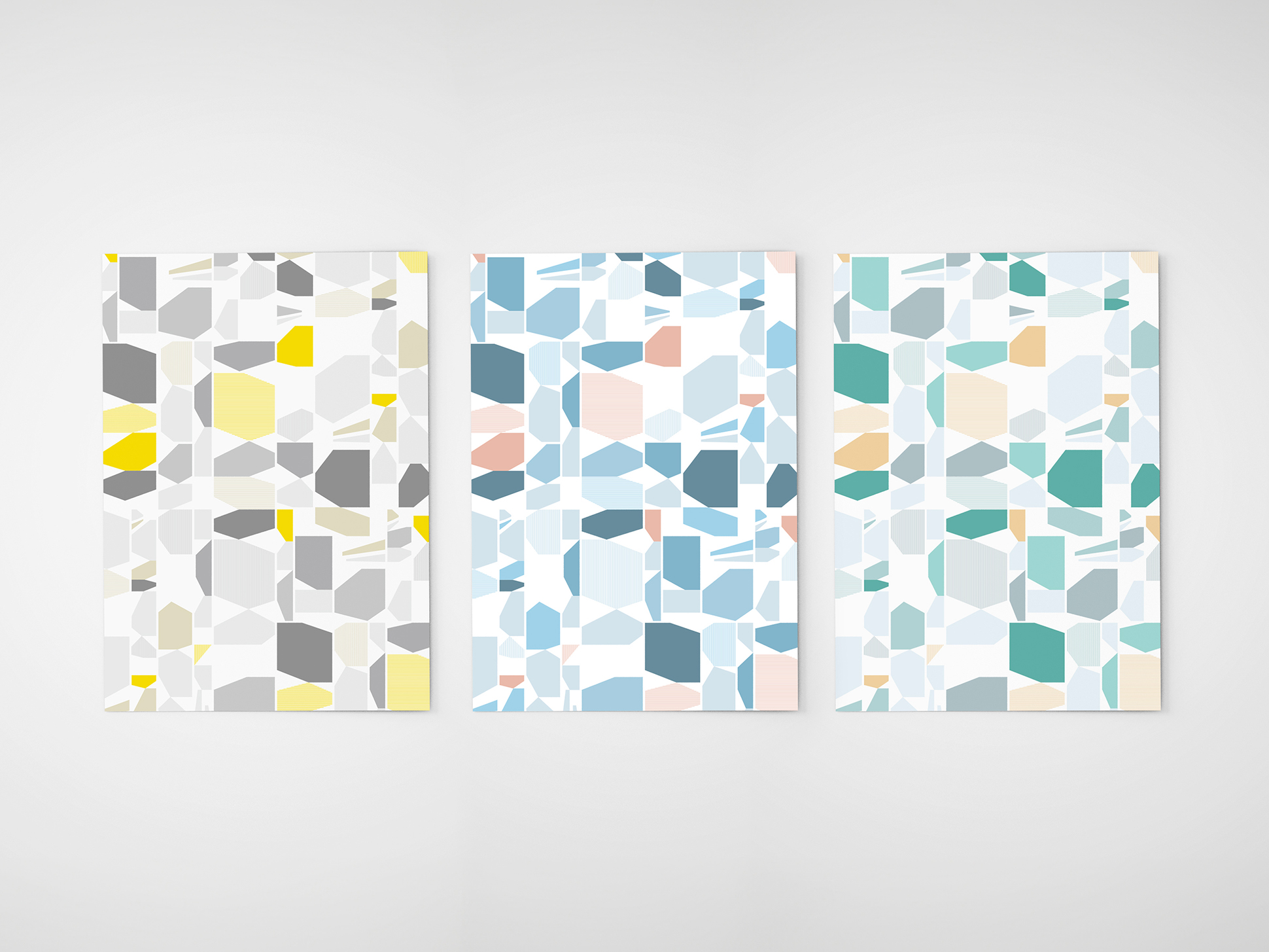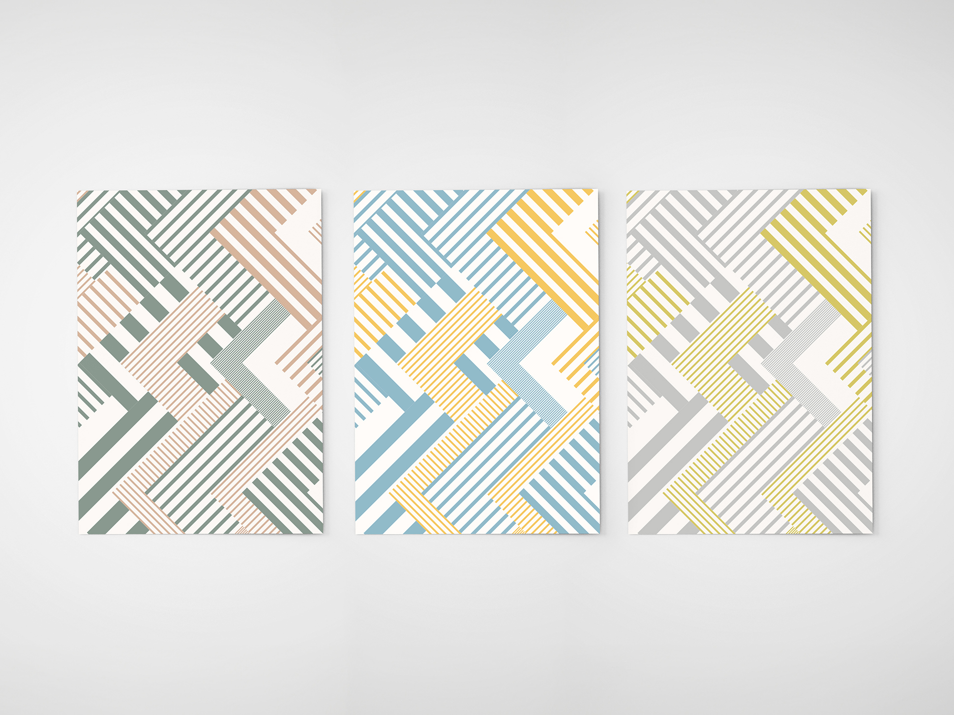 シンプルなストライプをベースに、モザイク調の構成で強弱をつけ、