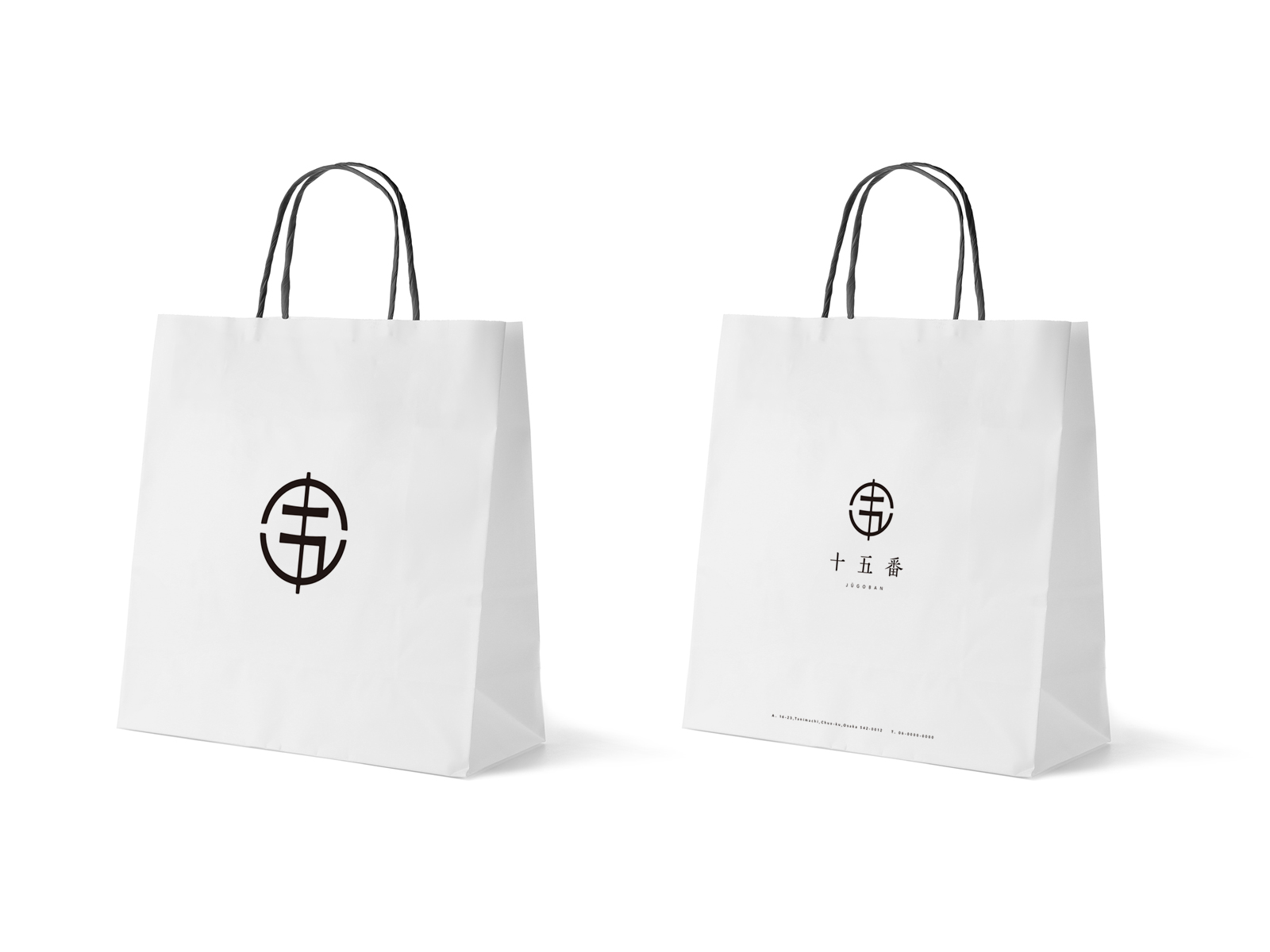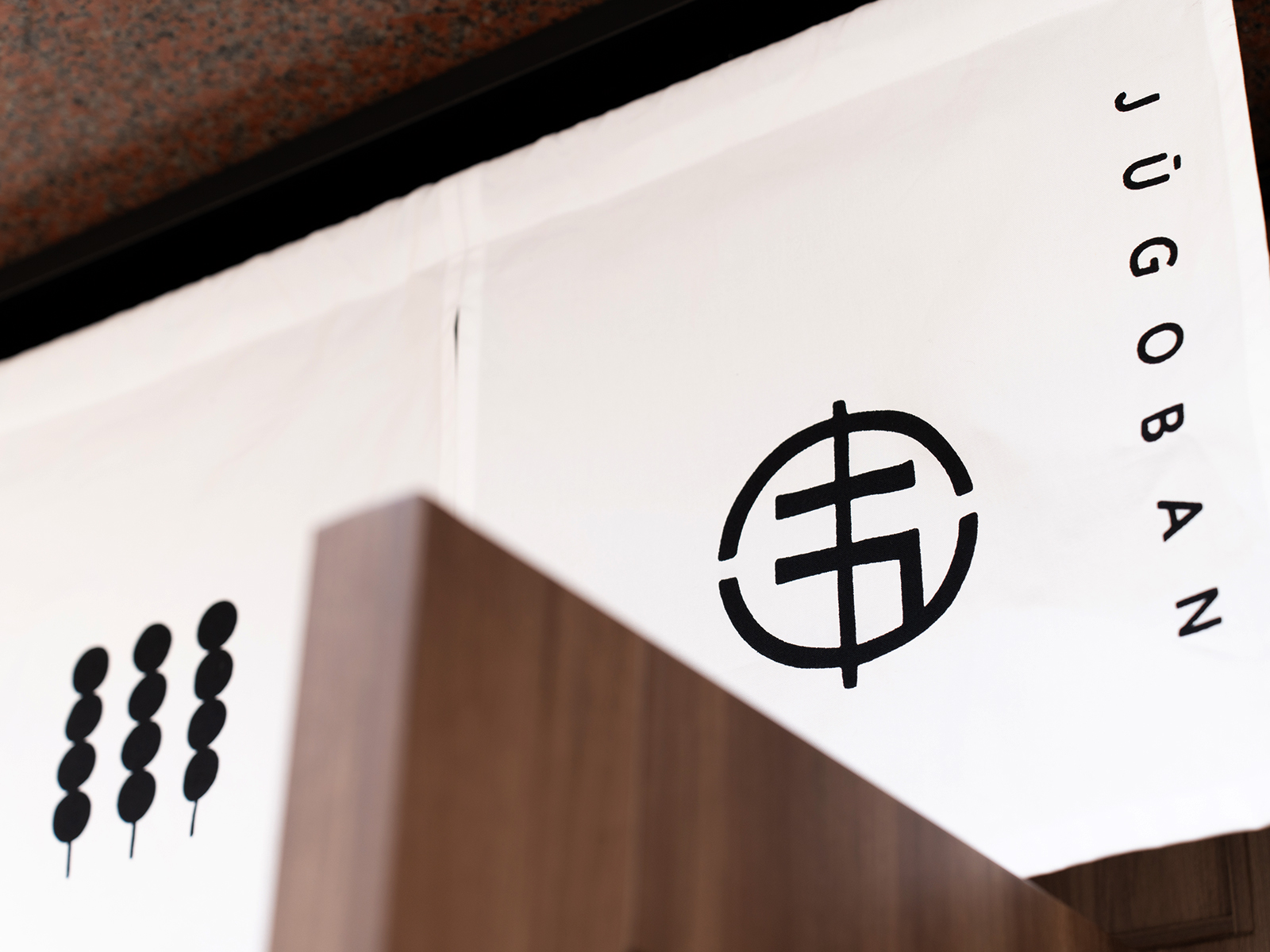 ロゴマークは「十」と「五」を掛け合わせ、串に刺さった団子をモチーフに構成しました。文字そのものを記号化することで、店名と商品が直感的に結びつくデザインとしています。