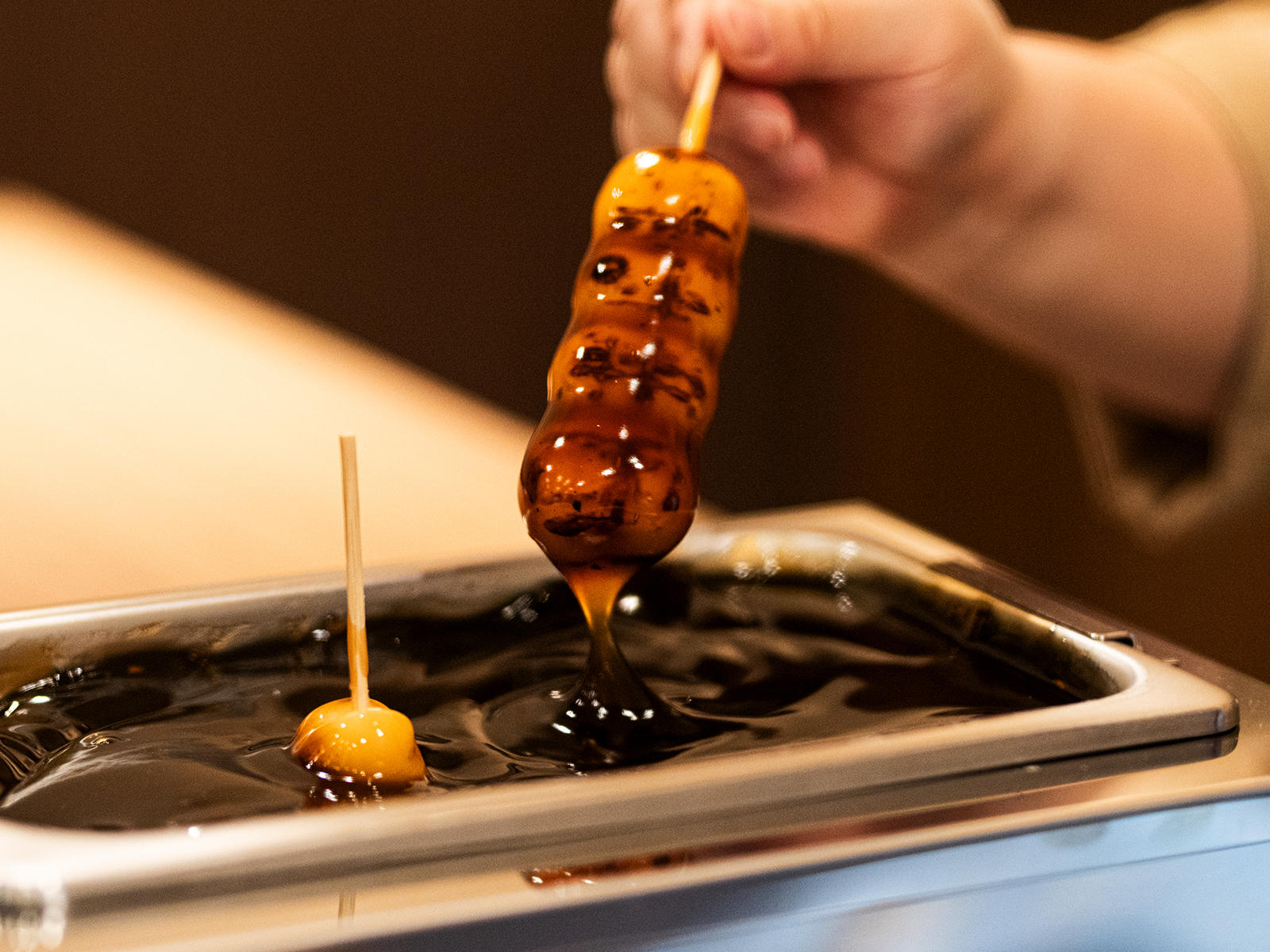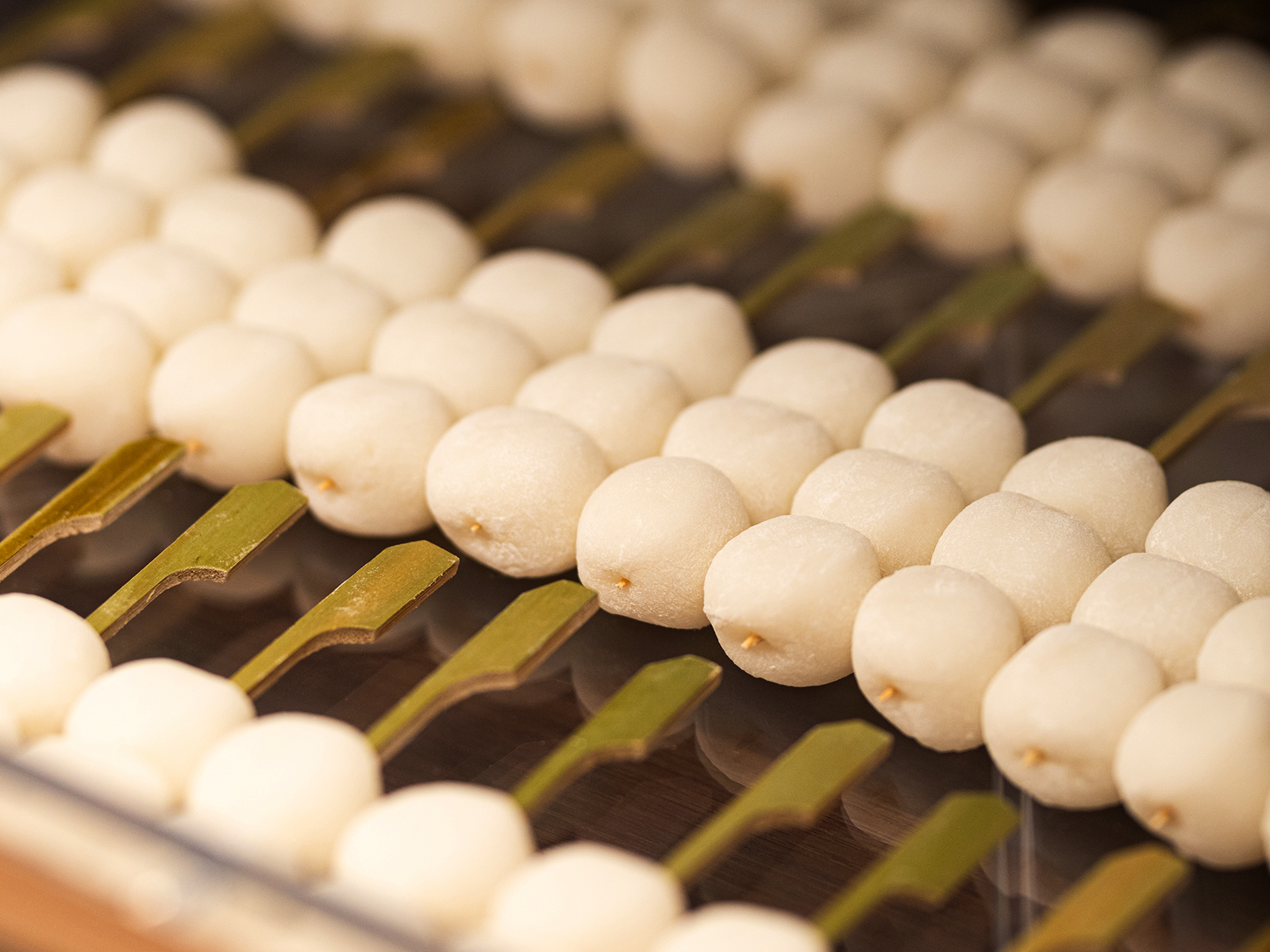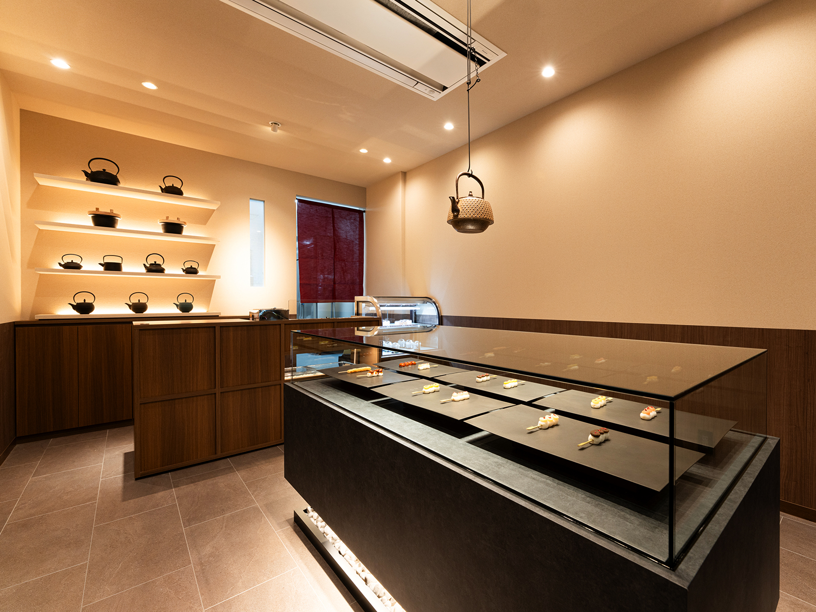 温もりある木素材と深みのある色彩のコントラストによって、団子屋としての親しみやすさと、どこか凛とした佇まいを両立させています。