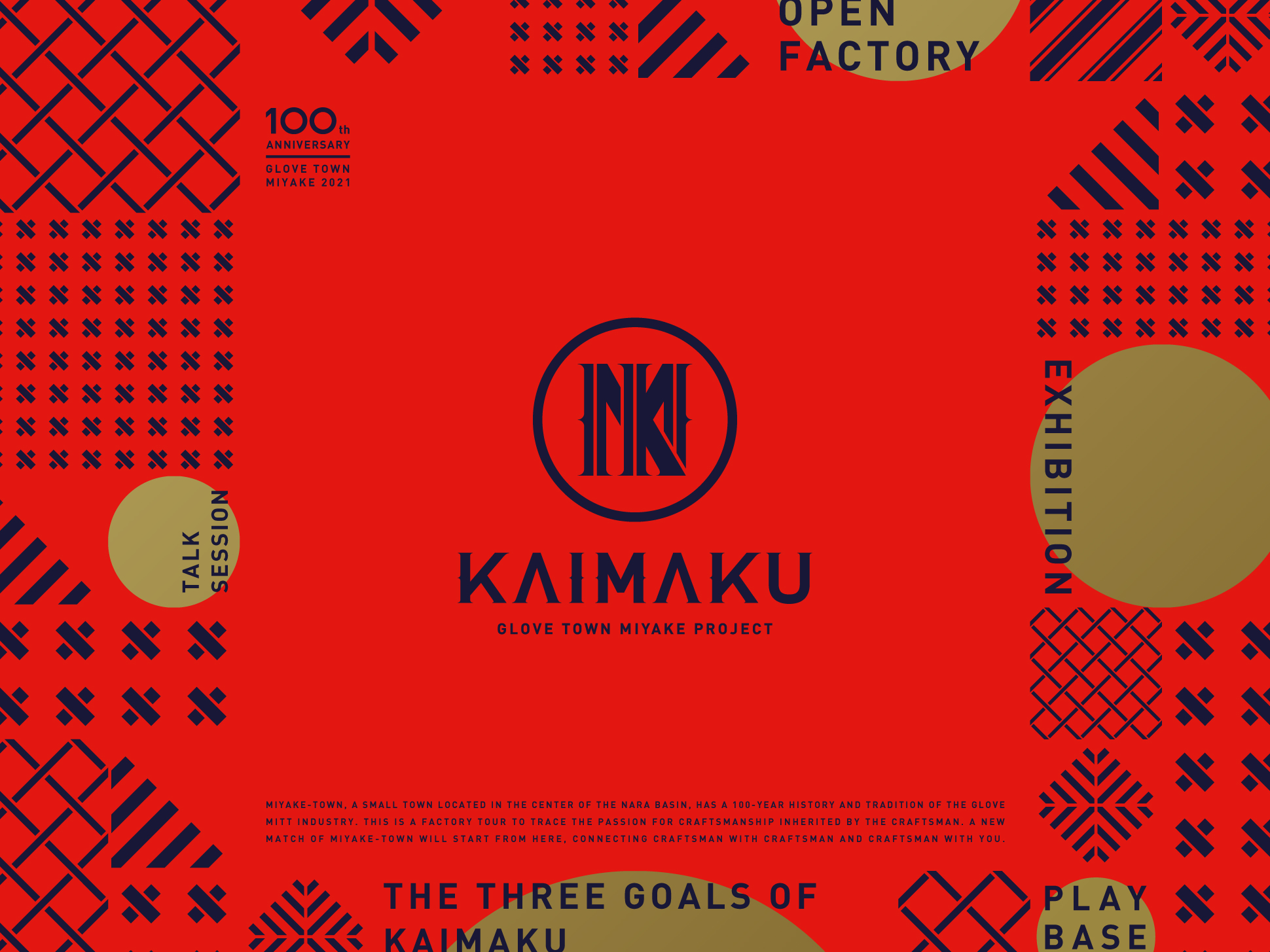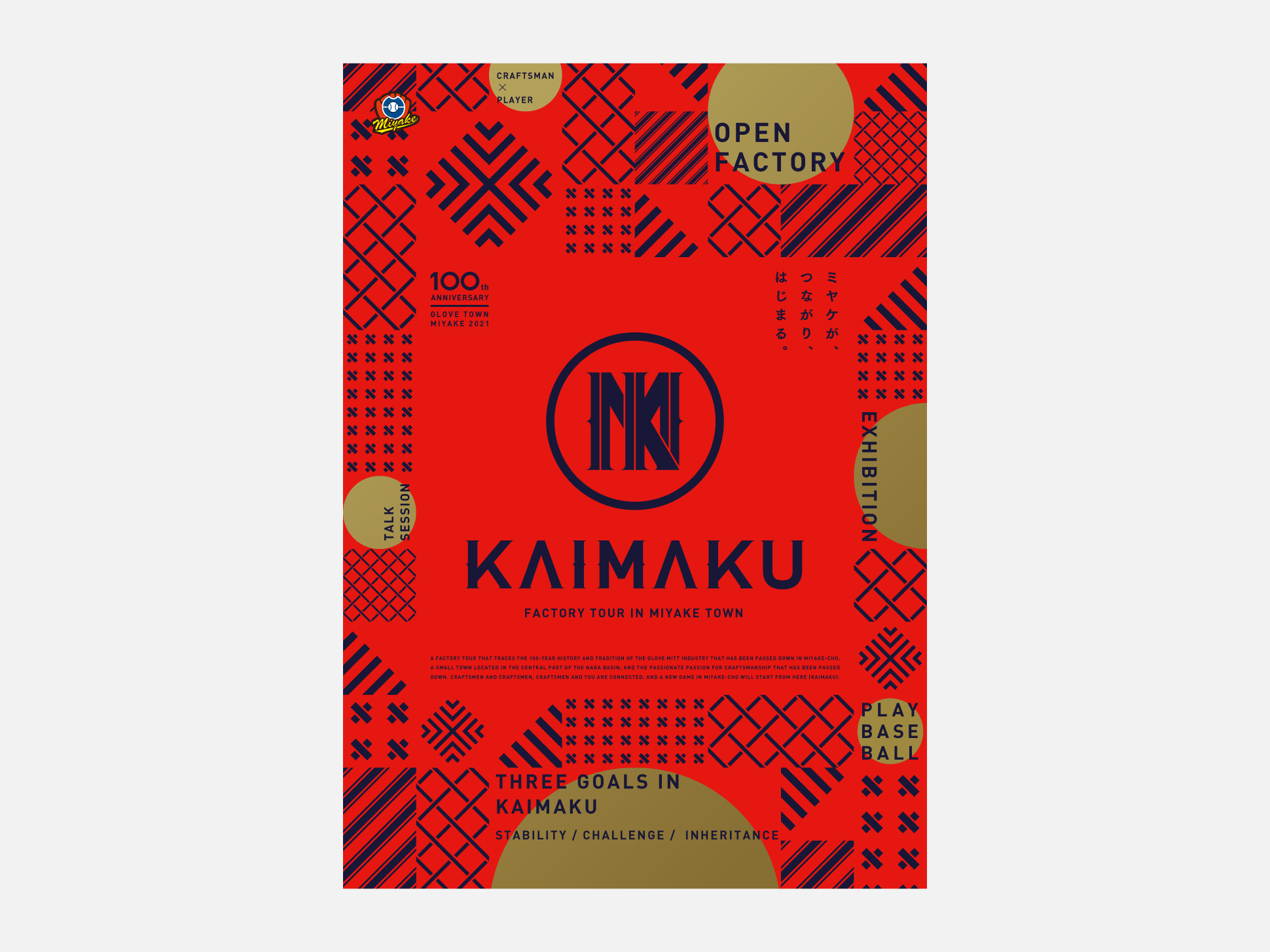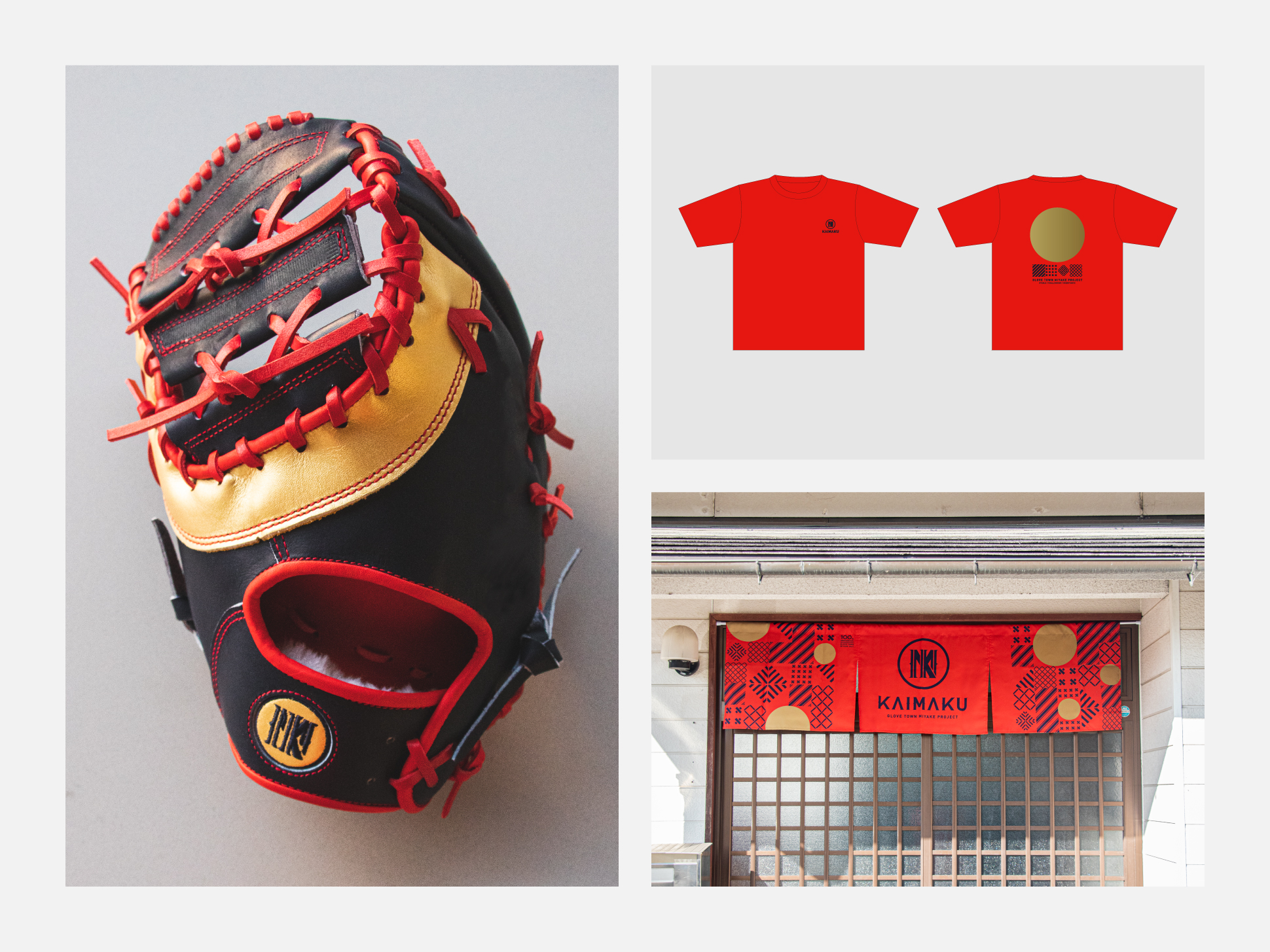 事業名は三宅町の新たな挑戦、クローズされていたグローブ・ミット産業がたくさんの方に向けて開いていく姿と掛け合わせ、野球の試合開始をつげる「KAIMAKU(開幕)」とネーミング。
