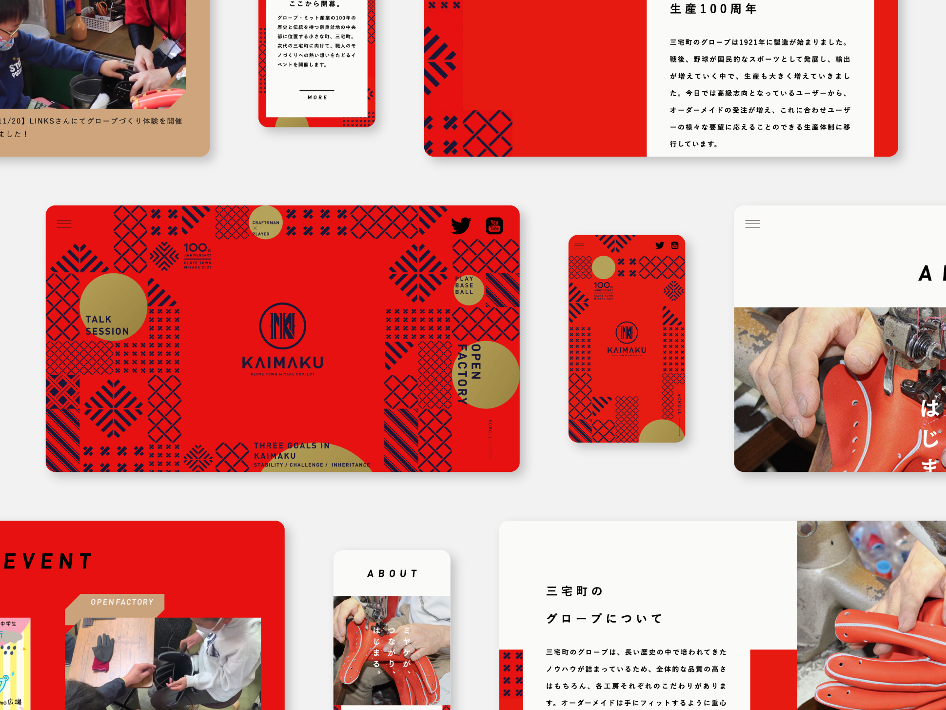 石グローブ・ミット産業の100年の歴史と伝統を持つ奈良盆地の中央部に位置する小さな町、三宅町。次代の三宅町に向けて、職人のモノづくりへの熱い想いをたどる発信事業を、コミュニティデザインカンパニーのstudio-L様とセメントプロデュースデザインの共同主催のもと、企画・デザインを担当しました。