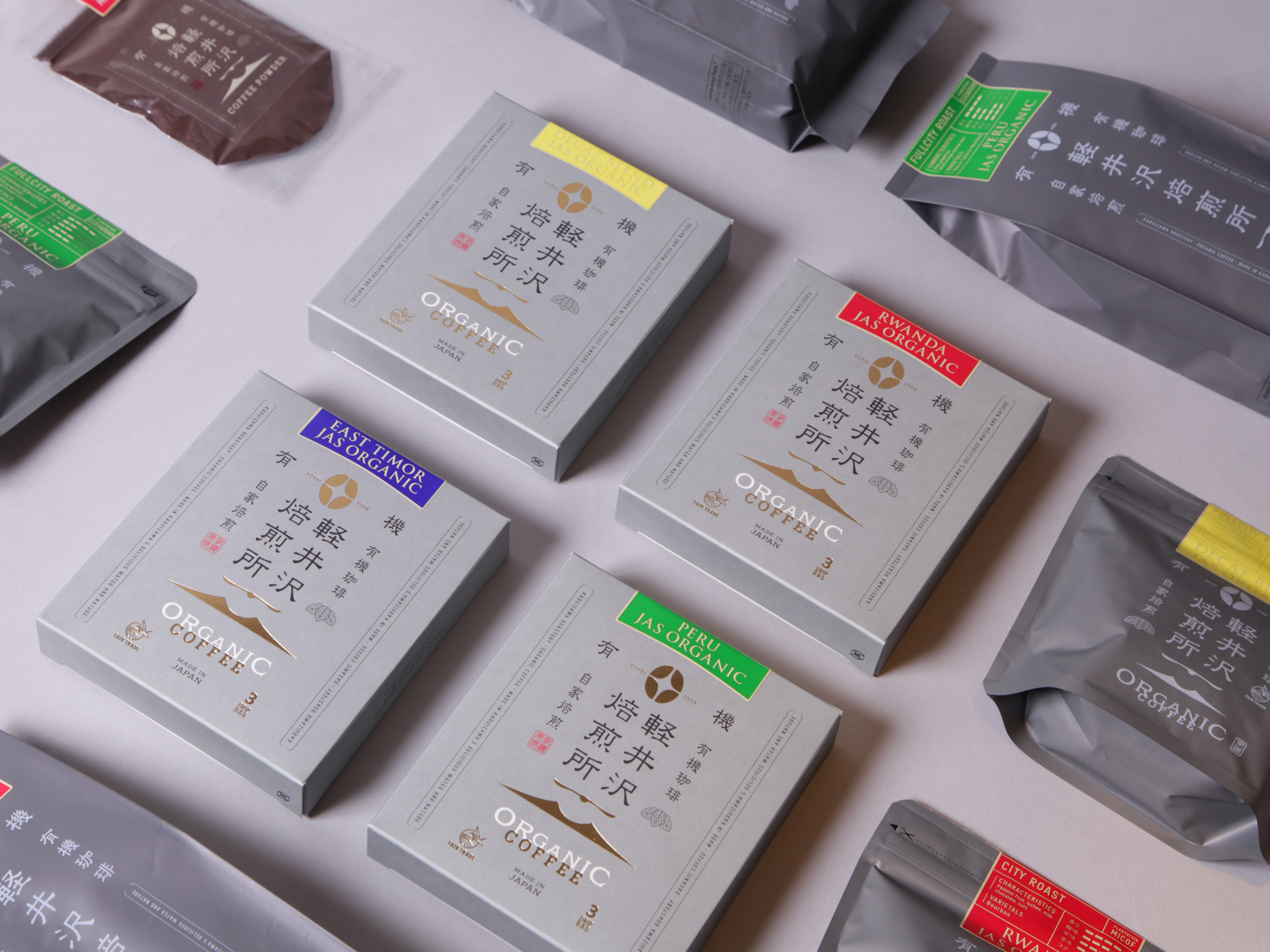 軽井沢焙煎所のオーガニックコーヒーは、「何を語るか」だけでなく、「どう佇むか」までを大切にして生まれました。有機という確かな品質、軽井沢という土地性、そして日々の暮らしに静かに寄り添う存在であること。それらを、過度な装飾や説明に頼らず、文字の配置、余白、素材感といったデザインの要素で丁寧に伝えています。ドリップバッグは日常に寄り添う一杯として、コーヒー豆は素材そのものを味わう存在として、コーヒーパウダーは“飲む”を超えた素材として。それぞれ形は違っても、根底にある考え方は同じです。軽井沢の澄んだ空気のように、静かで、誠実で、長く付き合えるオーガニックコーヒーを。軽井沢焙煎所は、そんな時間をこれからも届けていきます。