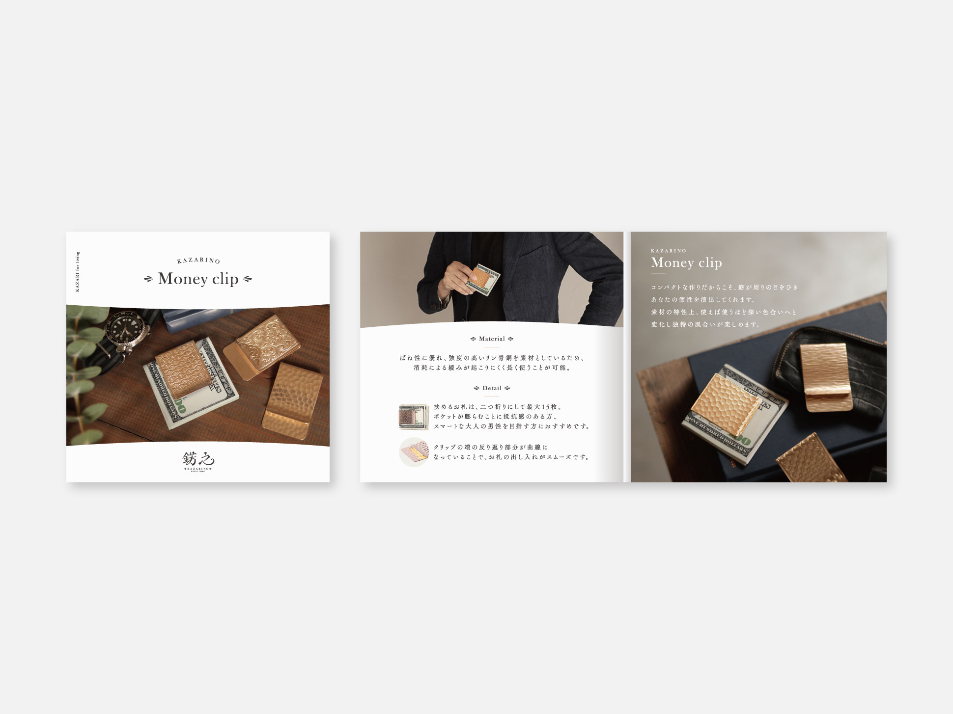 リーフレットも写真の撮影から担当させていただき、金属の風合いと上質さが伝わるようデザインしました。