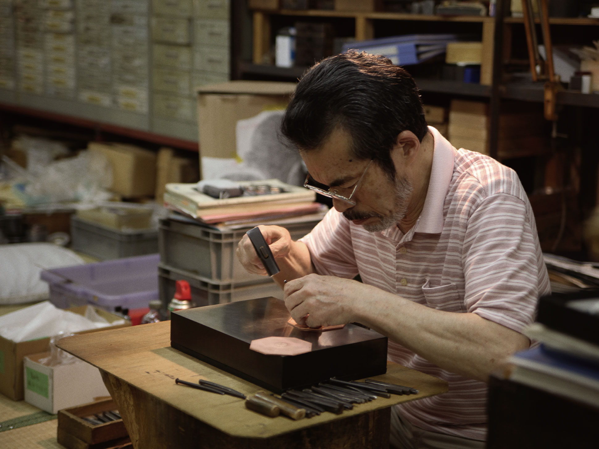 長年の経験を持つ職人の手仕事と機械技術を組み合わせることで、手彫りのような自然で温かい風合いを大切にしながら、安定した品質の製品をお届けしています。