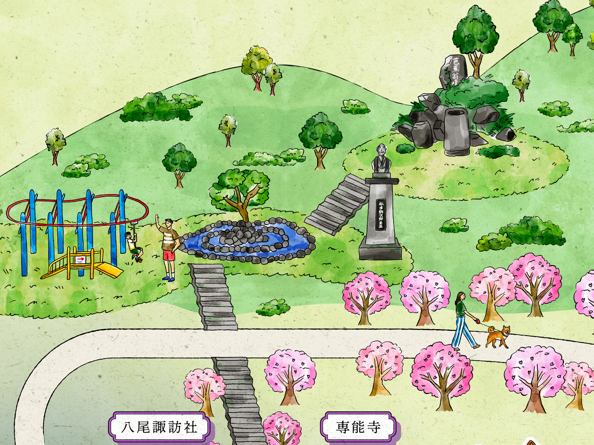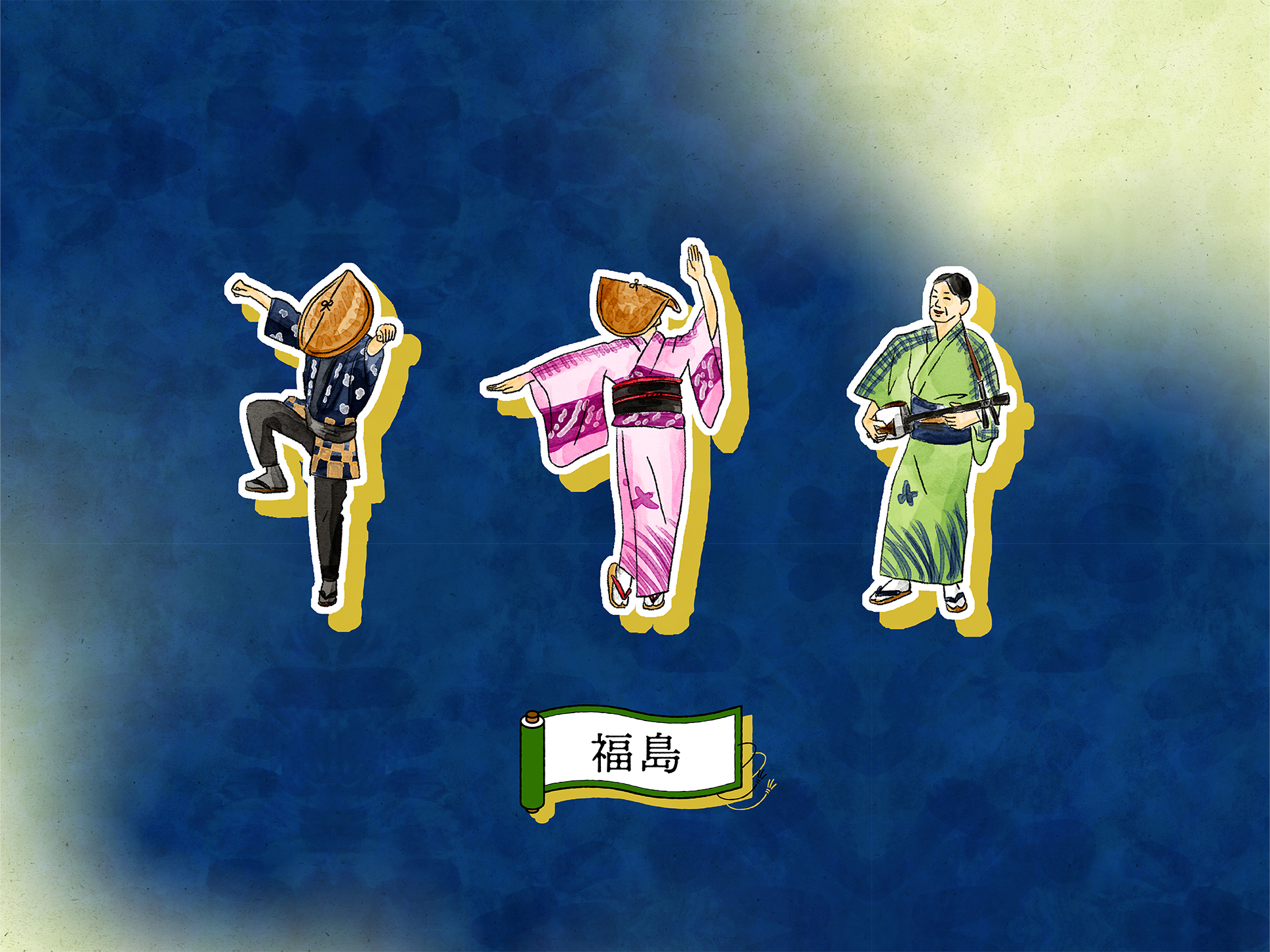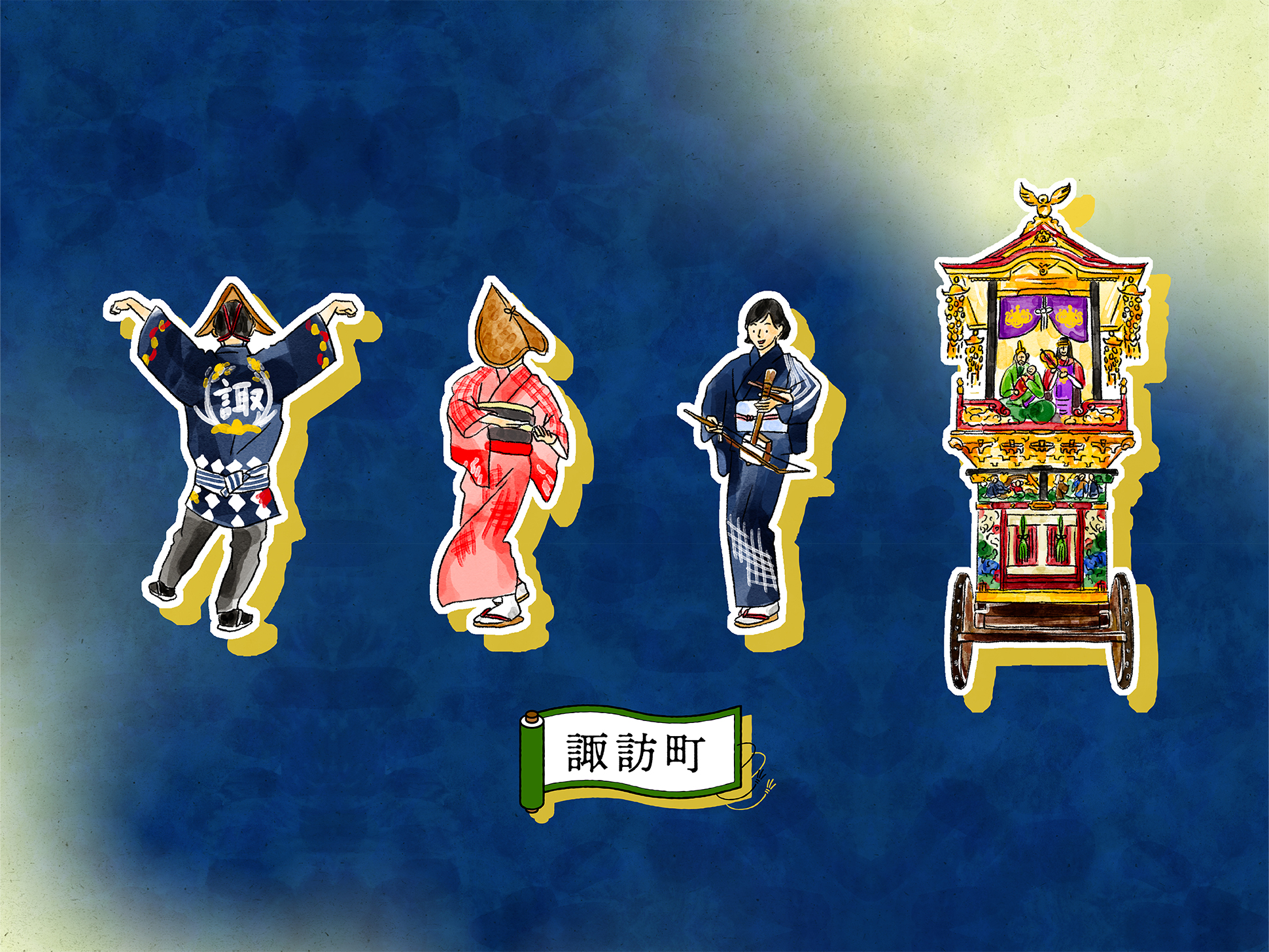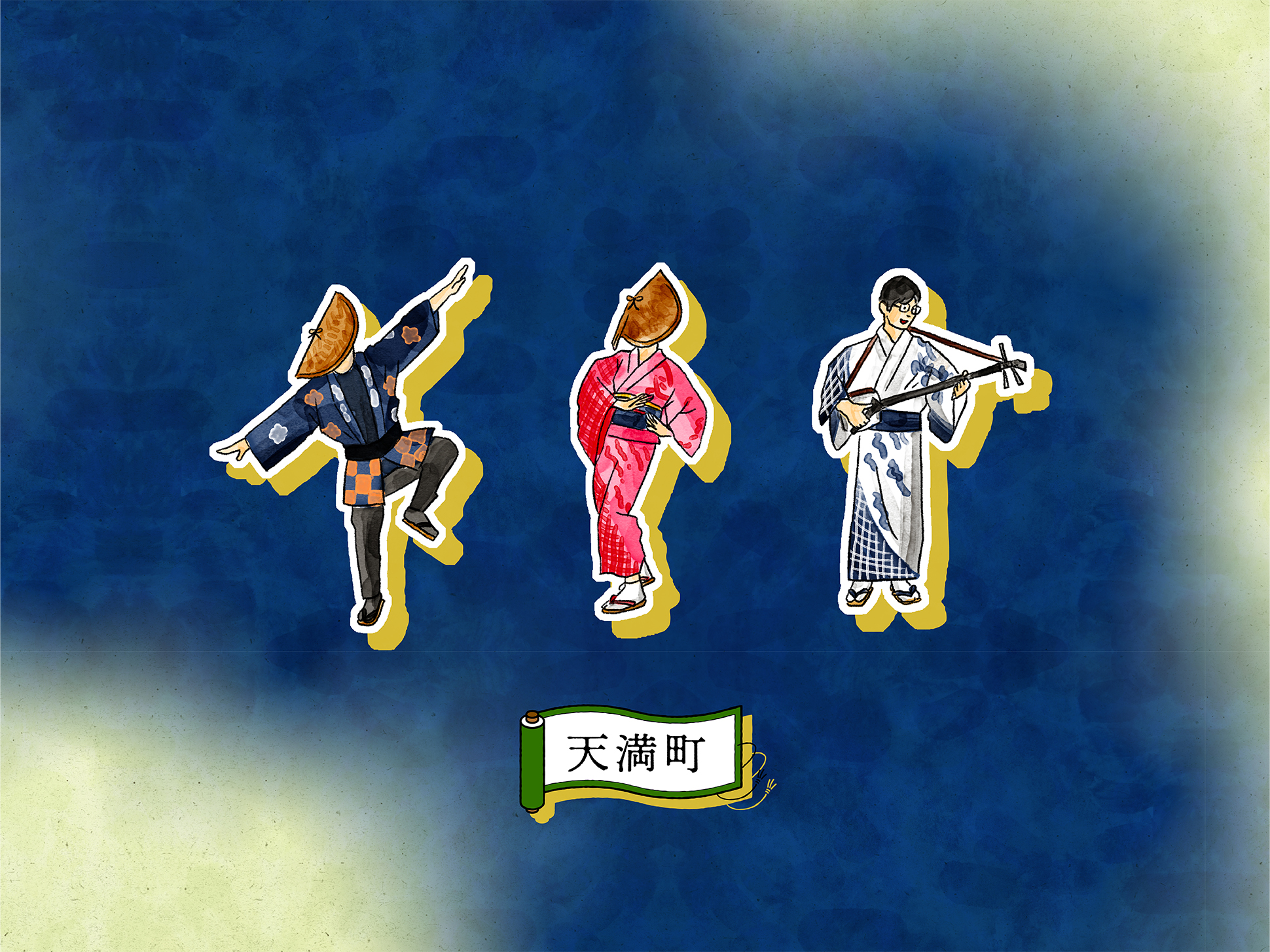 石畳の道や町家の佇まい、踊り手の所作を丁寧に描くことで、単なる地図ではなく、風景そのものを感じられるビジュアルへと昇華しています。