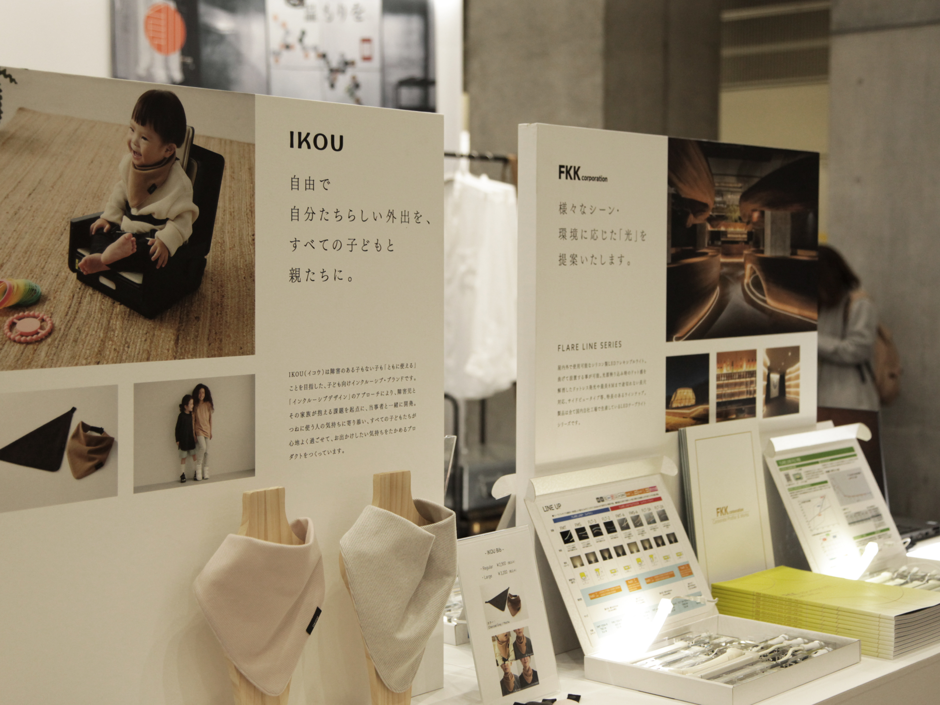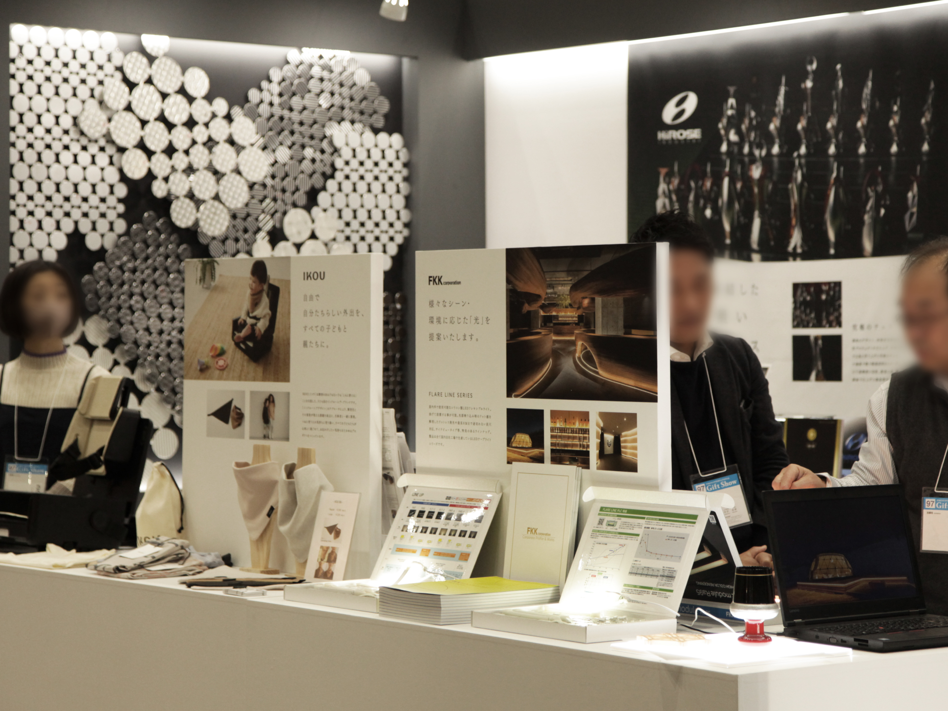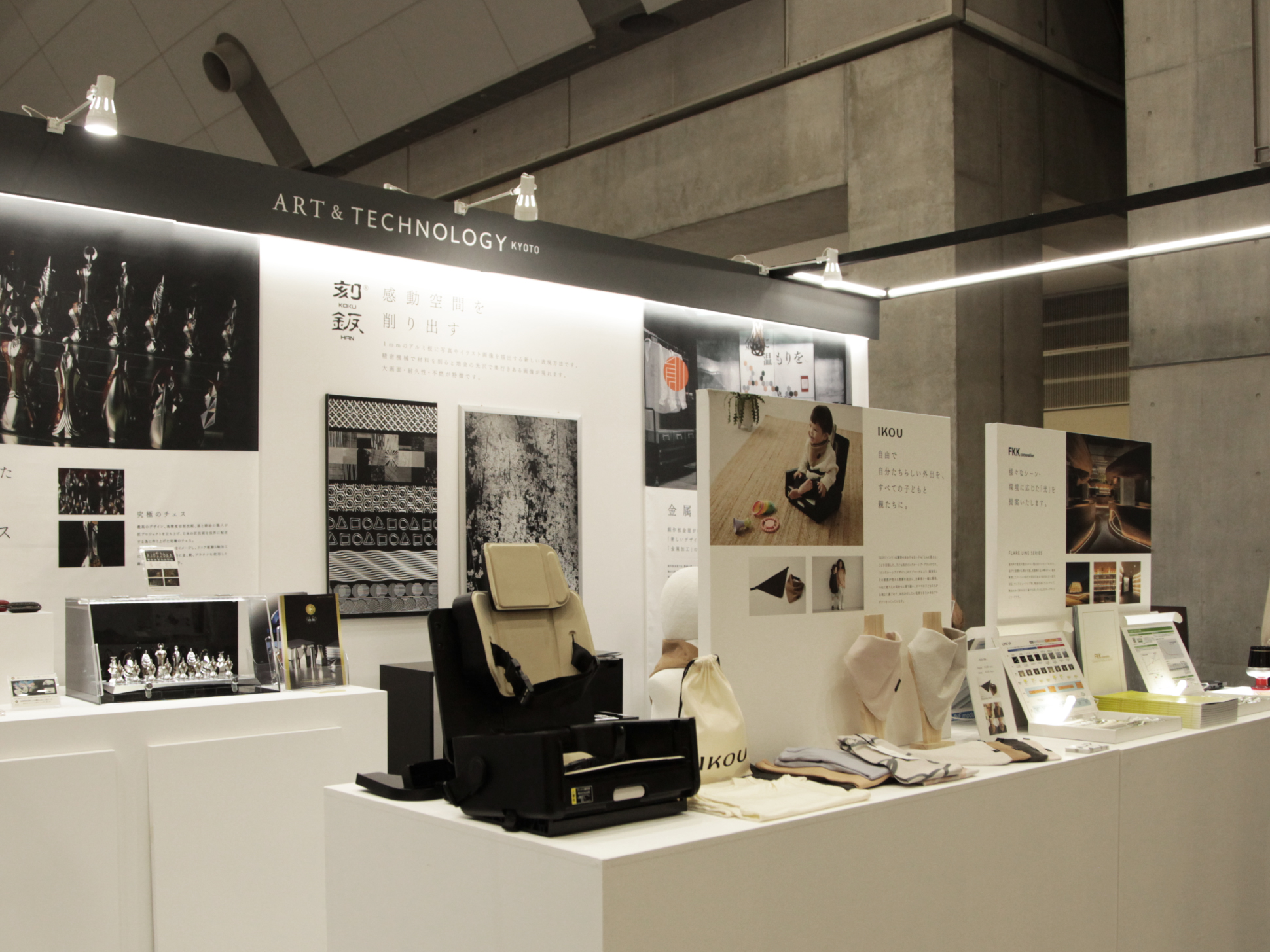 ブース全体を照らす、照明はFKK(株)様のLEDを使用し、展示商品をより魅力的に演出しております。