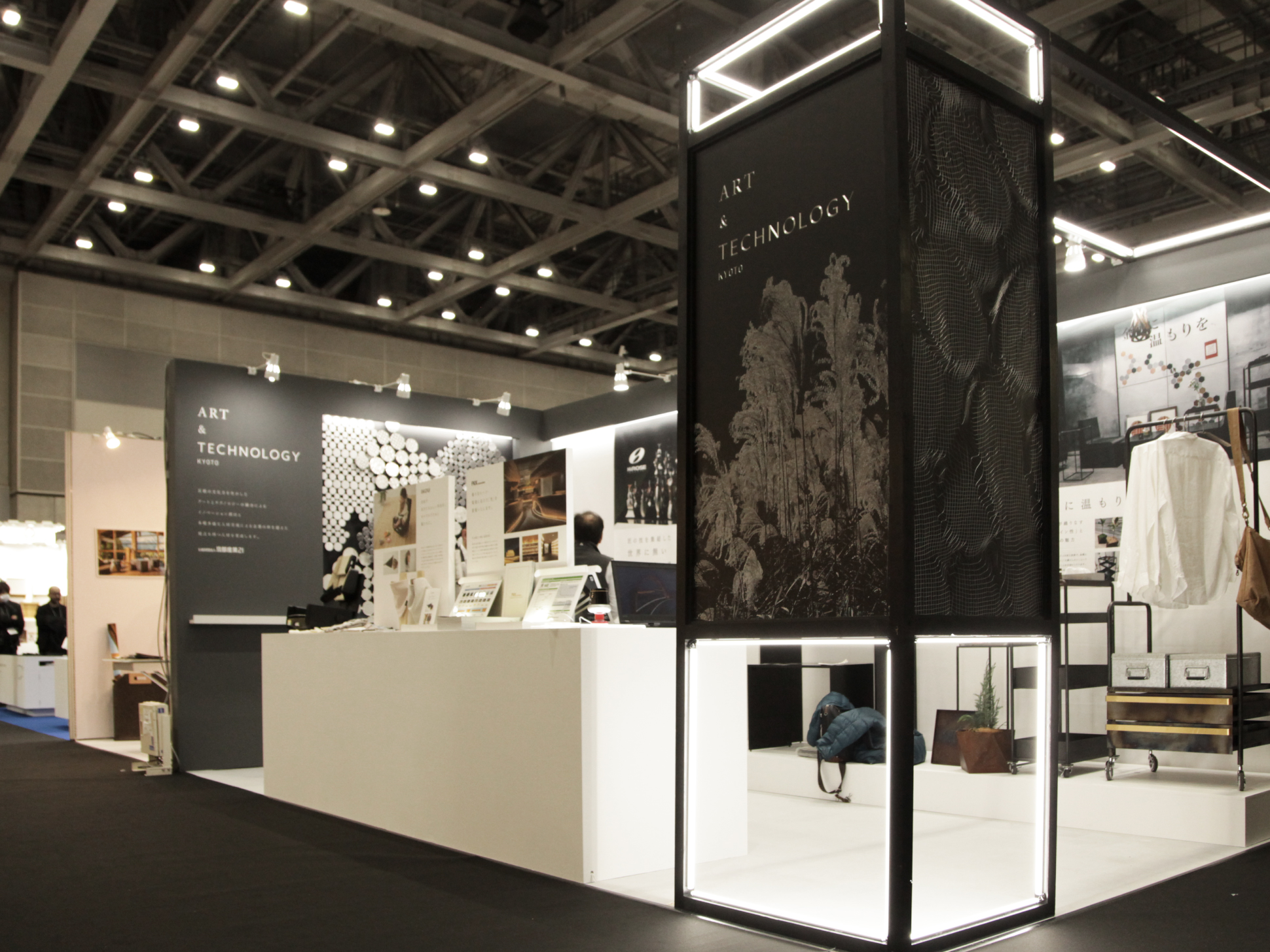 公益財団法人京都産業21様「東京インターナショナルギフトショー 春2024」ブースのデザインを担当させていただきました。京都にある5社が出展する合同ブースです。コンセプトは『京都の文化力を生かしたアートとテクノロジーの融合によるイノベーション創出。”ART&TECHNOLOGY KYOTO”』。出展企業様のお力もお借りしブースデザインを行いました。
