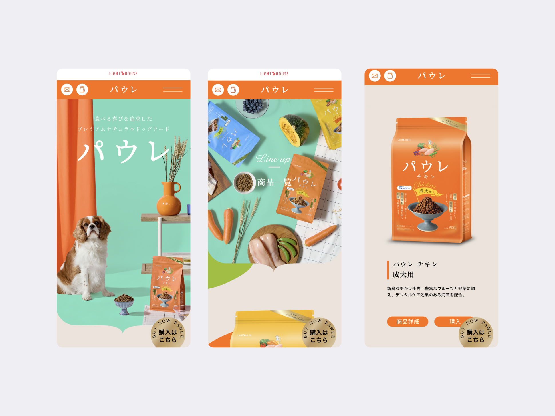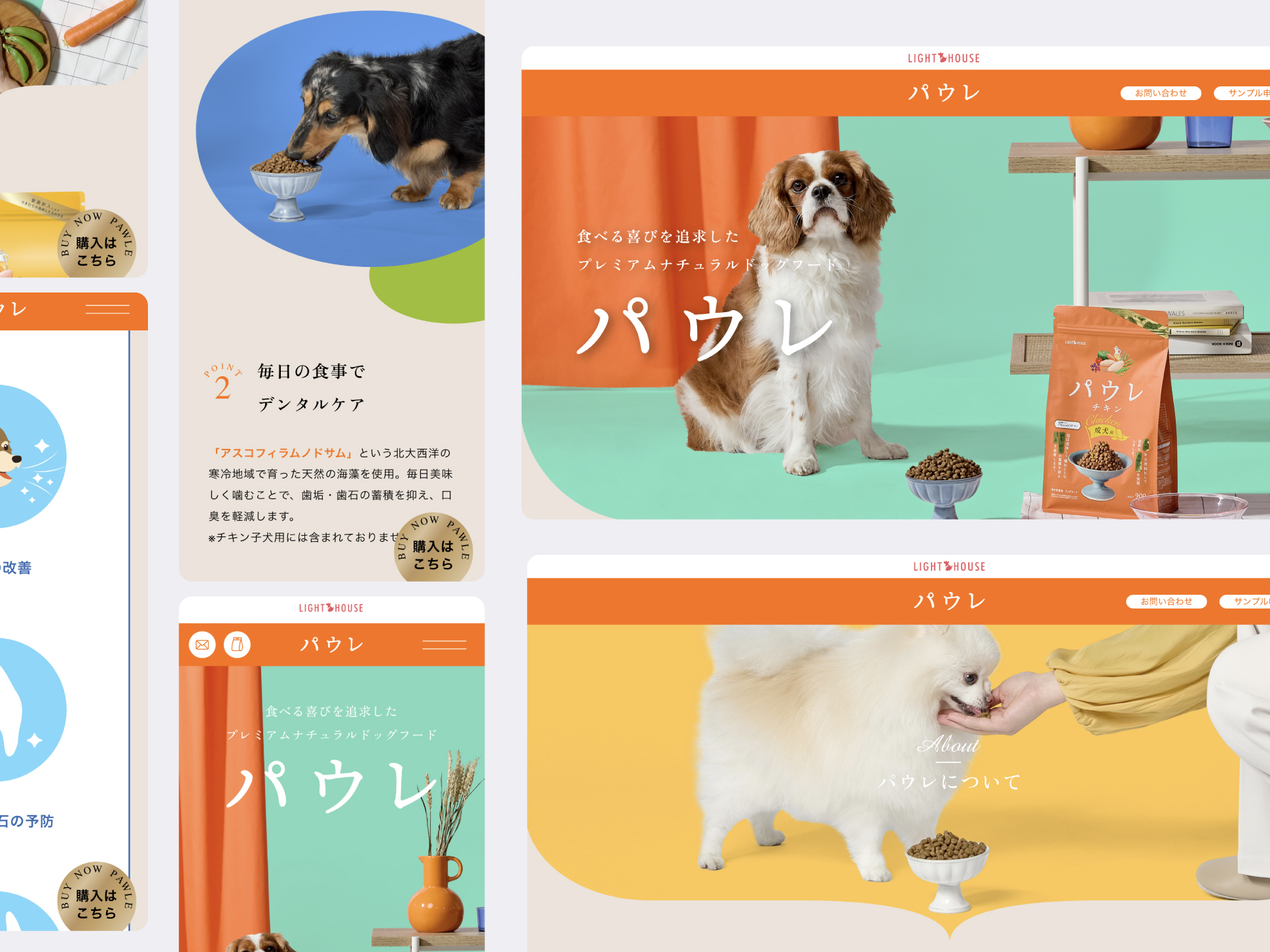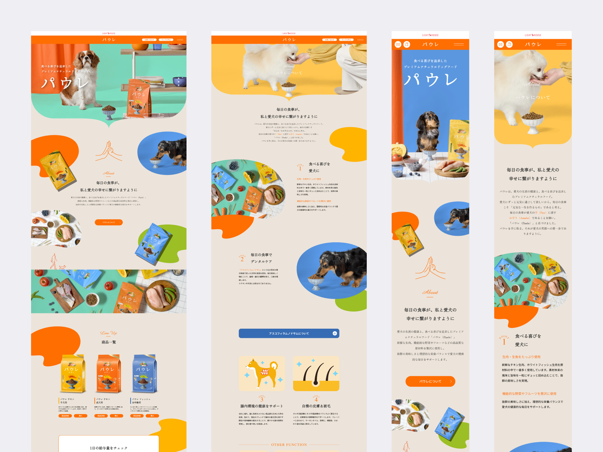 ライトハウス様が製造・販売をおこなうプレミアムナチュラルドッグフード”パウレ”のブランドサイトデザインも担当させていただきました。
