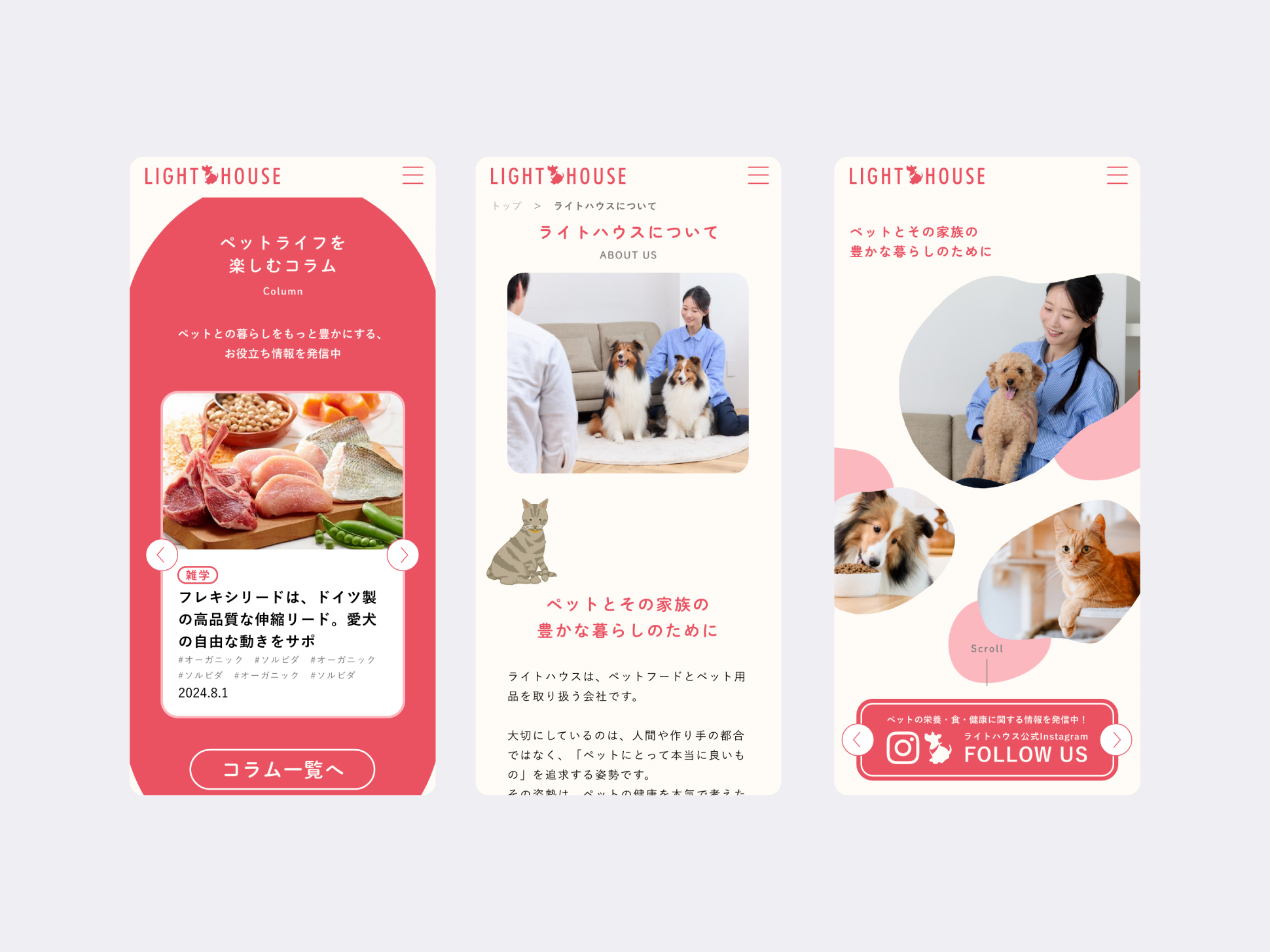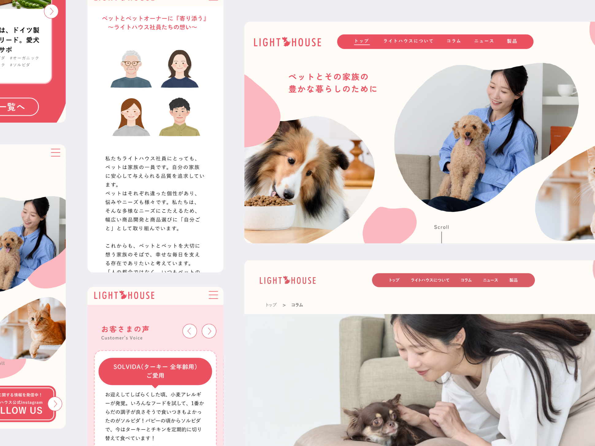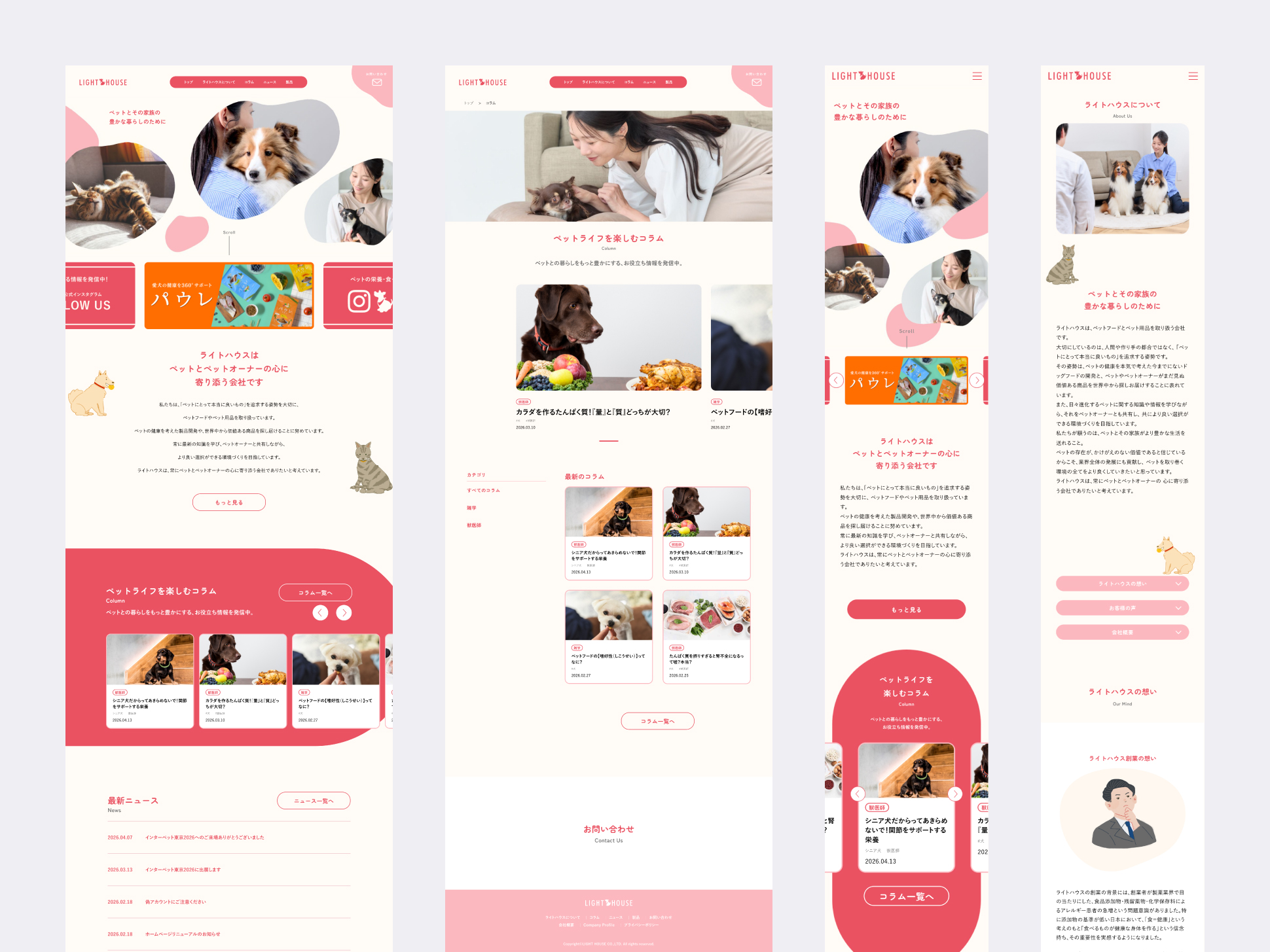 ペットフードとペット用品を取り扱う株式会社ライトハウス様のコーポレートサイトおよびブランドサイトのデザイン、キービジュアル制作を担当いたしました。