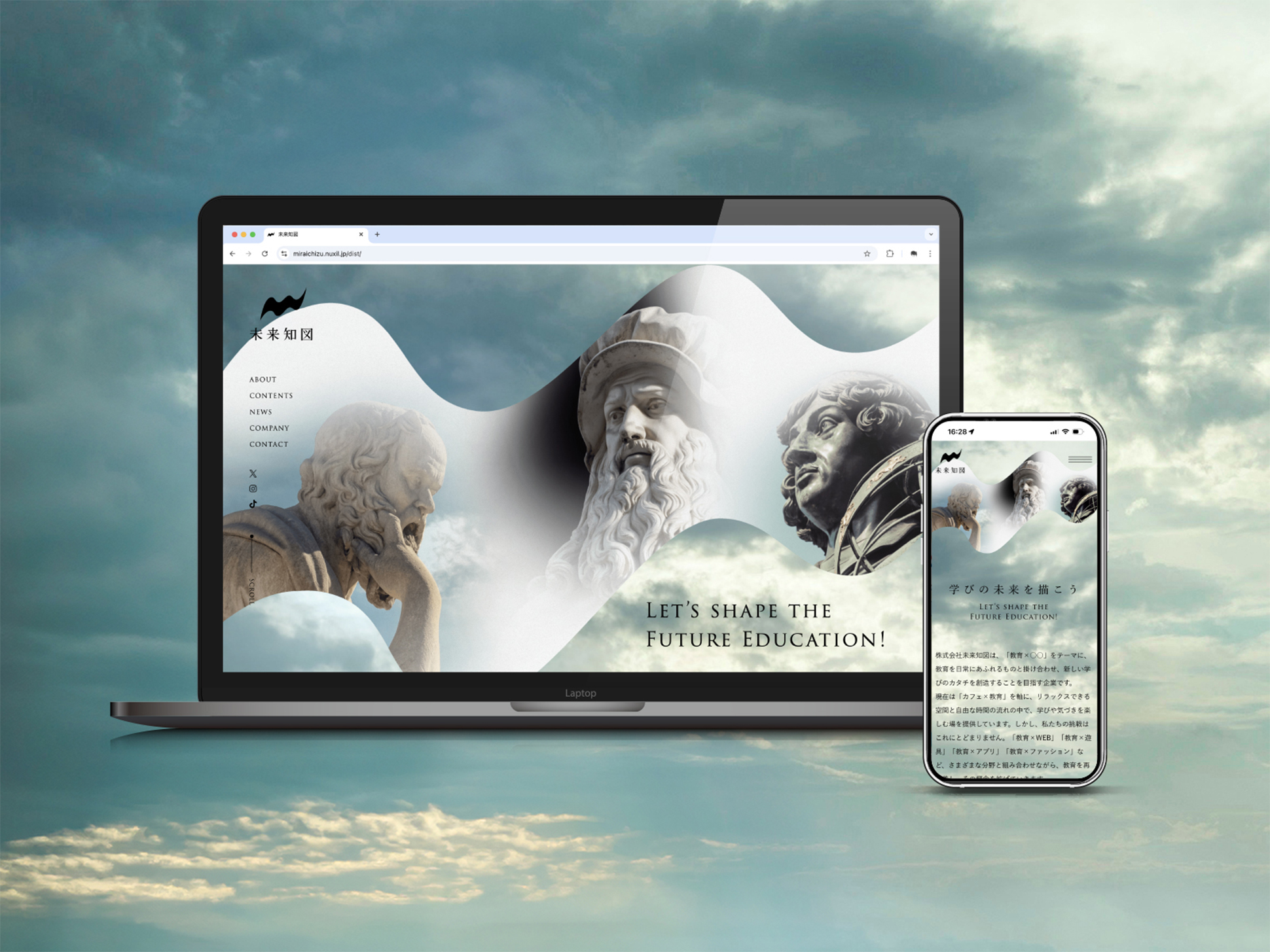 ロゴで表現した“学び=旅”という思想を発展させ、ユーザー自身が未来知図の世界観を体験できる構造としています。