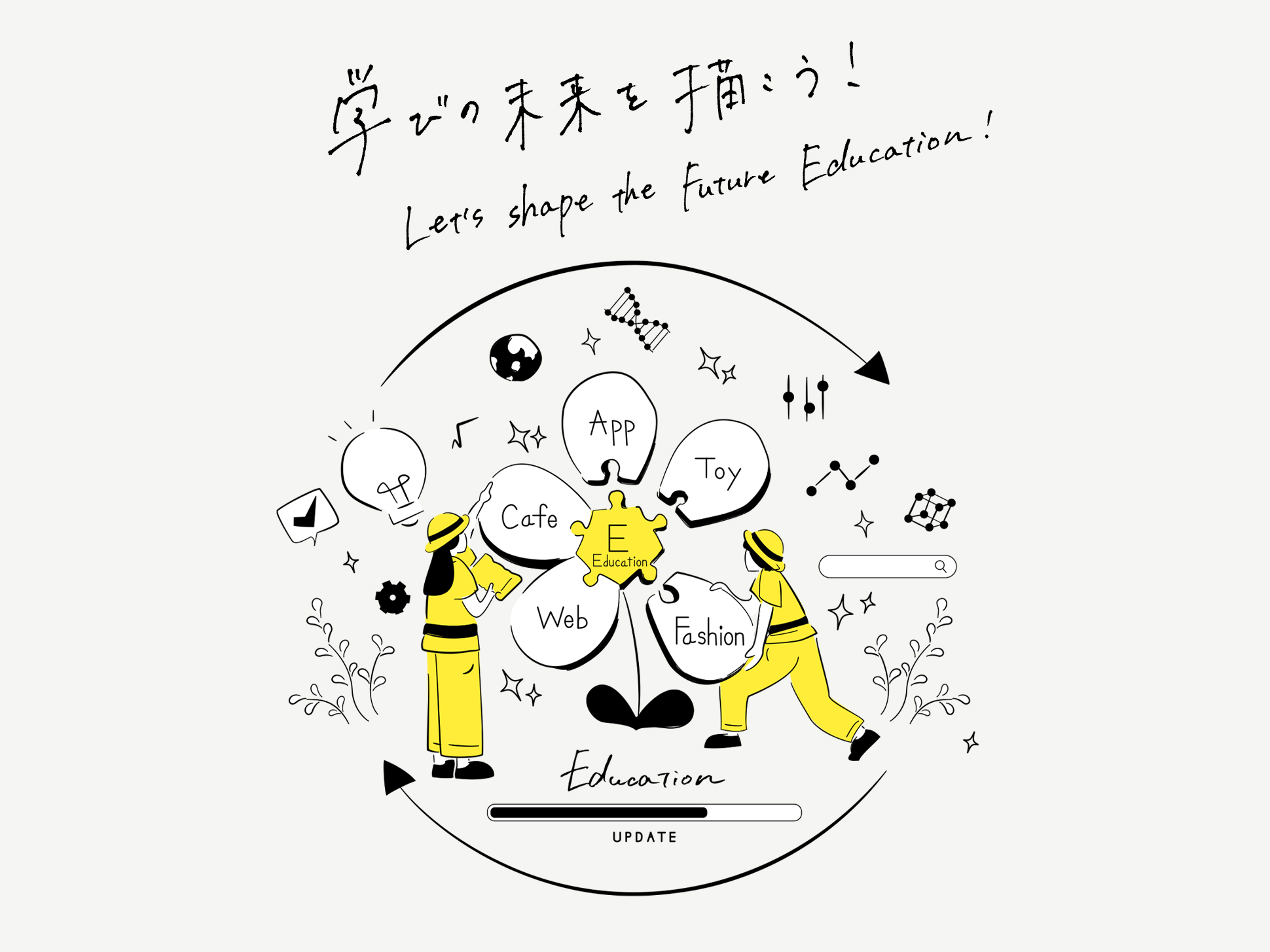 教育が多様な分野へ広がっていく様子を視覚的に表現しています。