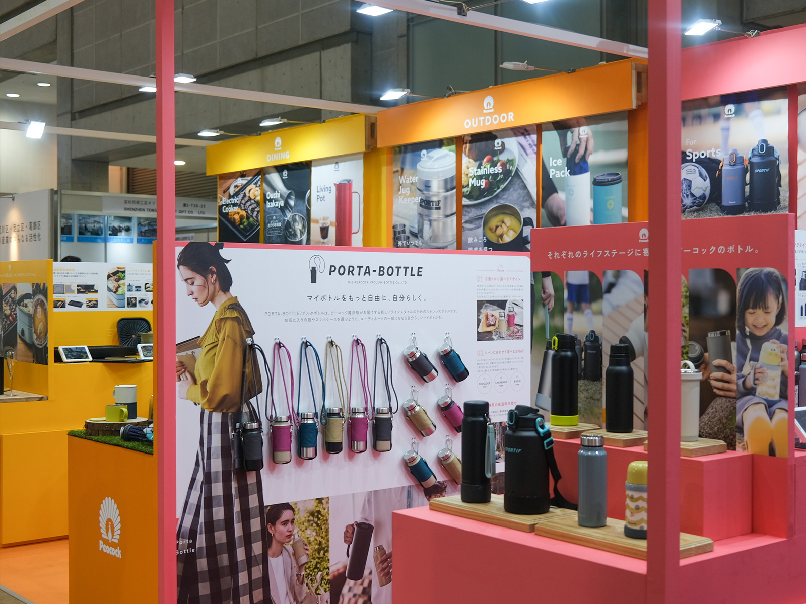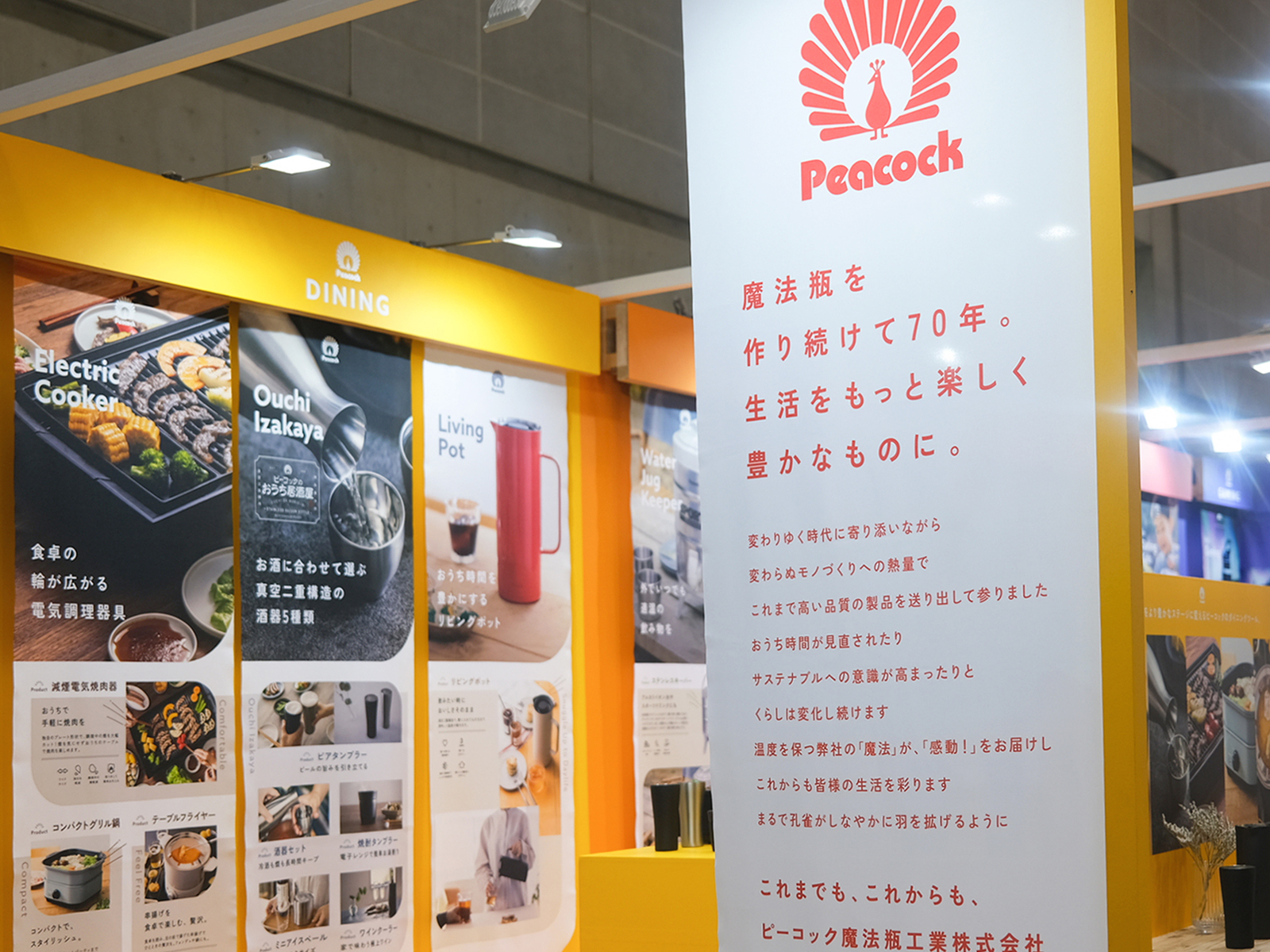 大阪で70年以上にわたり魔法瓶の製造販売を行うピーコック魔法瓶工業様の「東京インターナショナル・ギフト・ショー 春2023」出展ブースのデザインを担当しました。