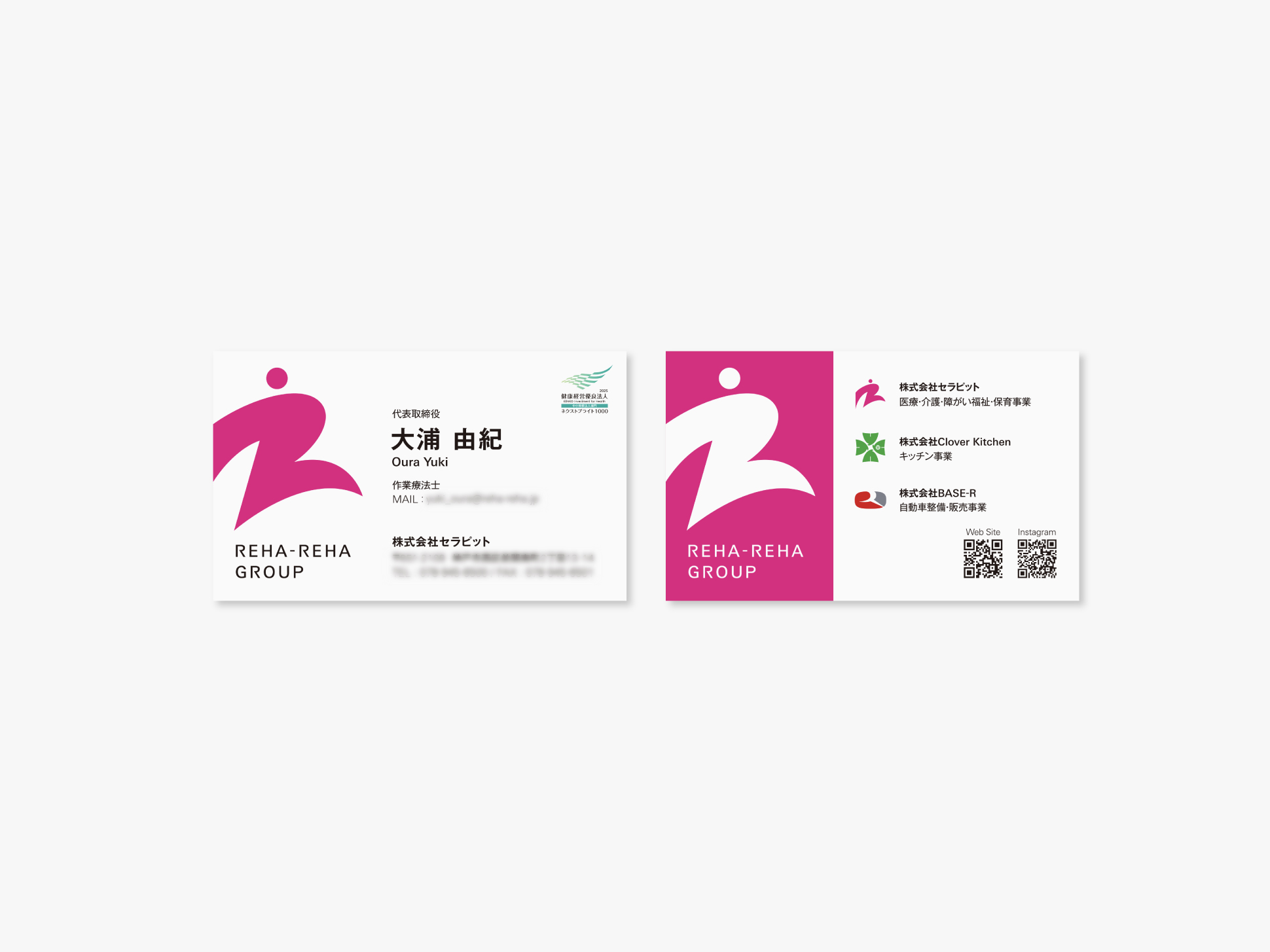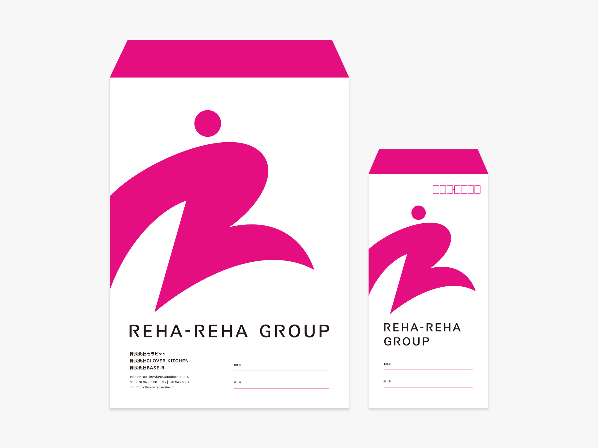 また、2026年4月1日を期にリハ・リハ グループはグループ会社経営統合を発表。それに先駆けて、グループ会社であるフード事業をおこなう「株式会社CLOVER KITCHEN」、「株式会社BASE-R」のコーポレートマークデザインも担当させていただきました。