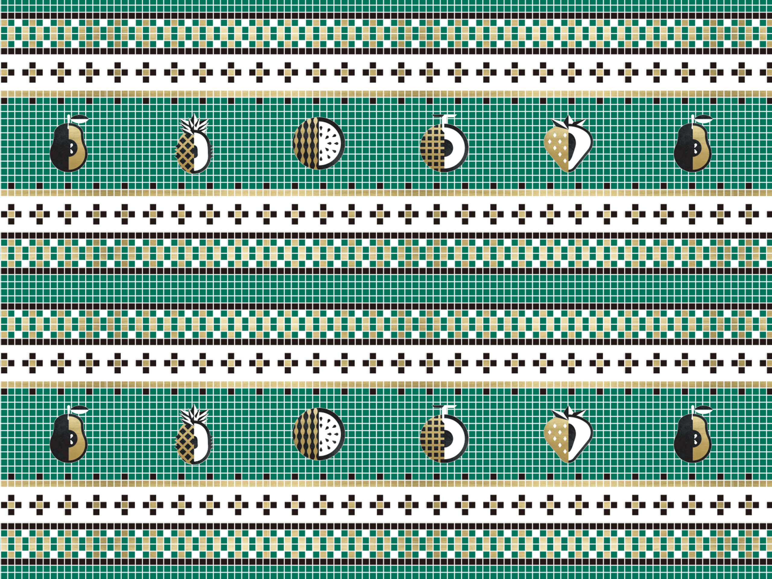 壁面や什器には、フルーツのイメージを抽象化したパターンを取り入れ、